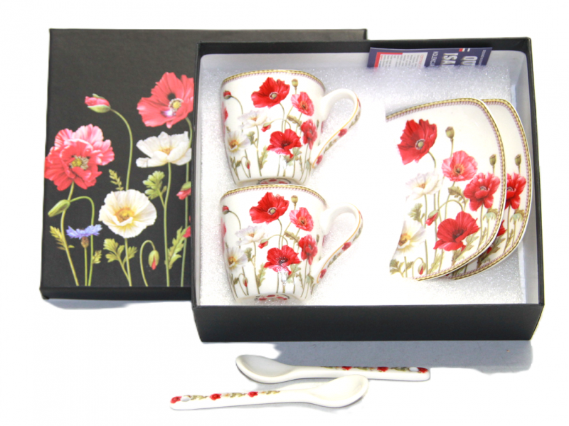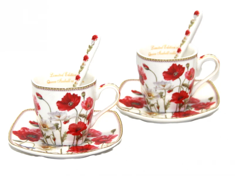 Eleganckie i luksusowe filiżanki do espresso o pojemności 80 ml to doskonały wybór dla miłośników wysokiej jakości produktów. Wysokiej jakości porcelana kostna bone china zapewnia trwałość i jakość, a ręczne formowanie i wypalanie w specjalnych piecach d odaje im niepowtarzalnego charakteru. Wersja limitowana z kolekcji Queen Isabell zachwyca czerwono-białym motywem maków na białym tle. Pojemność 80 ml umożliwia pełne doznania delektowanie się ulubionym espresso w stylu i elegancji, dostępnym tylko dla na jbardziej wymagających klientów." W celu zachowania oryginalnego wzoru oraz złotych zdobień zaleca się mycie ręczne użyciem delikatnego detergentu. Pojemność 1 szt-80ml wymiar 5,5 x 5,5 cm podstawka 9,5x9,5