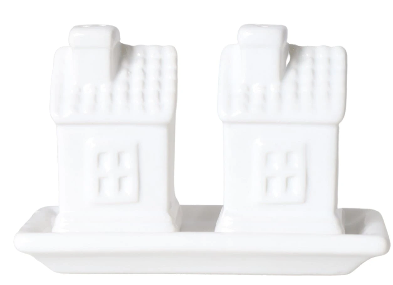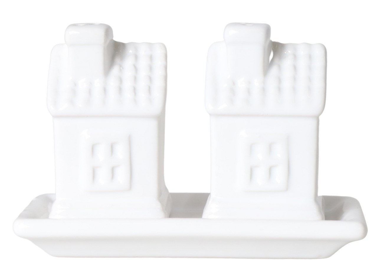 Komplet składa się z dwóch domków w białym kolorze (pieprzniczki i solniczki).