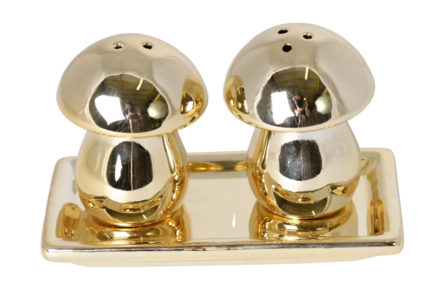 Komplet składa się z dwóch grzybków w złotym kolorze (pieprzniczki i solniczki).
