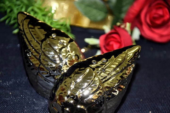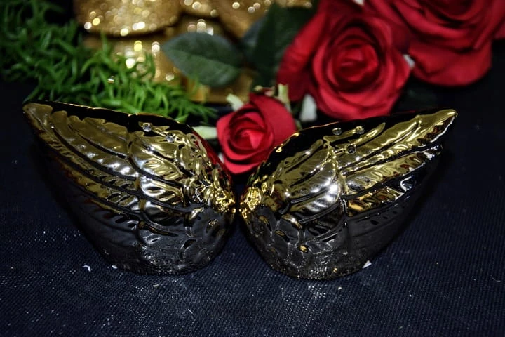 Komplet składa się z dwóch skrzydeł w złotyum kolorze (pieprzniczki i solniczki).