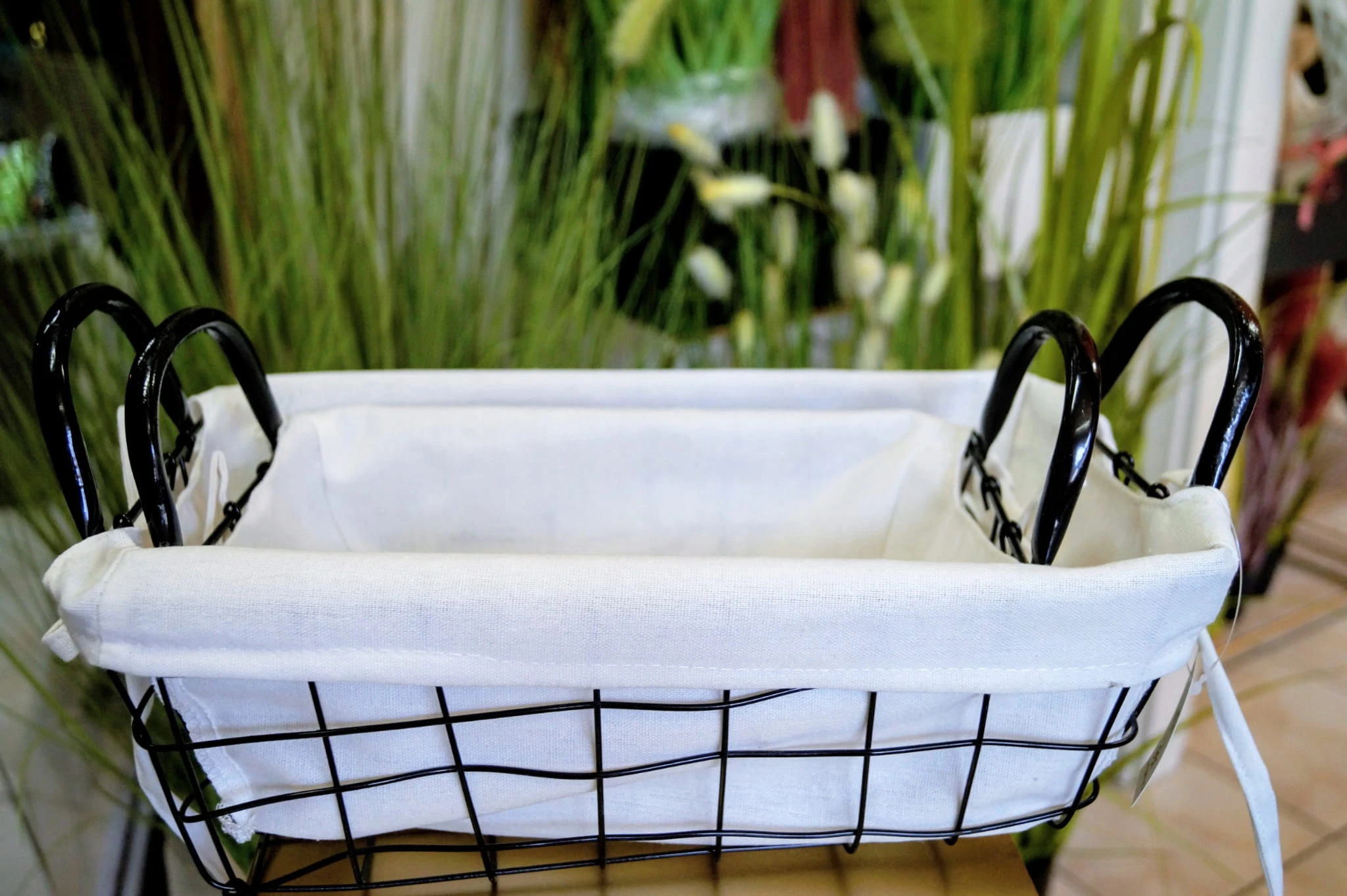 Metalowe koszyki z materiałową wyściółką, doskonale sprawdzą się do przechowywania drobiazgów w prowansalskim lub klasycznym wnętrzu.