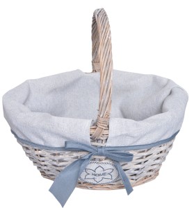 Wiklinowy szary koszyk wyściełany materiałem. Idealny do tworzenia kompozycji i nie tylko.