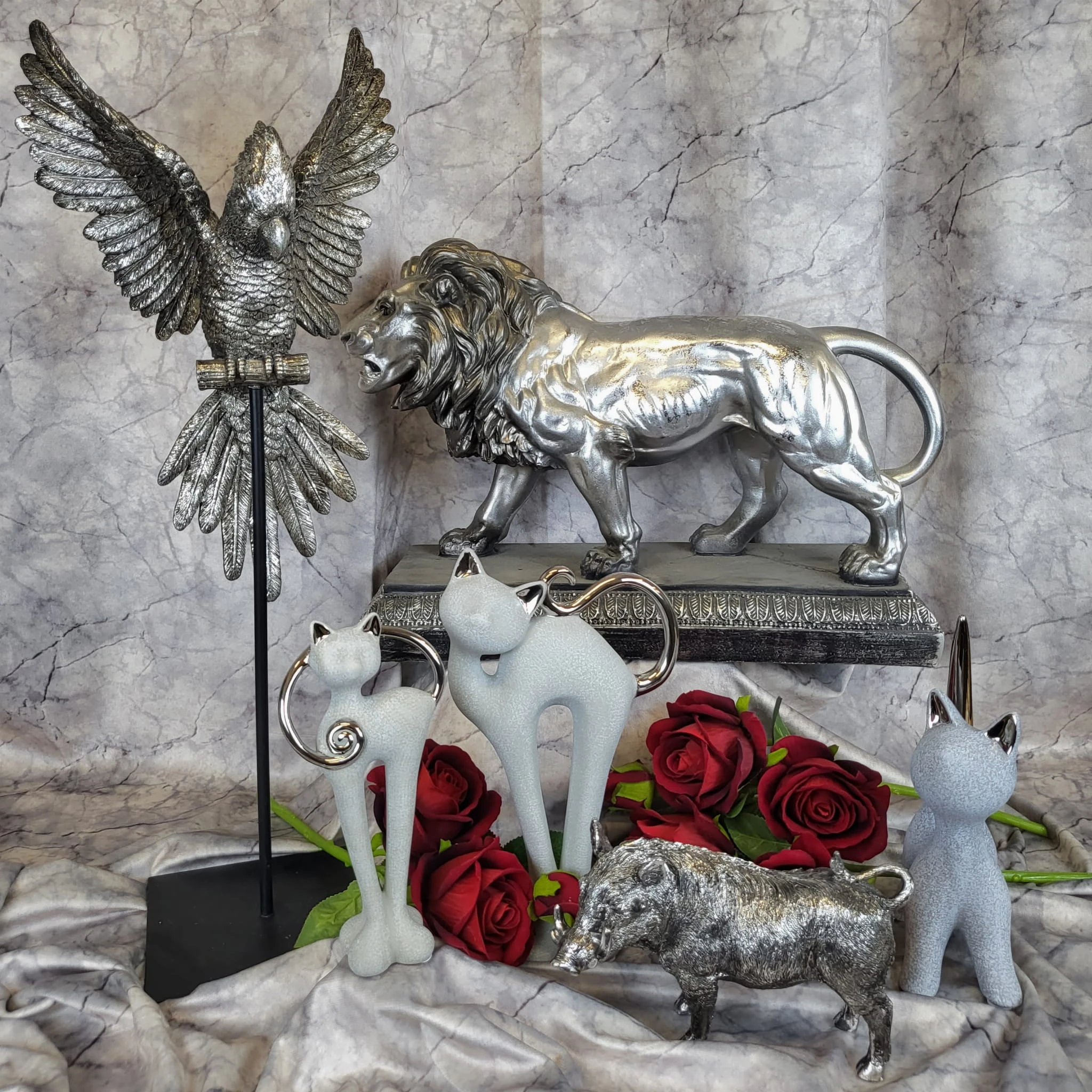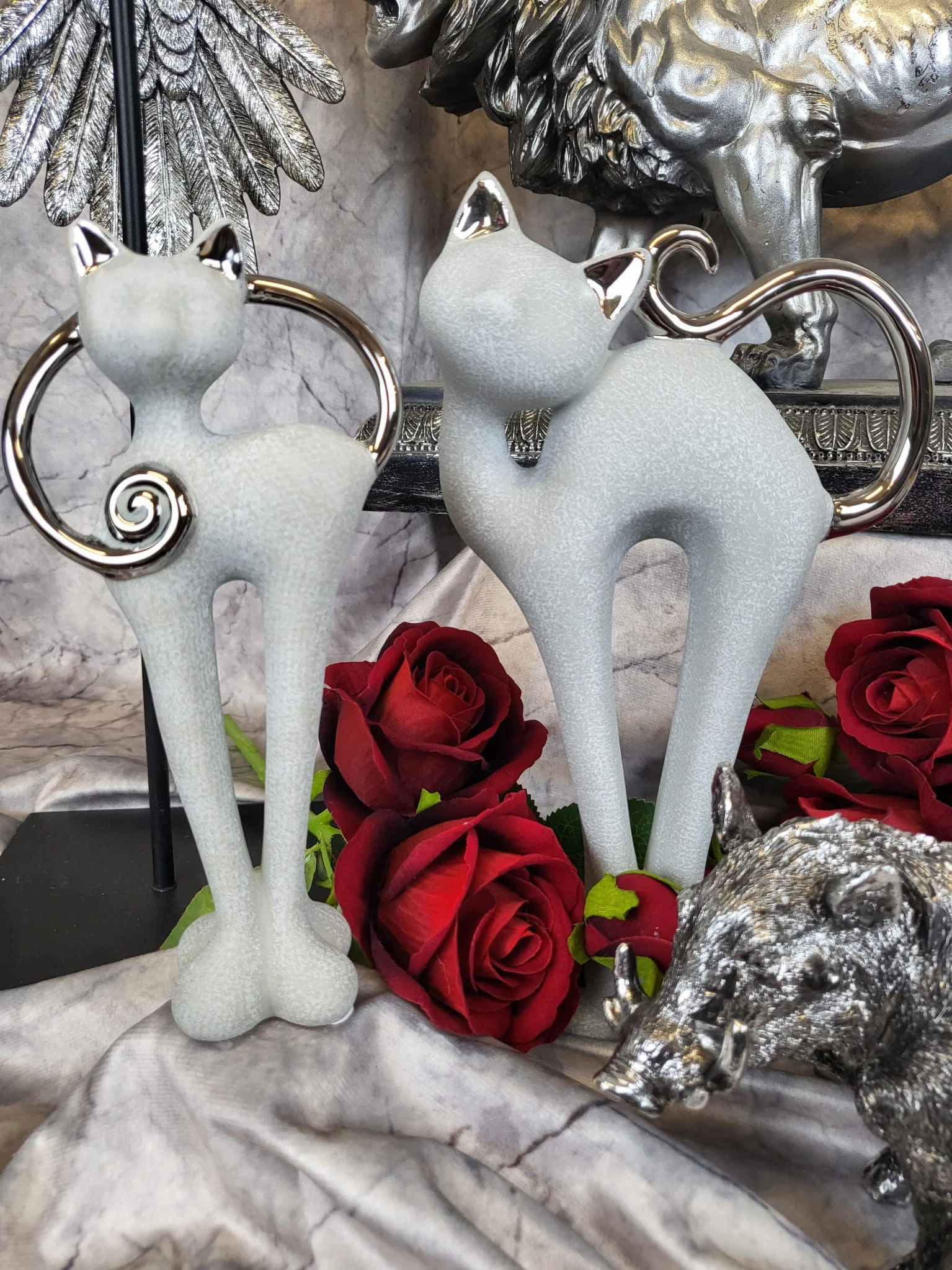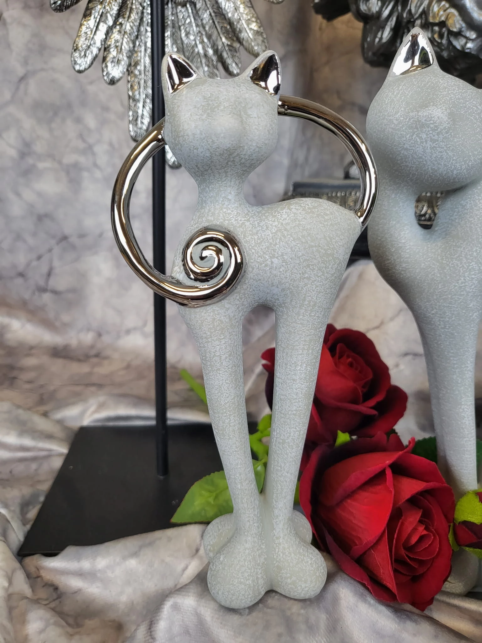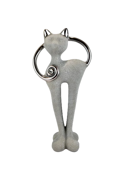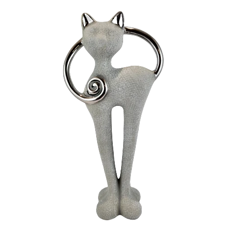 KOT KOTEK CERAMICZNY SZARO SREBRNY