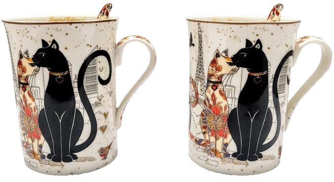 KPL. 2 KUBKÓW Z KOTAMI Z ŁYŻECZKAMI 250 ML
