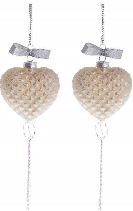 Kształt: Wyjątkowo dekorowane bańki na choinkę w kształcie serc z łańcuszkami i diamentami.