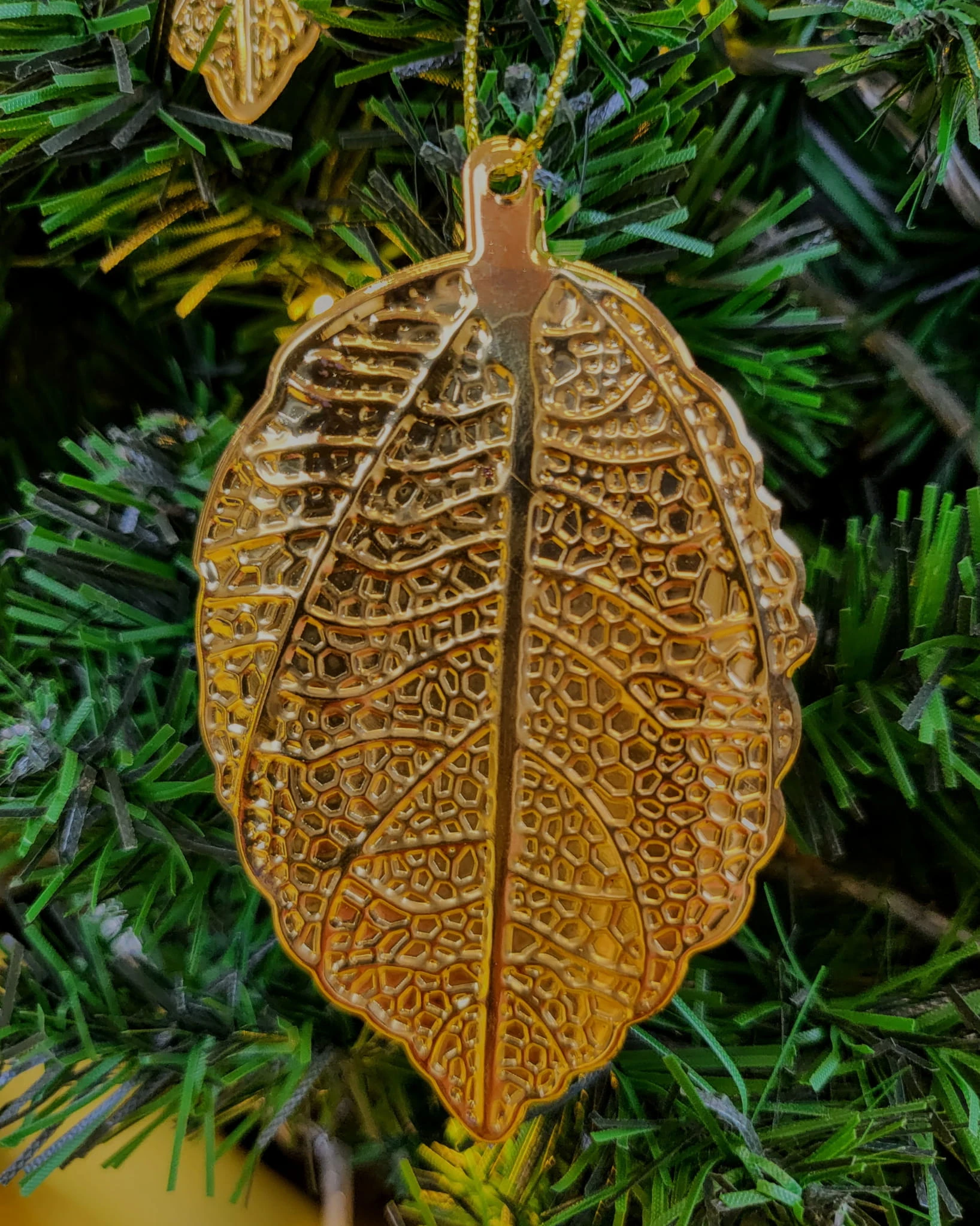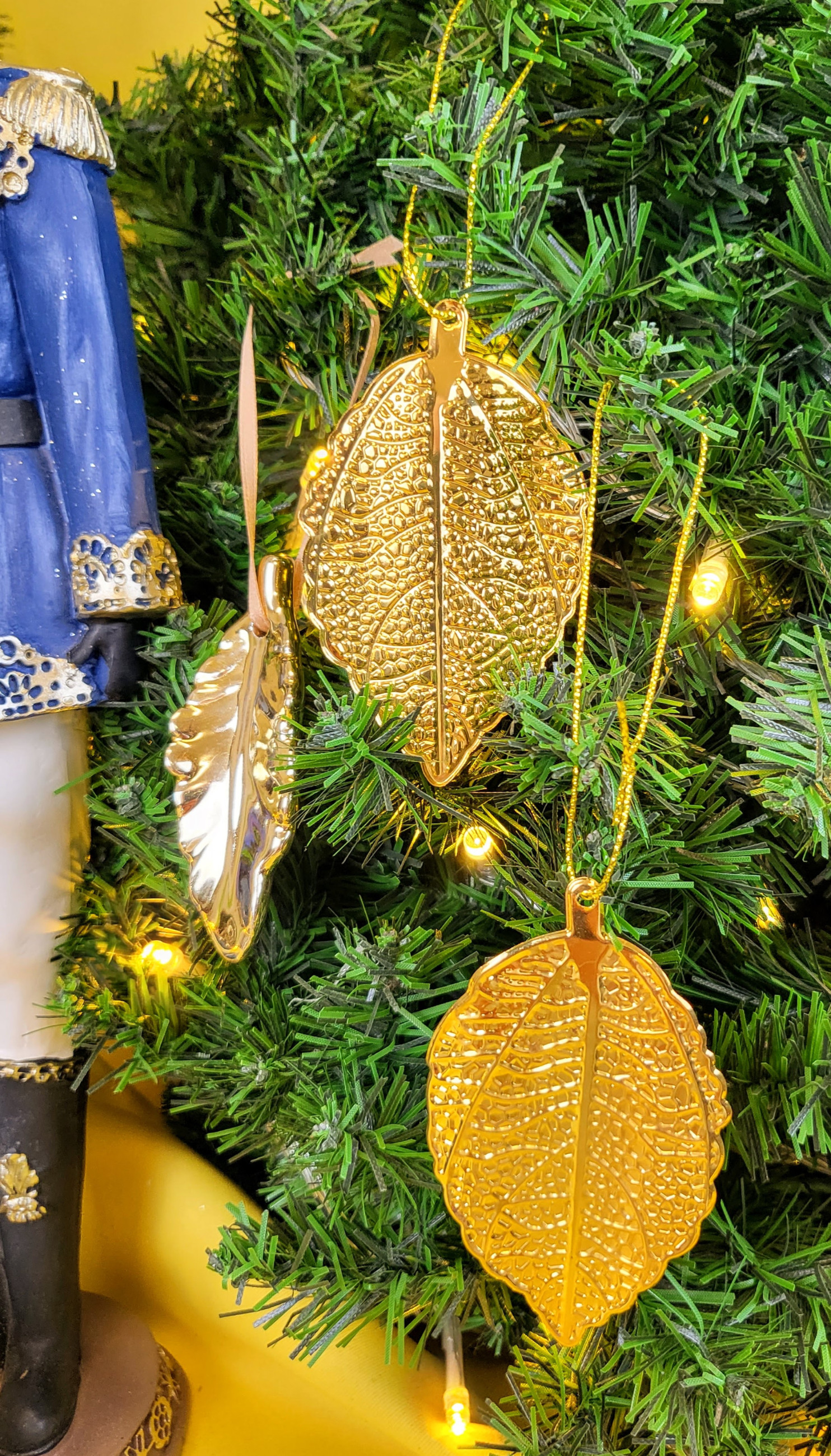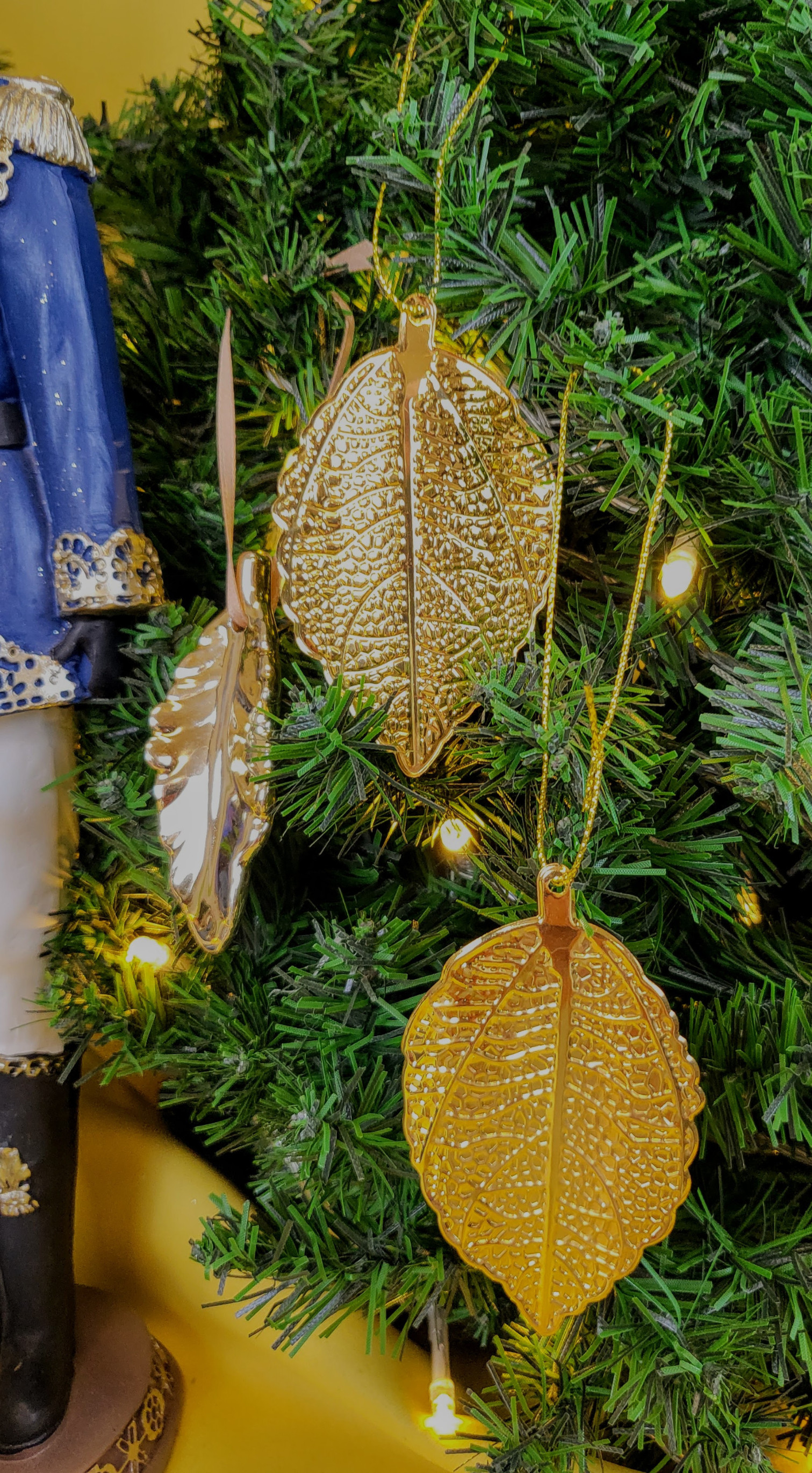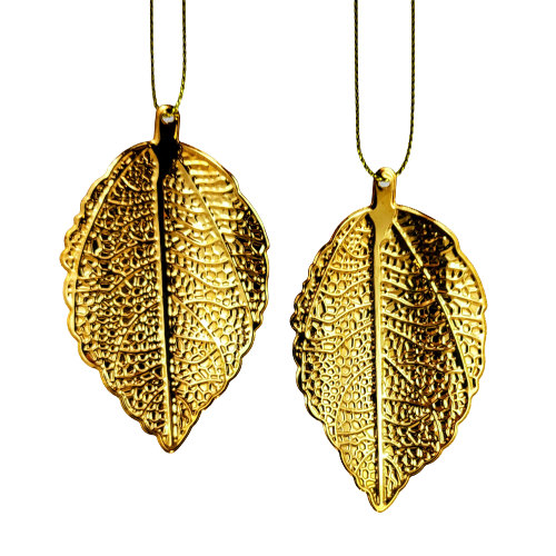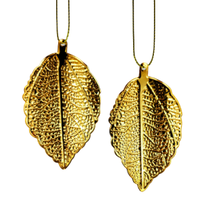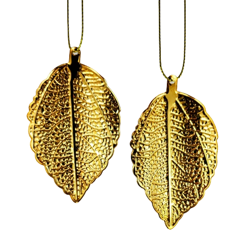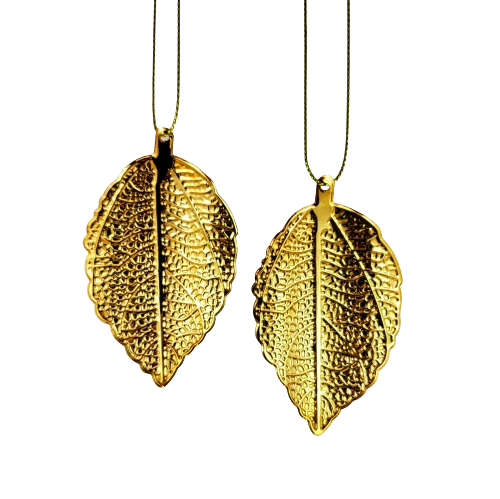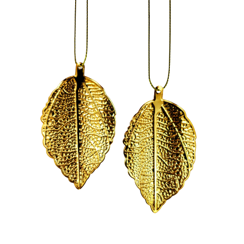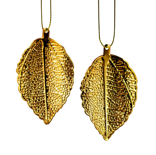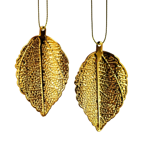 Metalowa zawieszka w formie dwóch listków, będzie perfekcyjnym akcentem jako ozdoba w oknie, na roślinie, przy prezencie lub na choince.