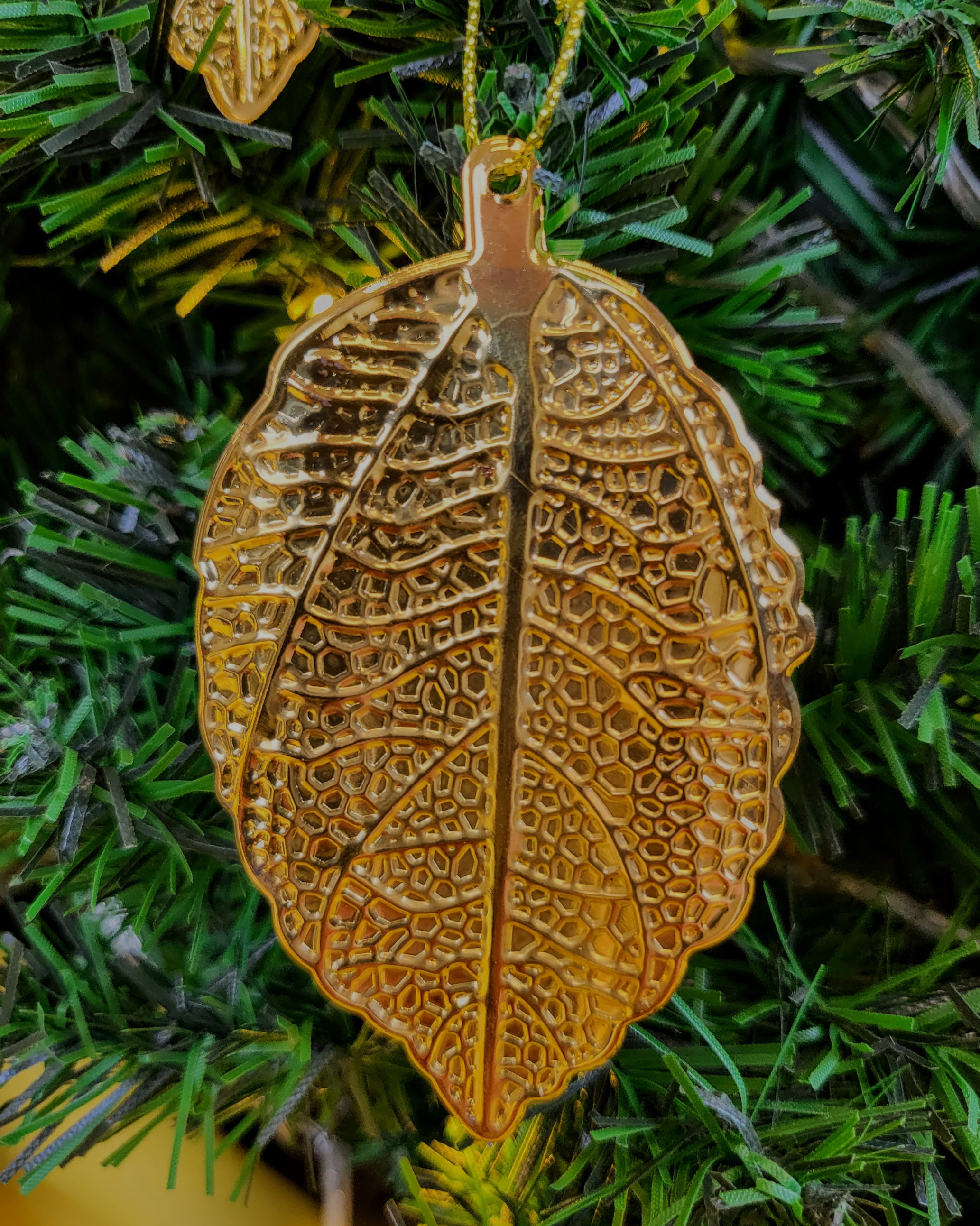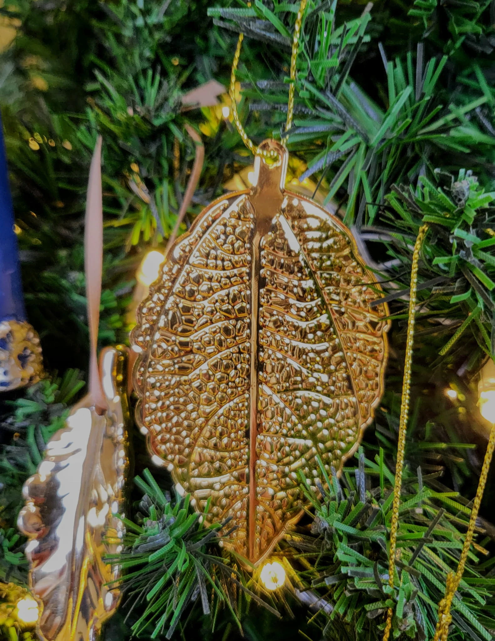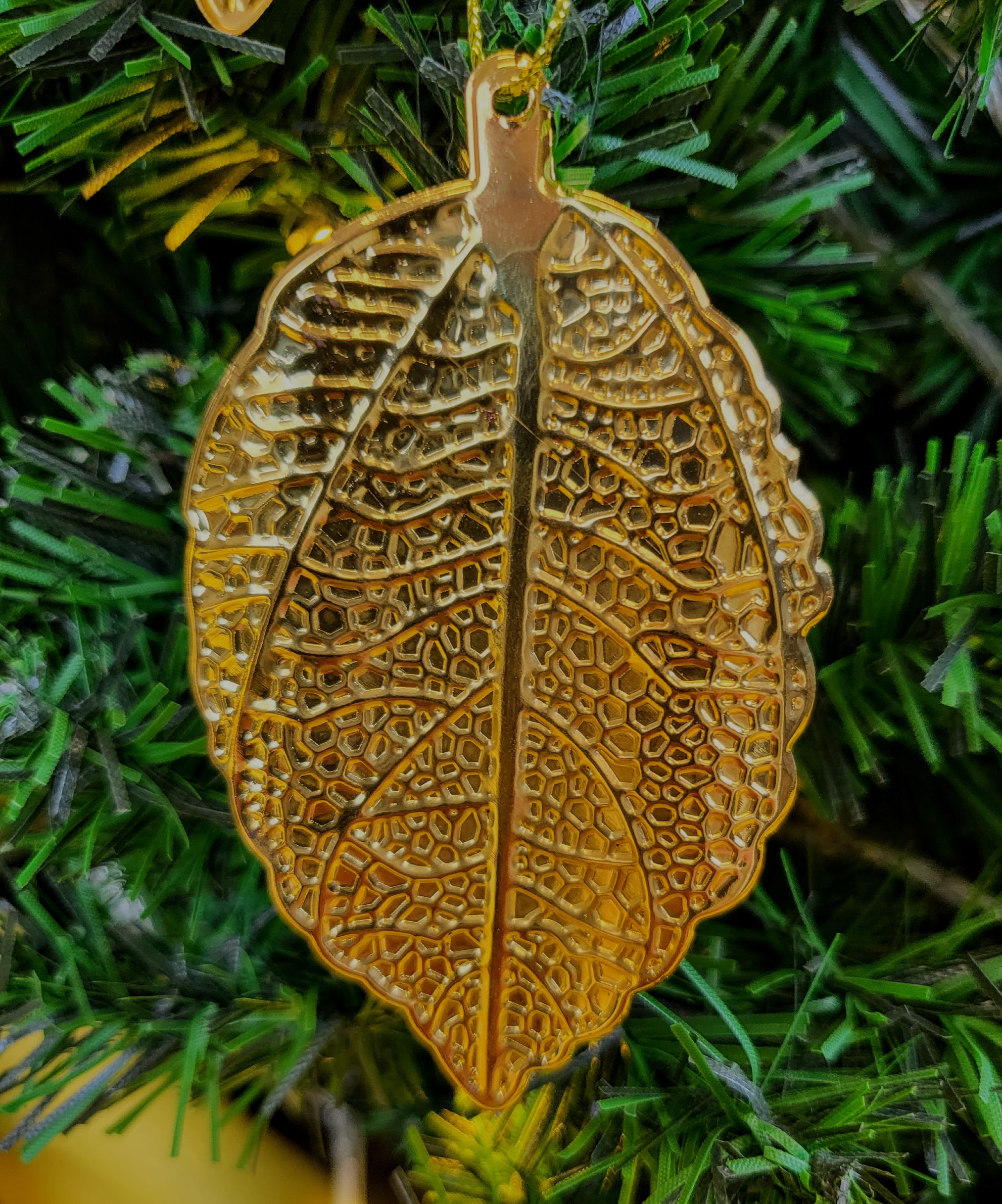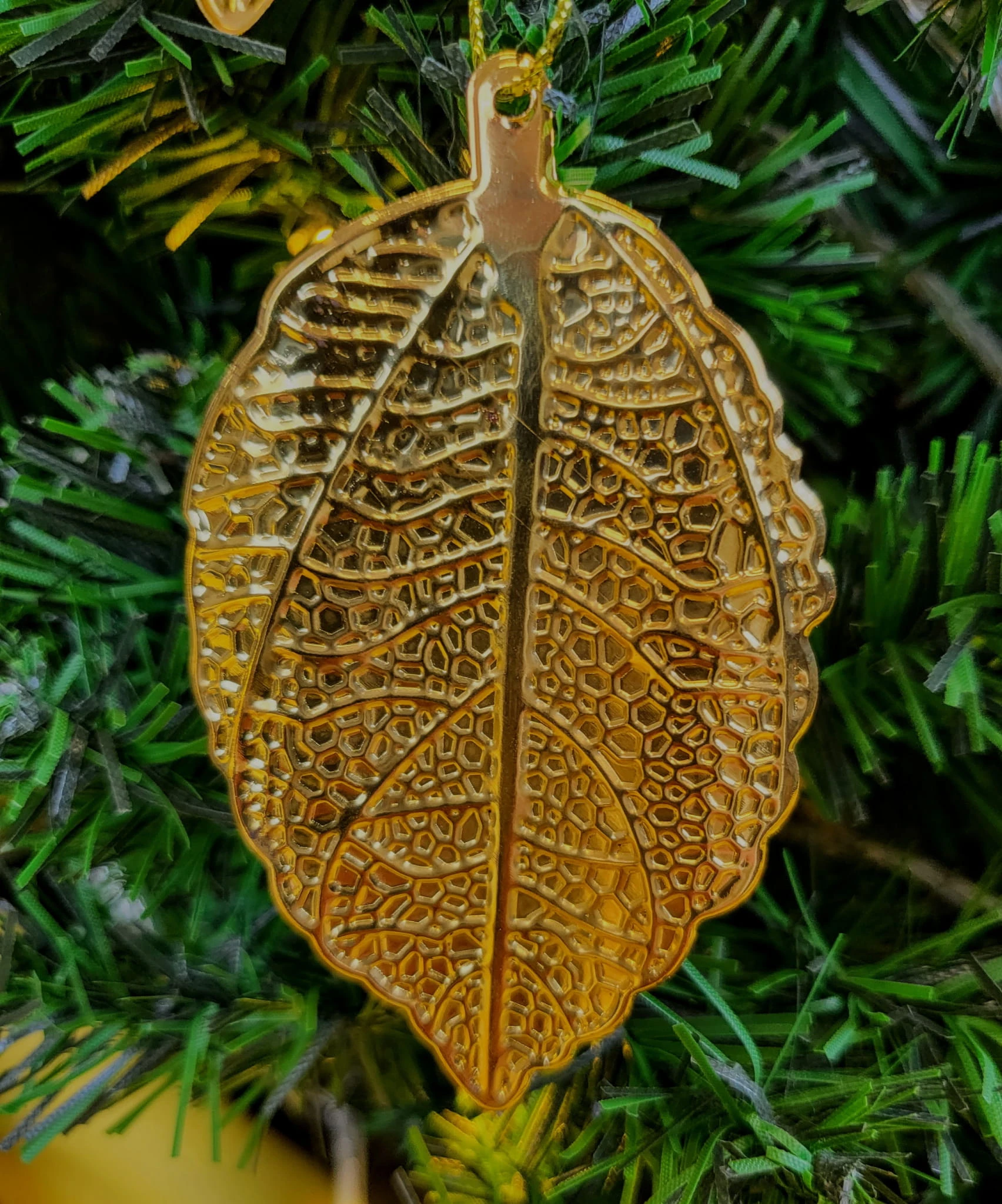 Metalowa zawieszka w formie dwóch listków, będzie perfekcyjnym akcentem jako ozdoba w oknie, na roślinie, przy prezencie lub na choince.