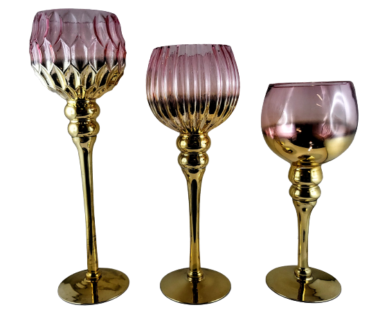 KPL. 3 KIELICHÓW SZKLANYCH RÓŻOWO - ZŁOTYCH 30/35/40CM