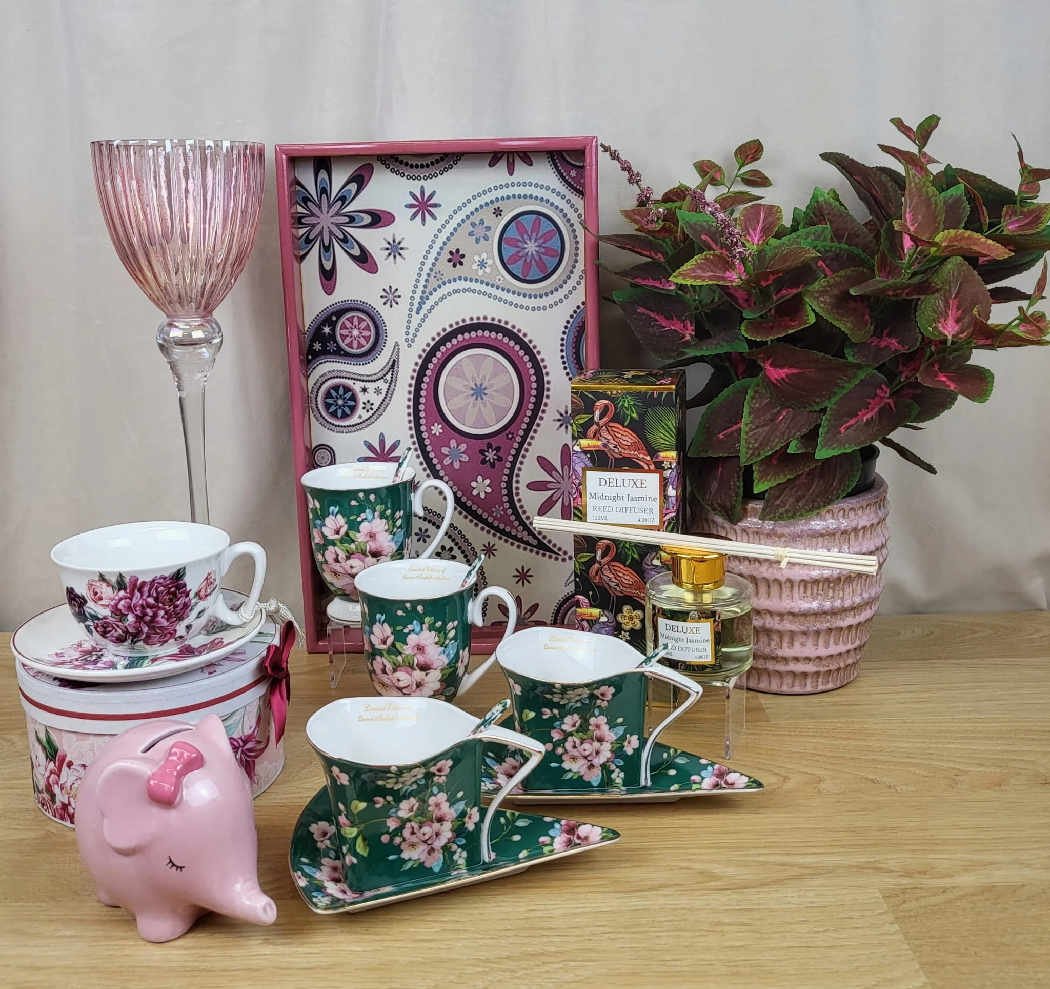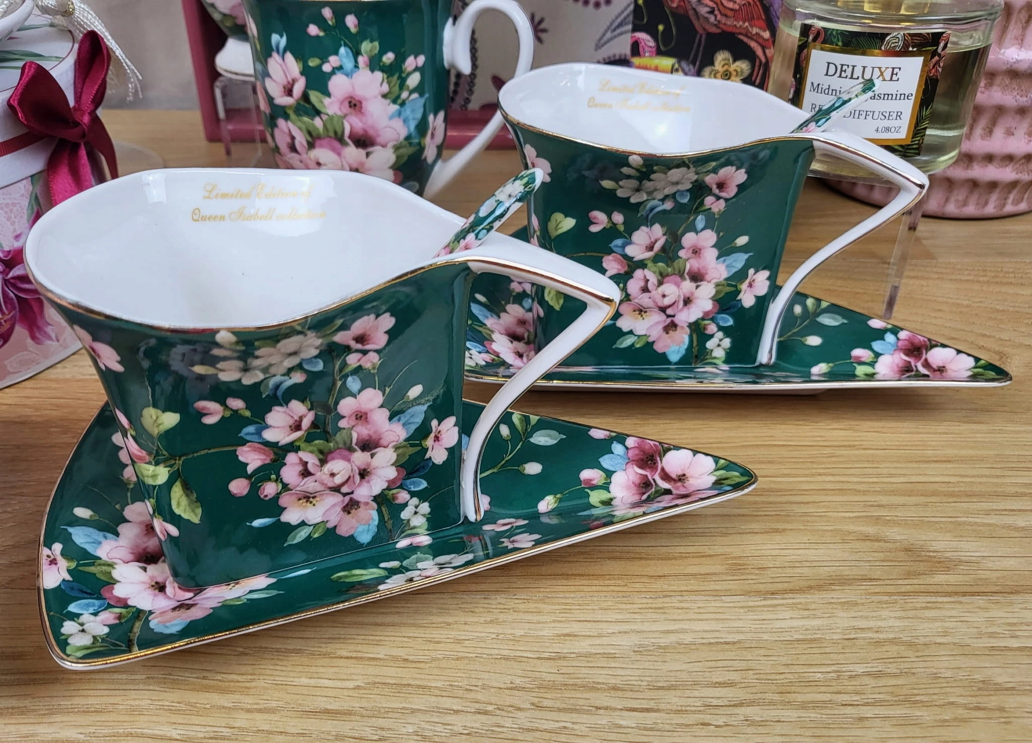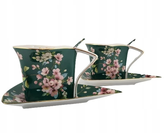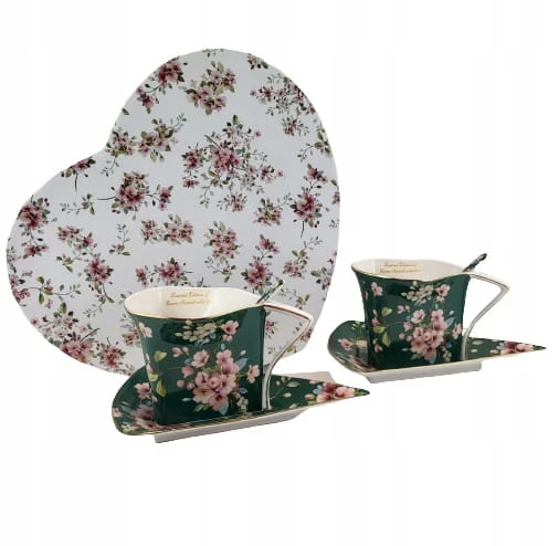- Zestaw zawiera:2 filiżanki, 2 łyżeczki, 2 talerzyki, ozdobne pudełko