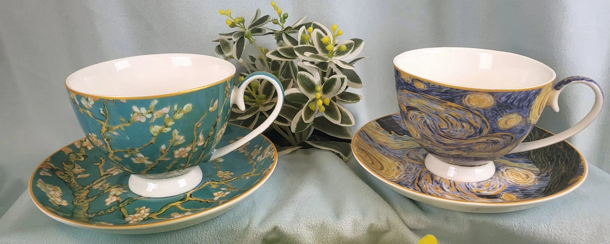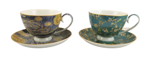 Elegancki zestaw 2 filiżanek z talerzykami z motywami twórczości Vicnenta Van Gogh'a. Idealny pomysł na upominek dla miłośników twórczości tego artysty.