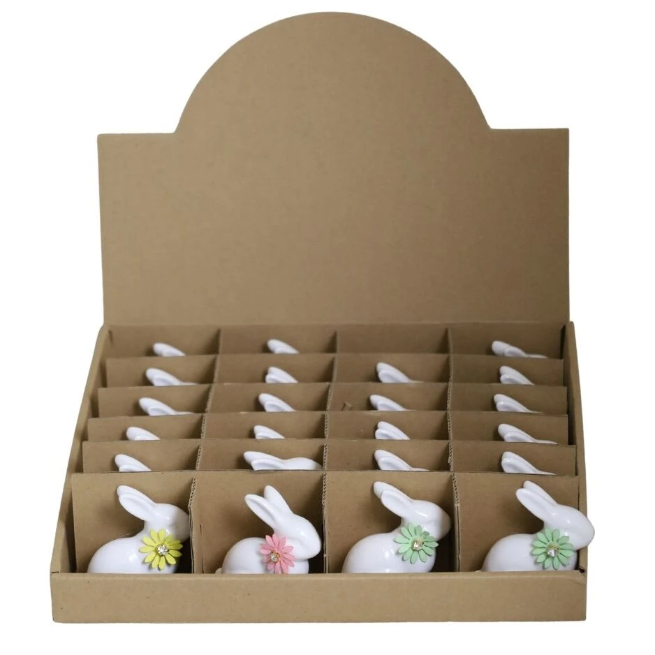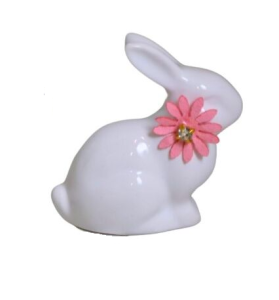 KRÓLICZEK CERAMICZNY BIAŁY Z RÓŻOWYM KWIATKIEM 7x4x7,5 cm