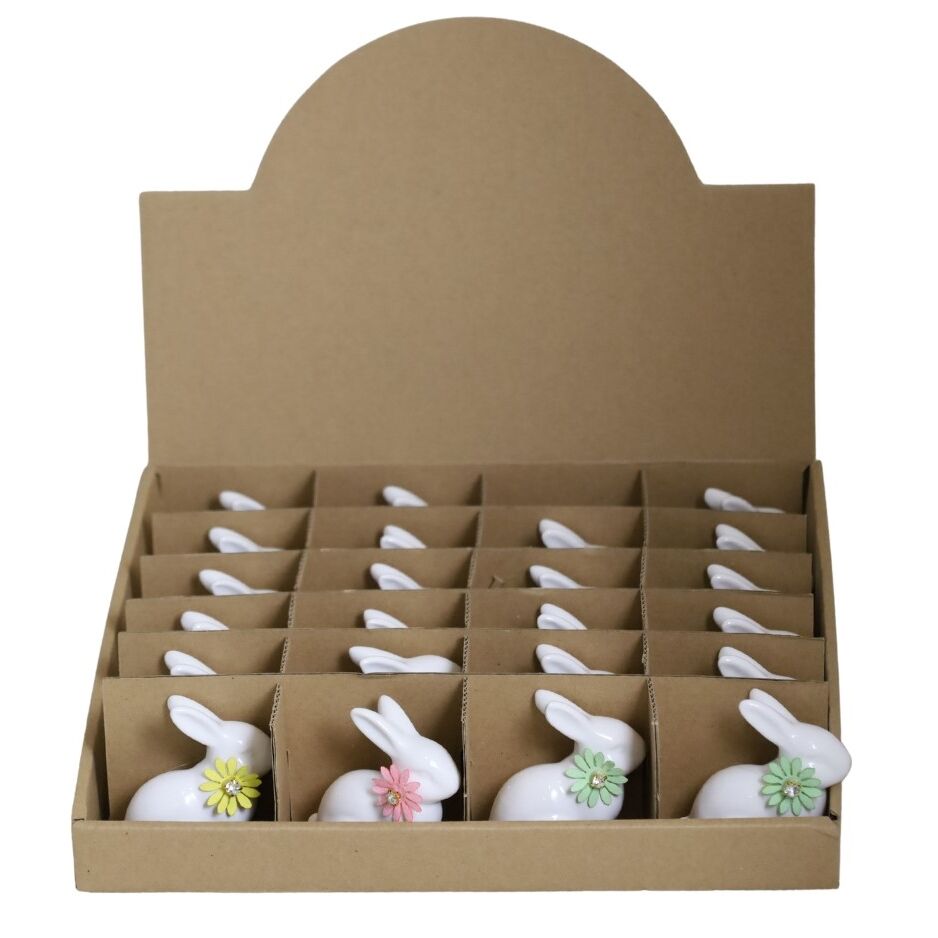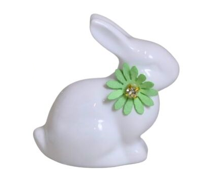 KRÓLICZEK CERAMICZNY BIAŁY Z ZIELONYM KWIATUSZKIEM 7x4x7,5 cm