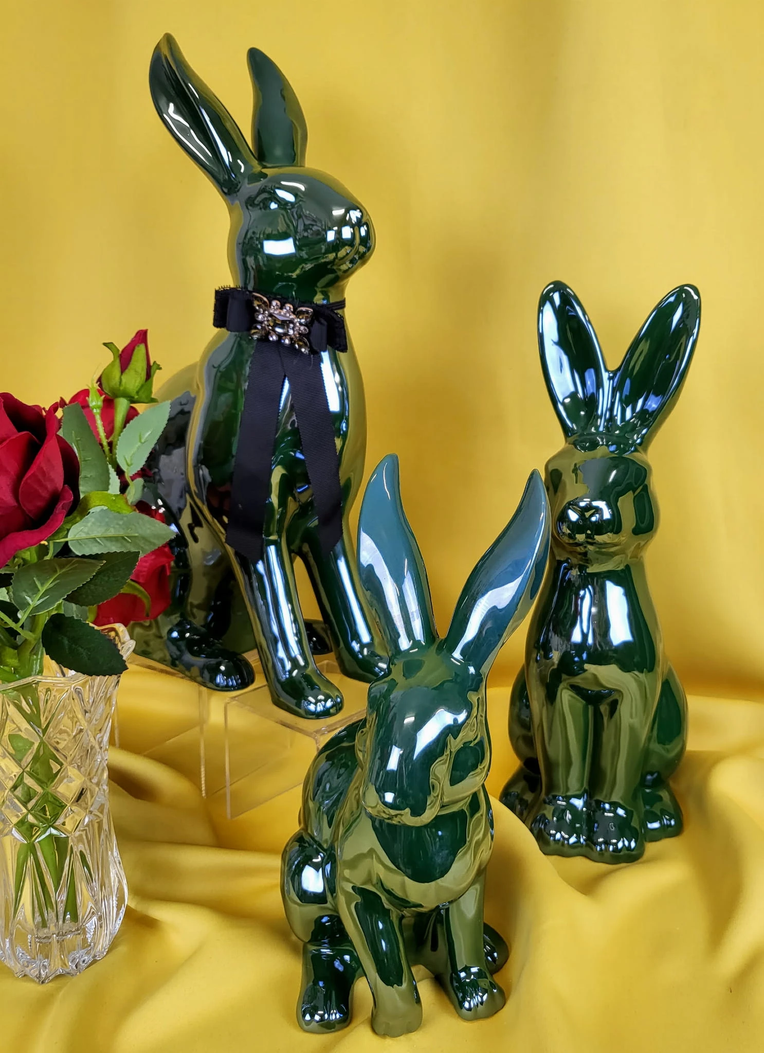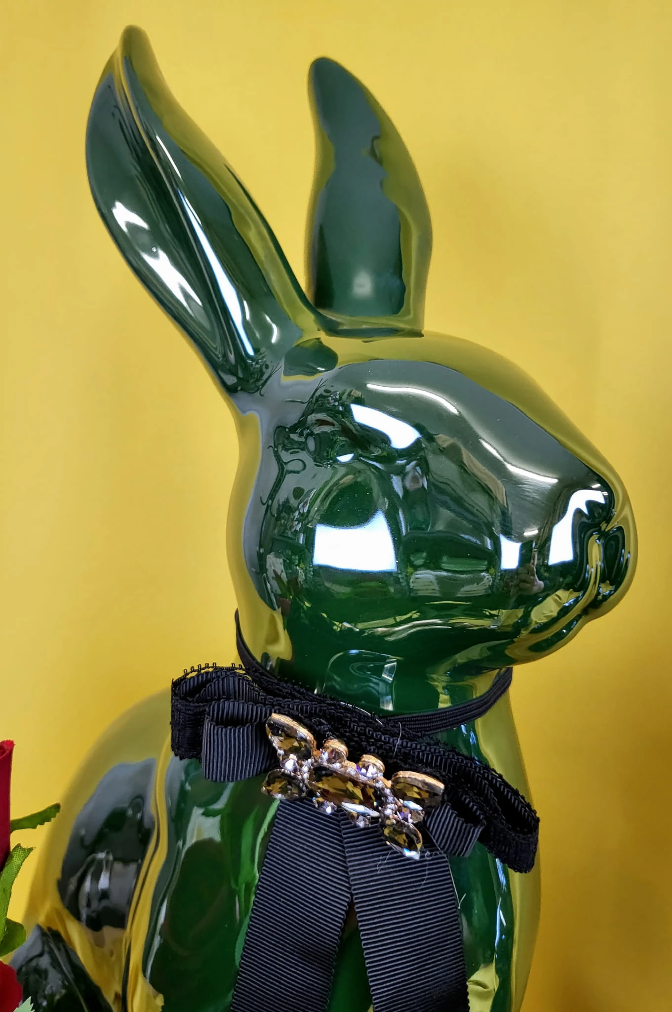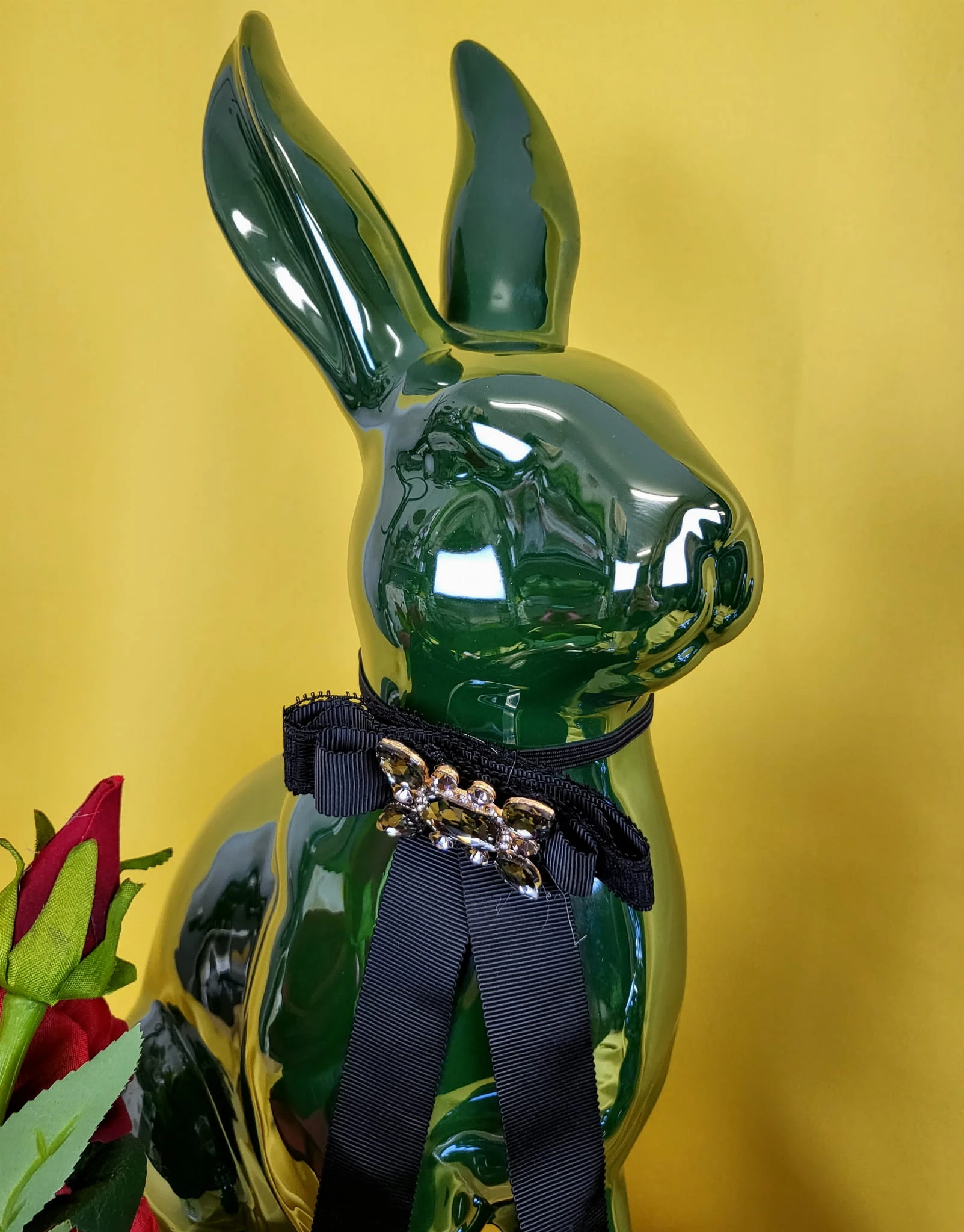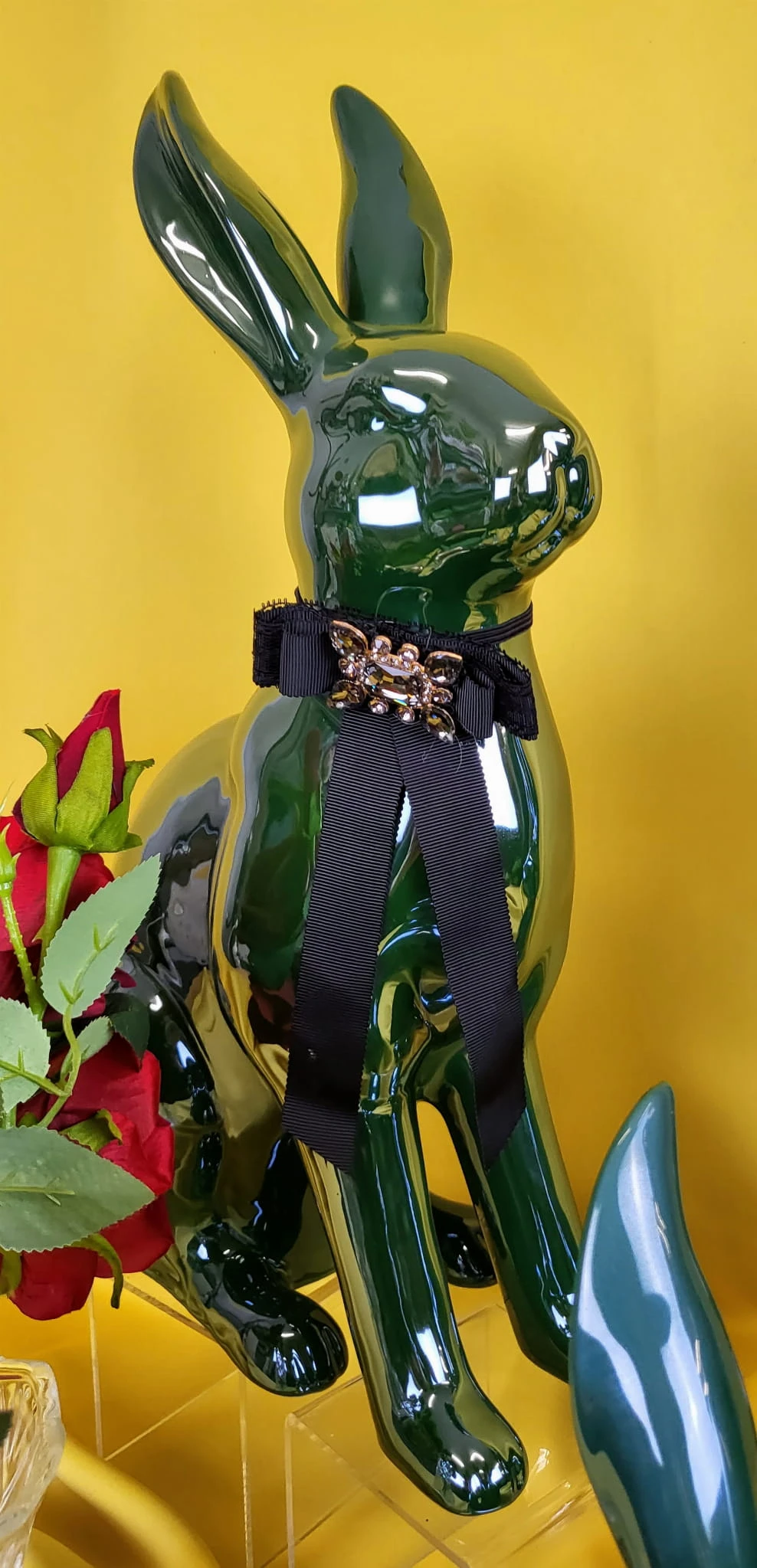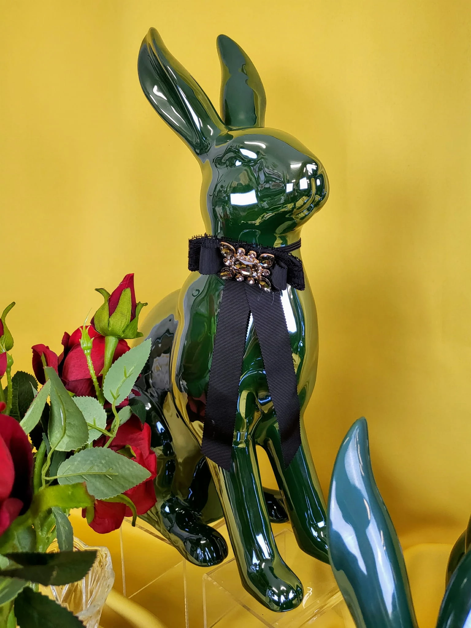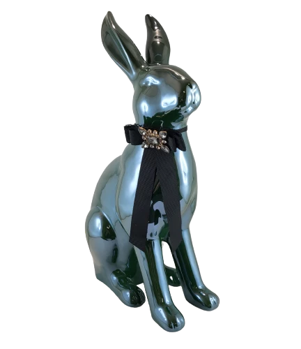 KRÓLIK CERAMICZNY ZIELONY Z KOKARDĄ BROSZKĄ