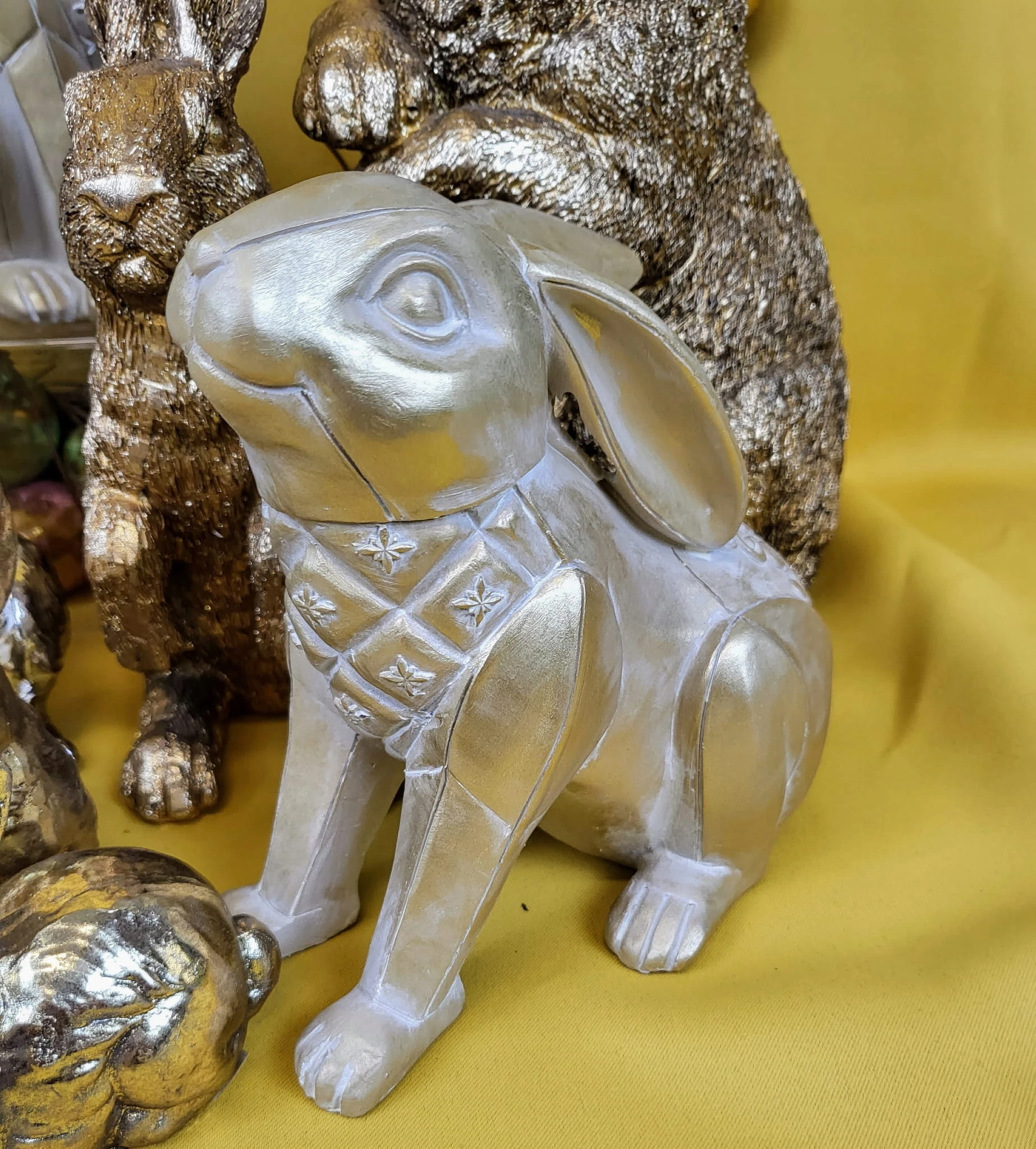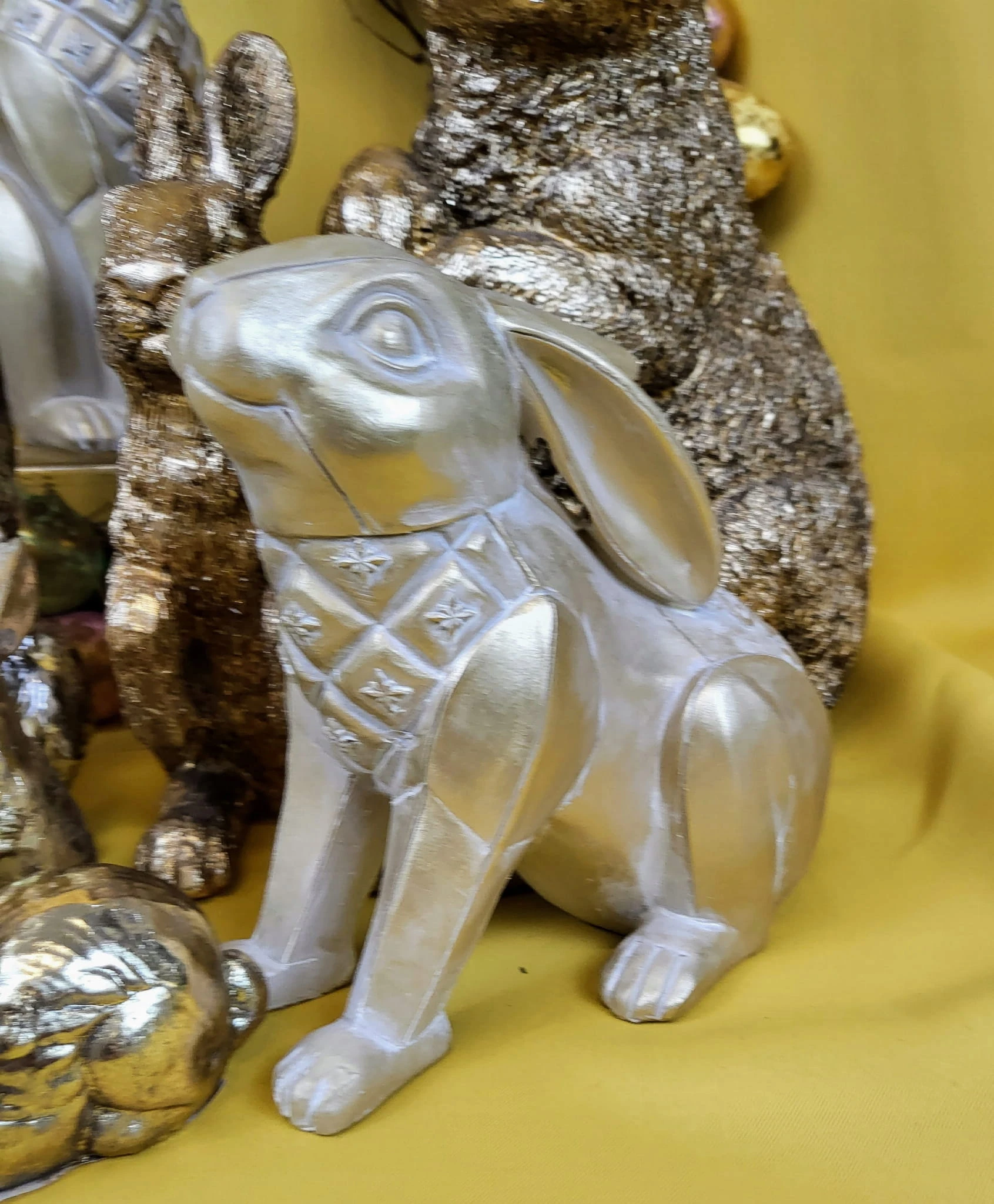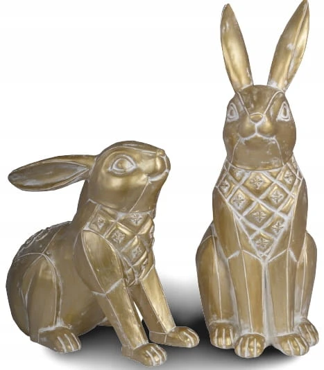 Super króliki w złotym kolorze w dwóch pozycjach- Wielkanocna jak i wiosenna dekoracja do Państwa domu. Nada niepowtarzalnego charakteru wnętrzu urządzonego praktycznie w każdym stylu.