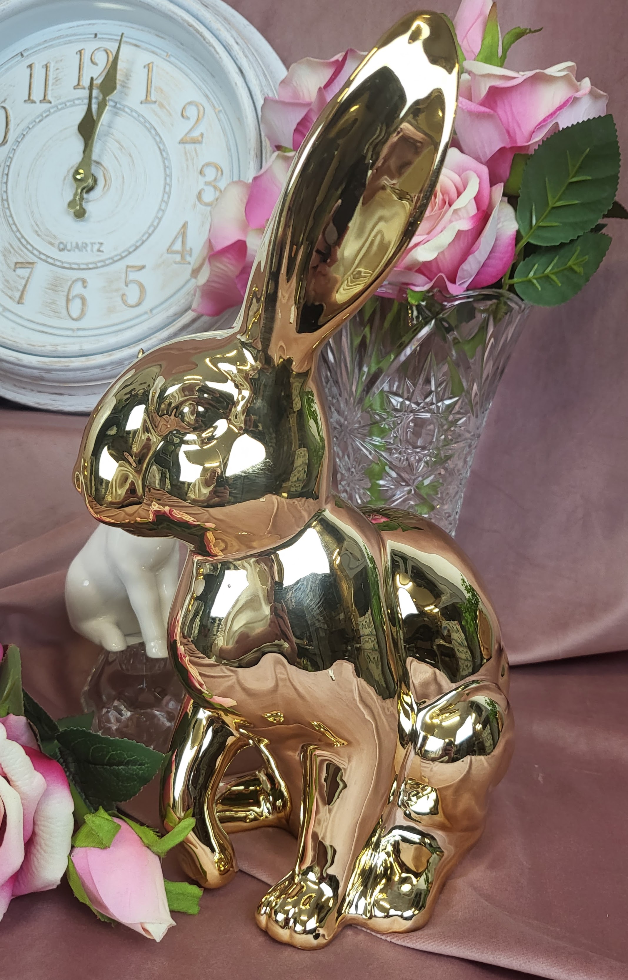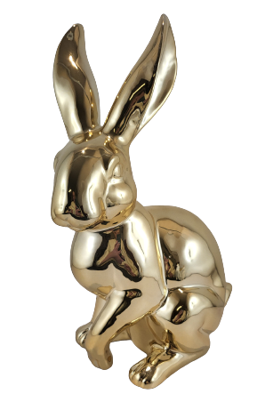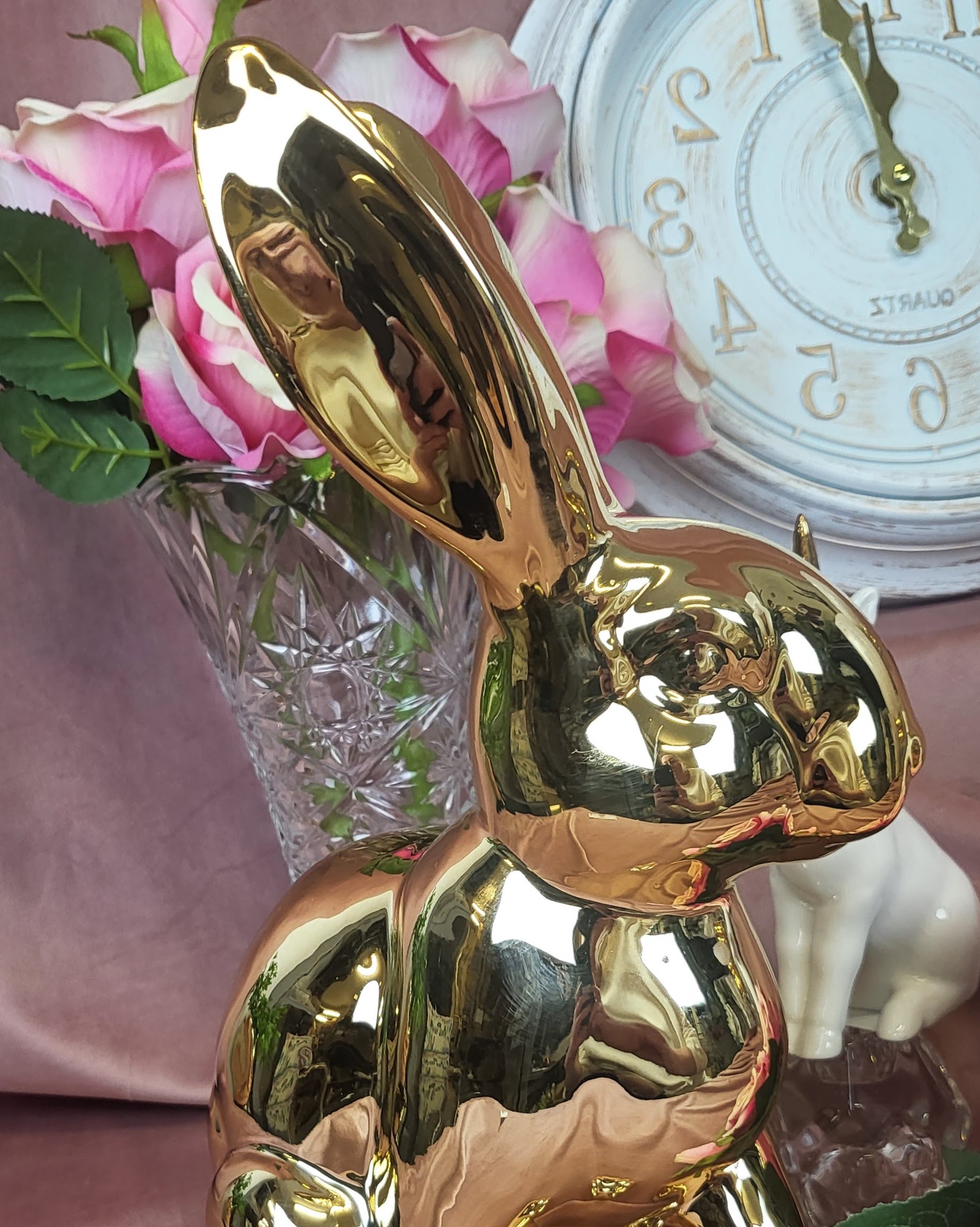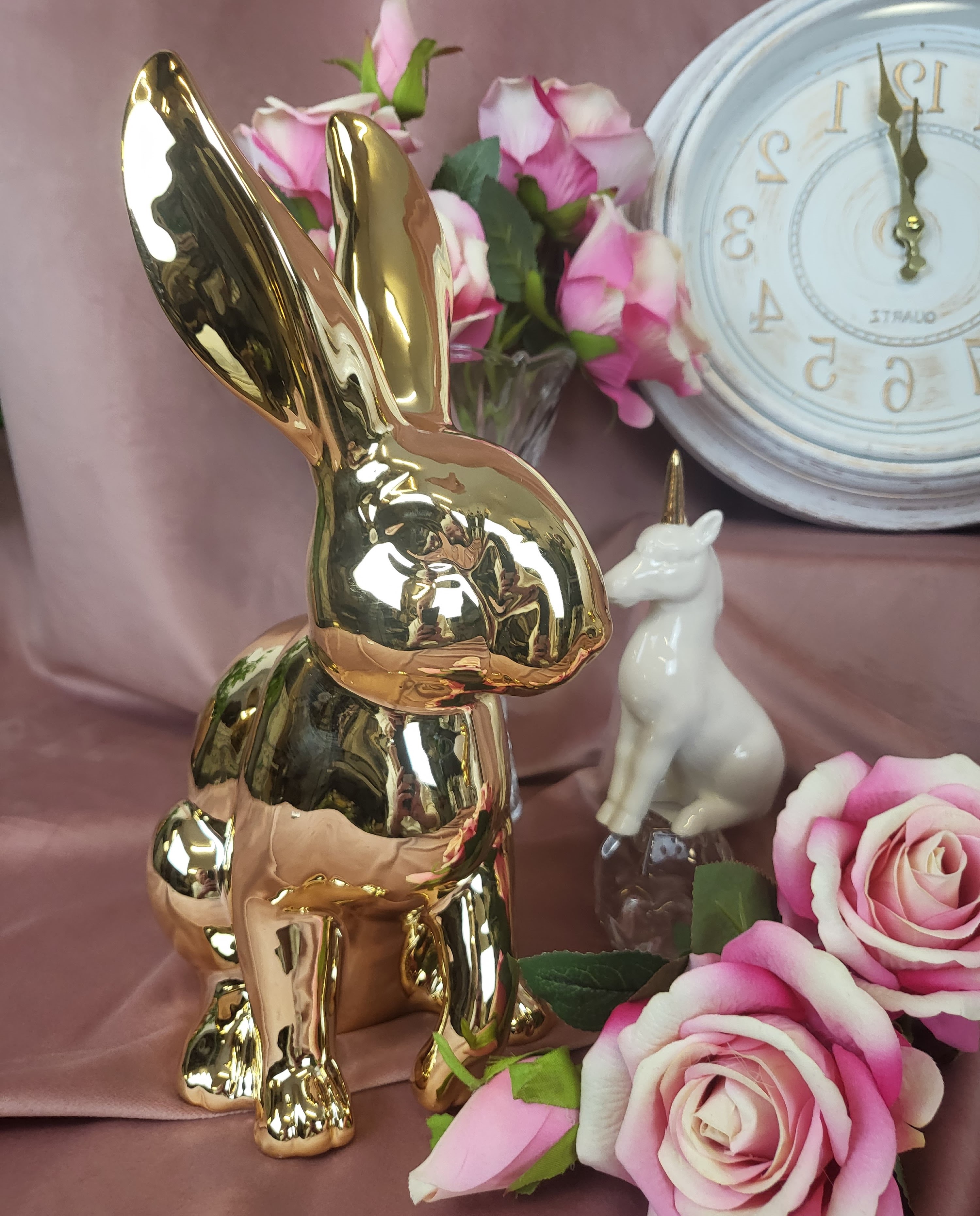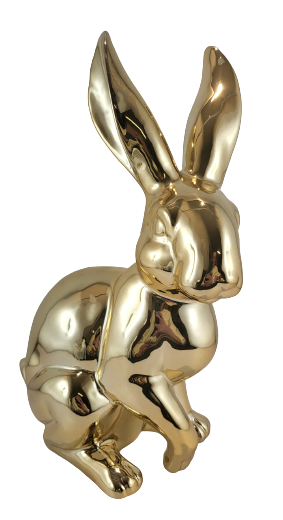 Super królik siedzący z podniesioną łapką - Wielkanocna jak i wiosenna dekoracja do Państwa domu. Nada niepowtarzalnego charakteru wnętrzu urządzonego praktycznie w każdym stylu. Będzie atrakcyjną ozdobą Wielkanocnego stołu.