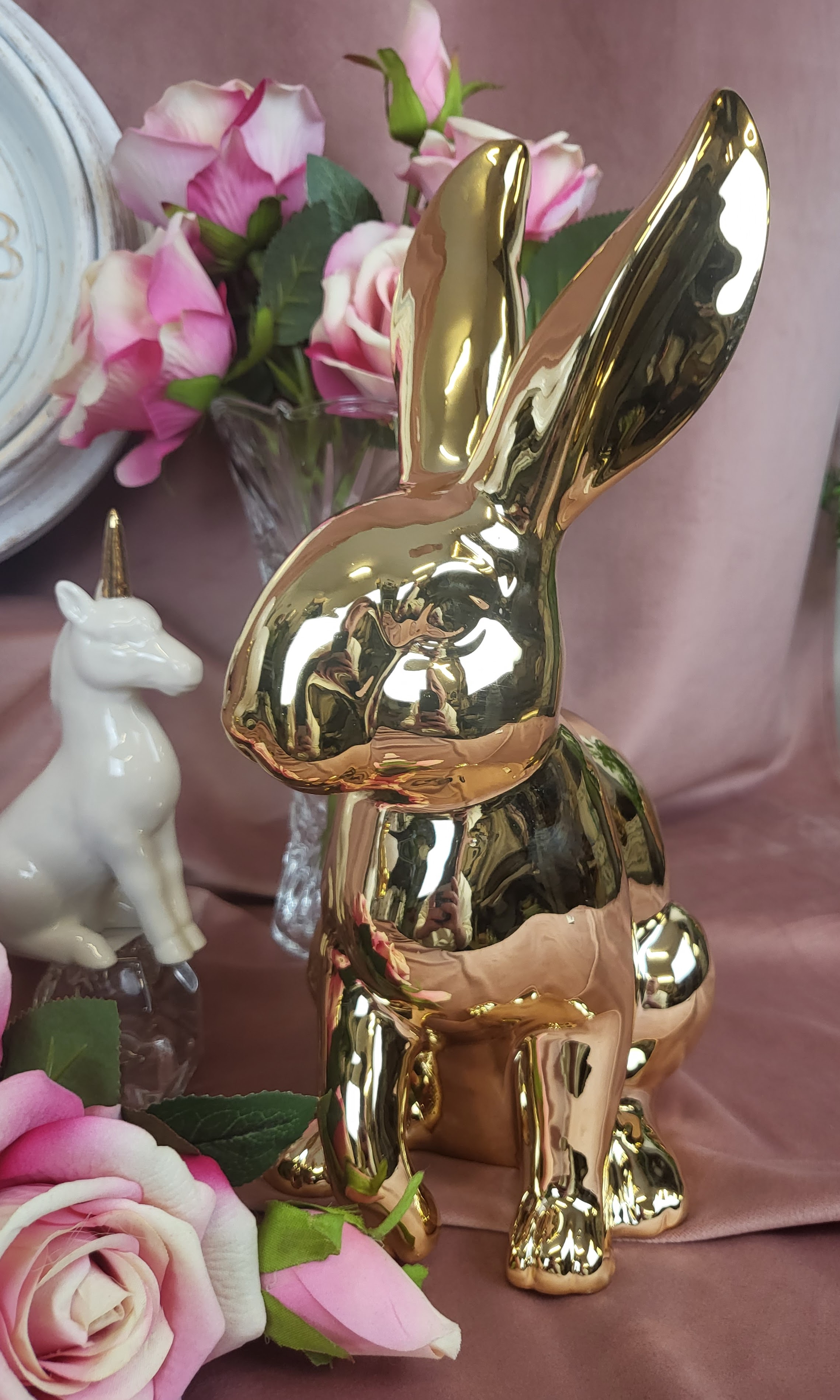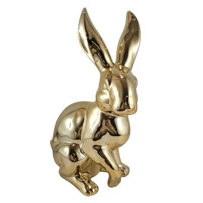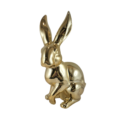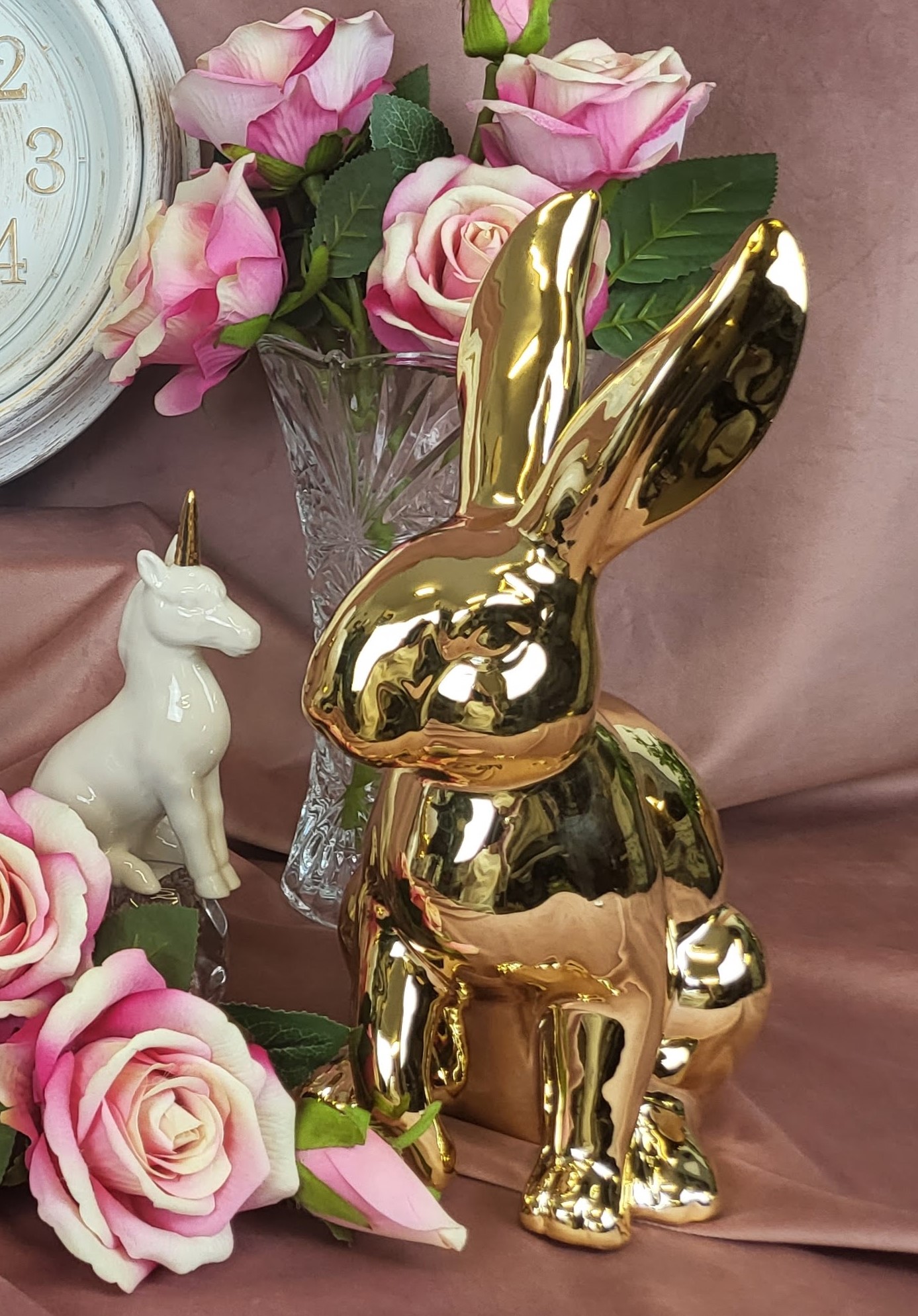 Super królik siedzący z podniesioną łapką - Wielkanocna jak i wiosenna dekoracja do Państwa domu. Nada niepowtarzalnego charakteru wnętrzu urządzonego praktycznie w każdym stylu. Będzie atrakcyjną ozdobą Wielkanocnego stołu.
