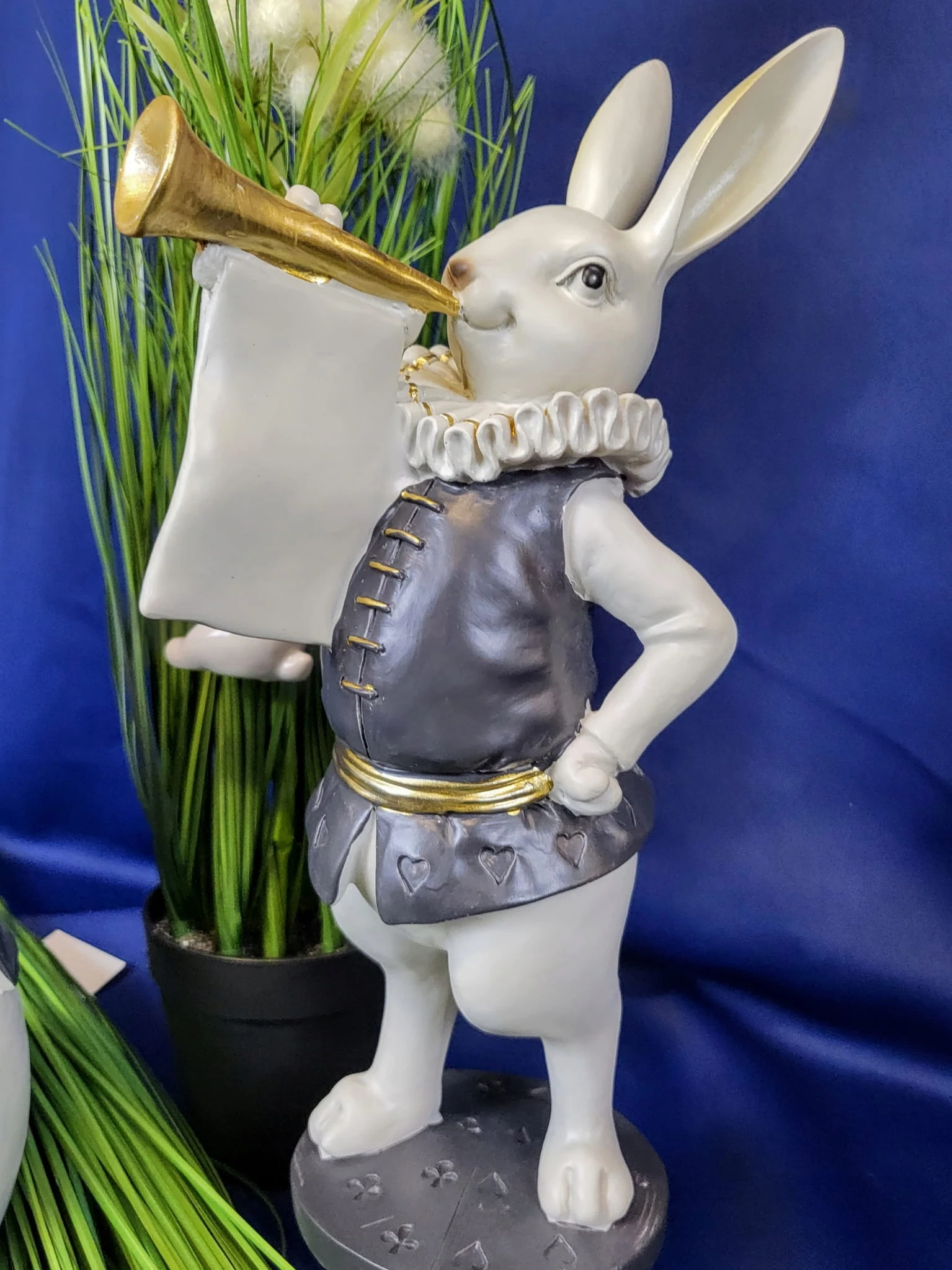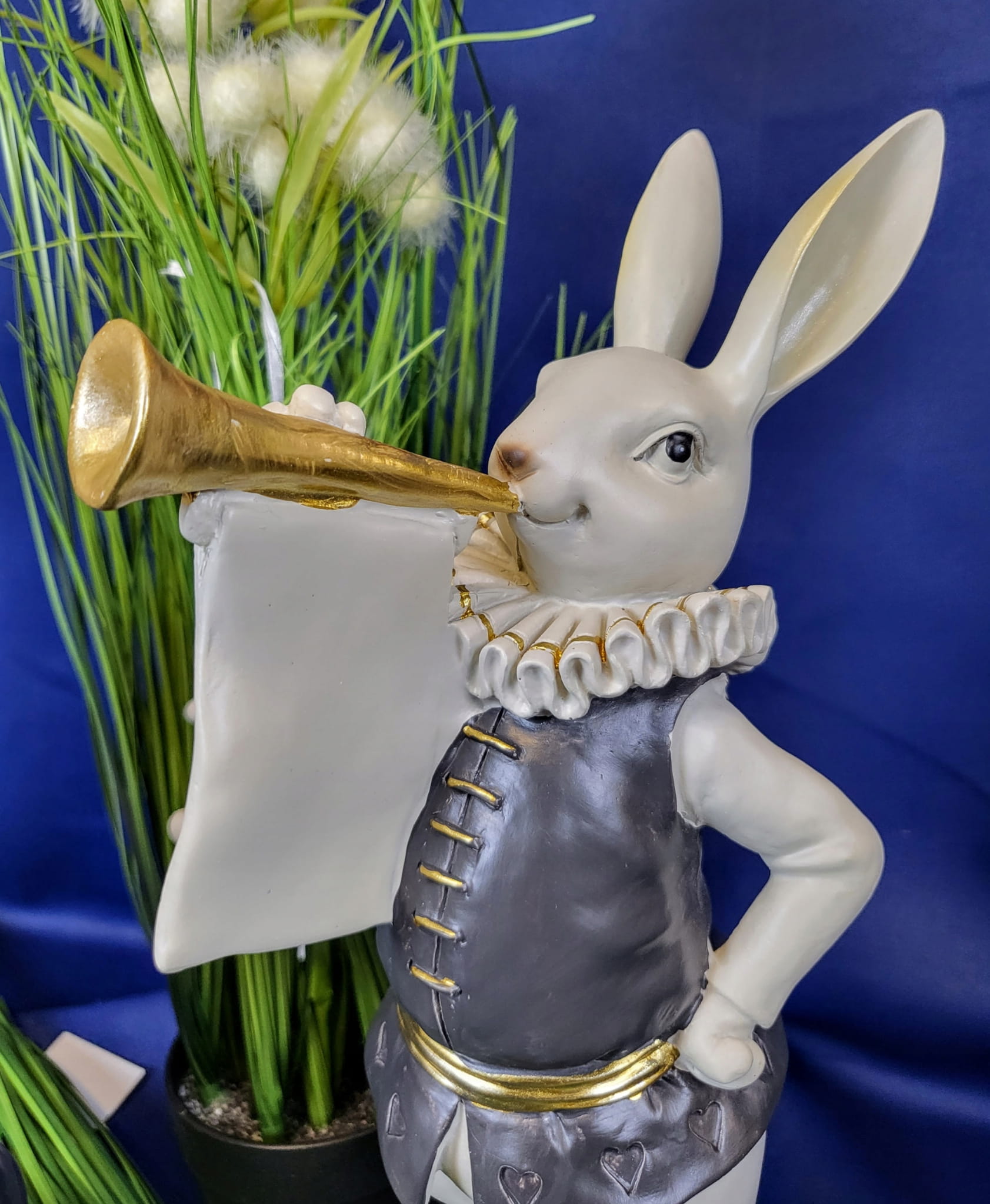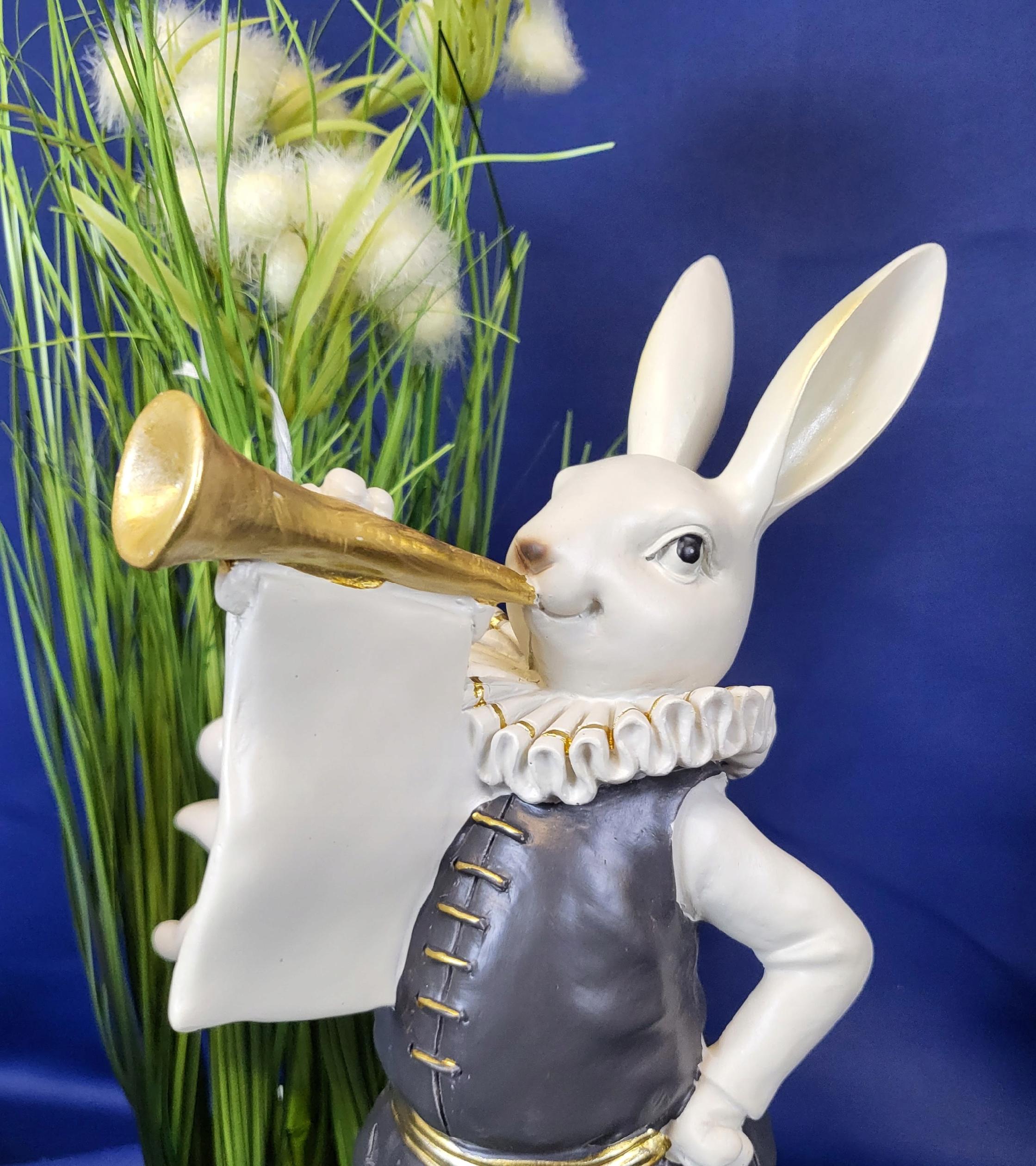Super zając z trąbką i kryzą - Wielkanocna jak i wiosenna dekoracja do Państwa domu. Nada niepowtarzalnego charakteru wnętrzu urządzonego praktycznie w każdym stylu.
