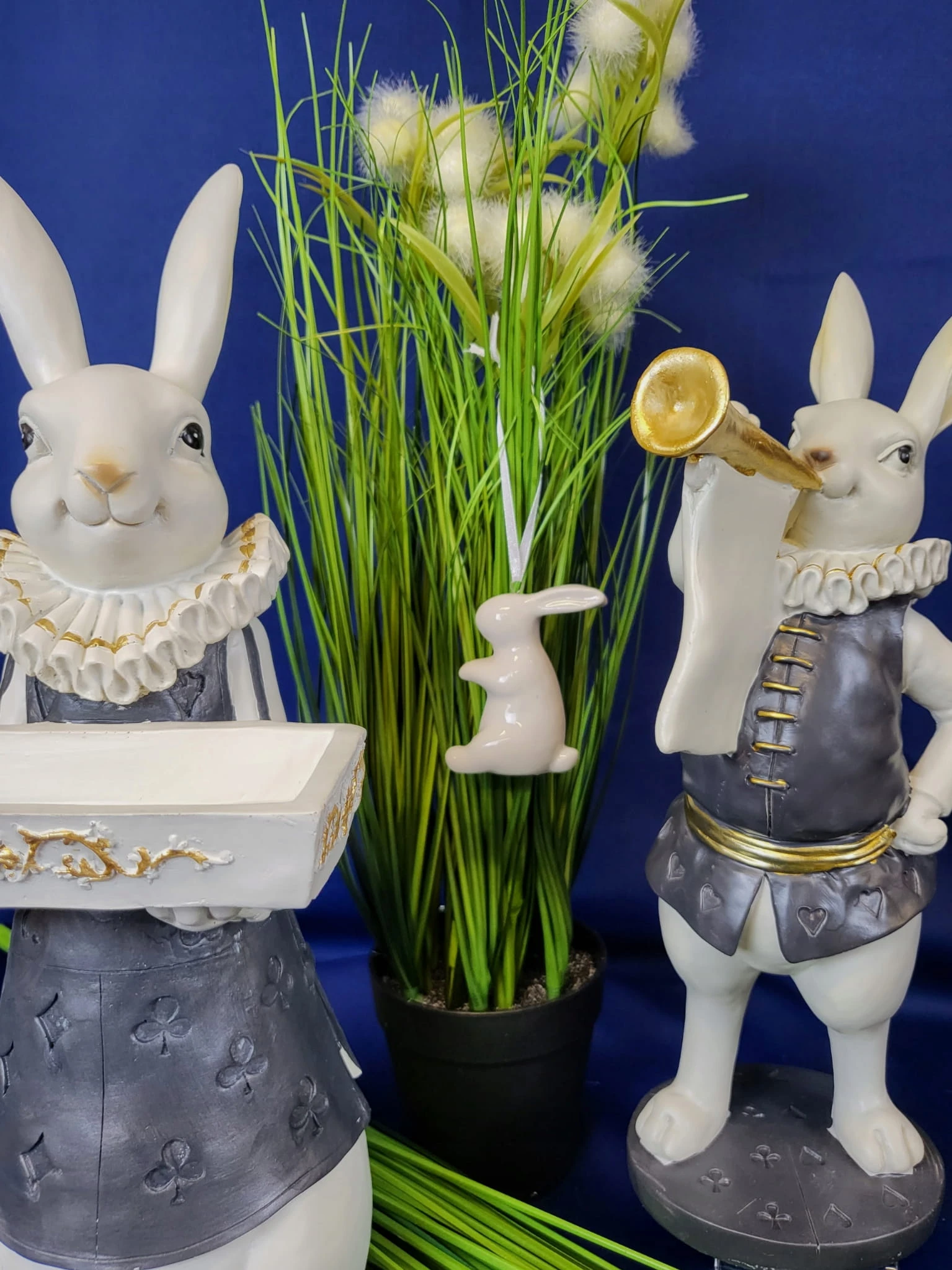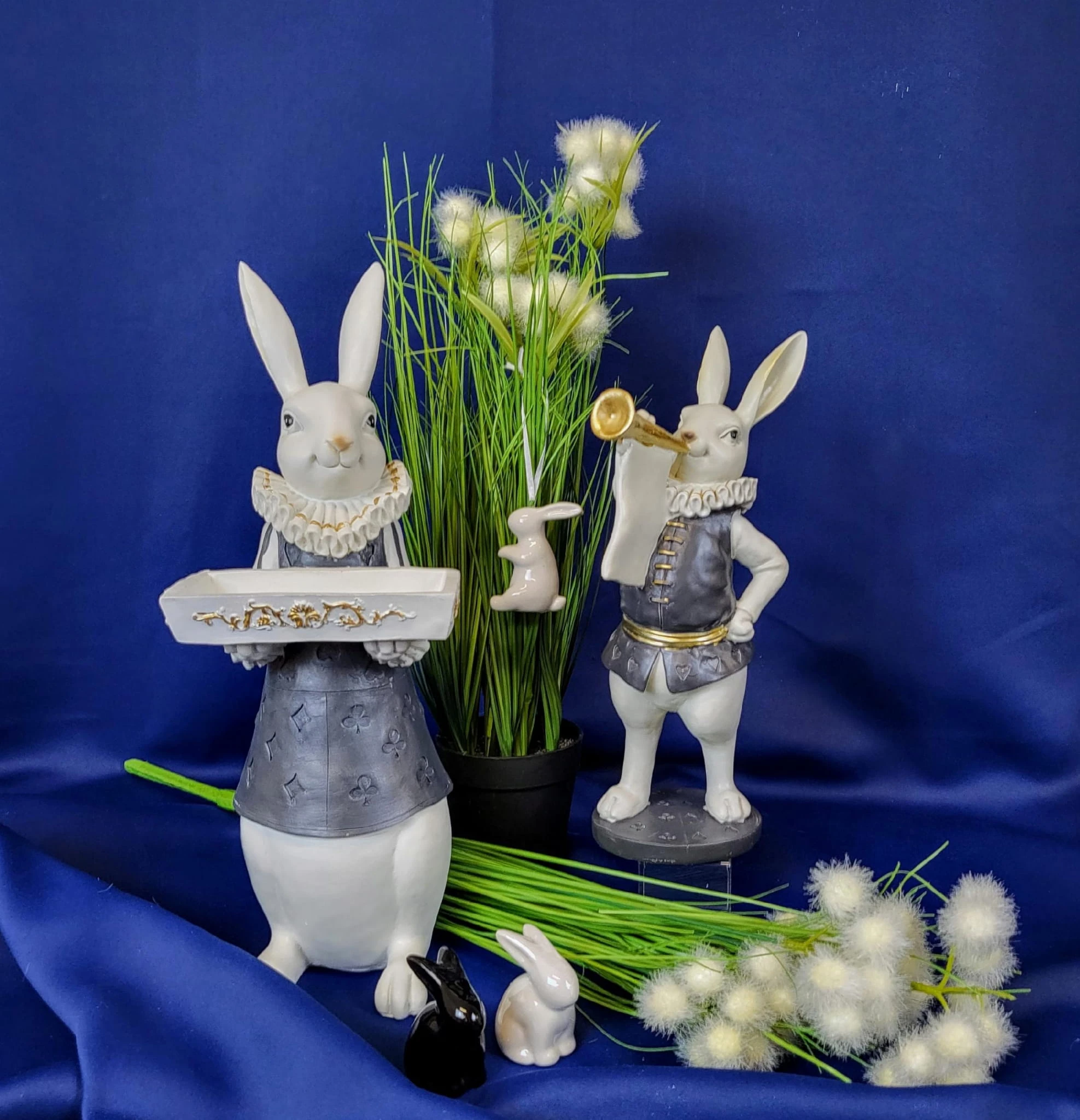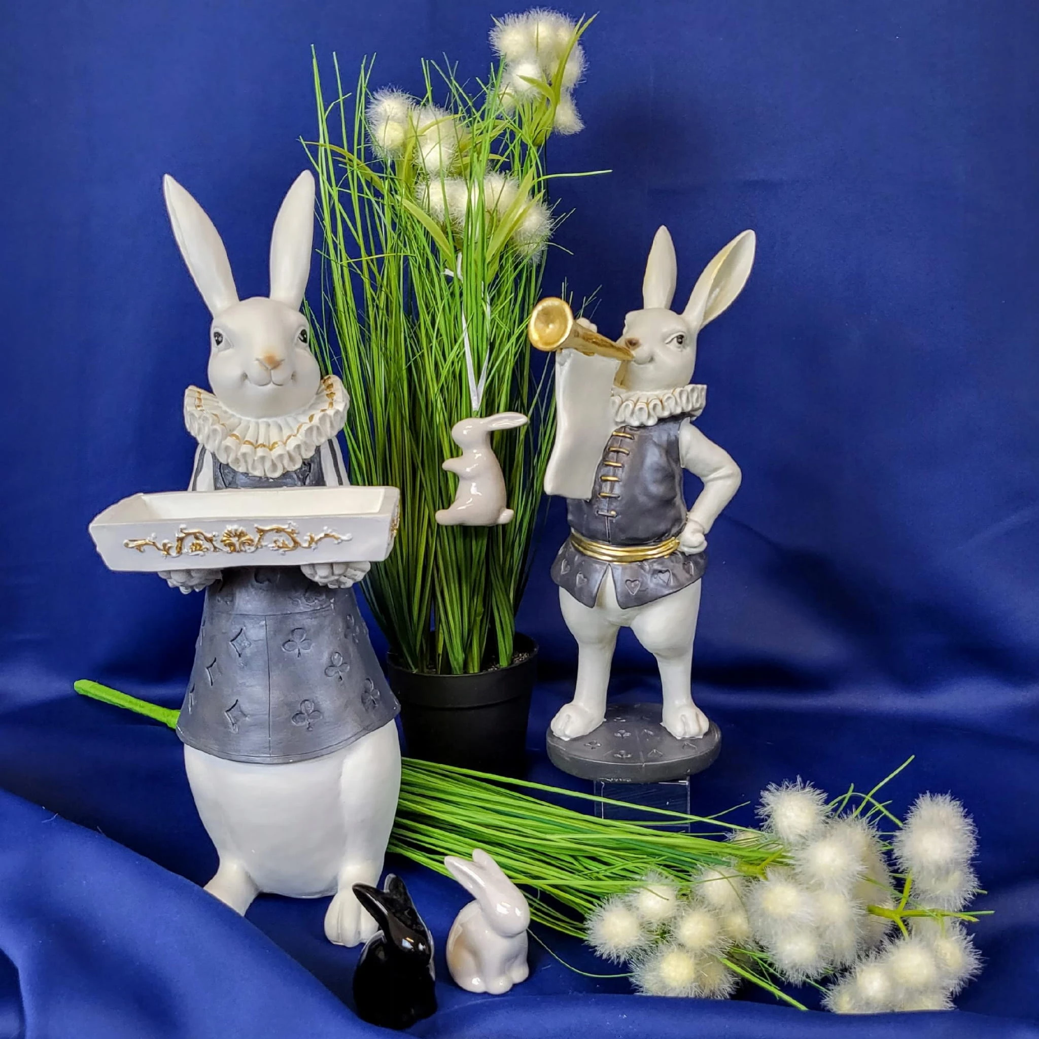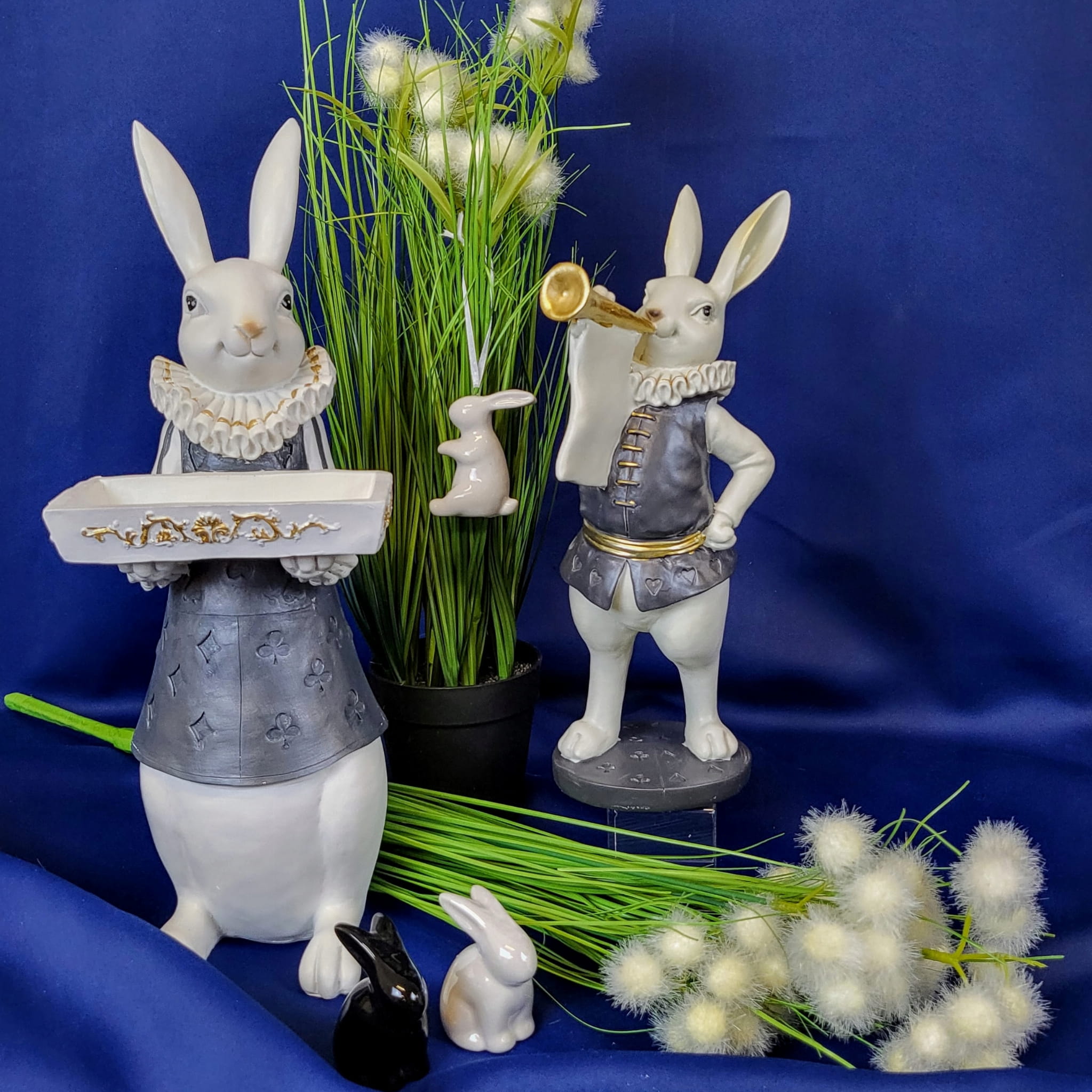 Super zając z trąbką i kryzą - Wielkanocna jak i wiosenna dekoracja do Państwa domu. Nada niepowtarzalnego charakteru wnętrzu urządzonego praktycznie w każdym stylu.