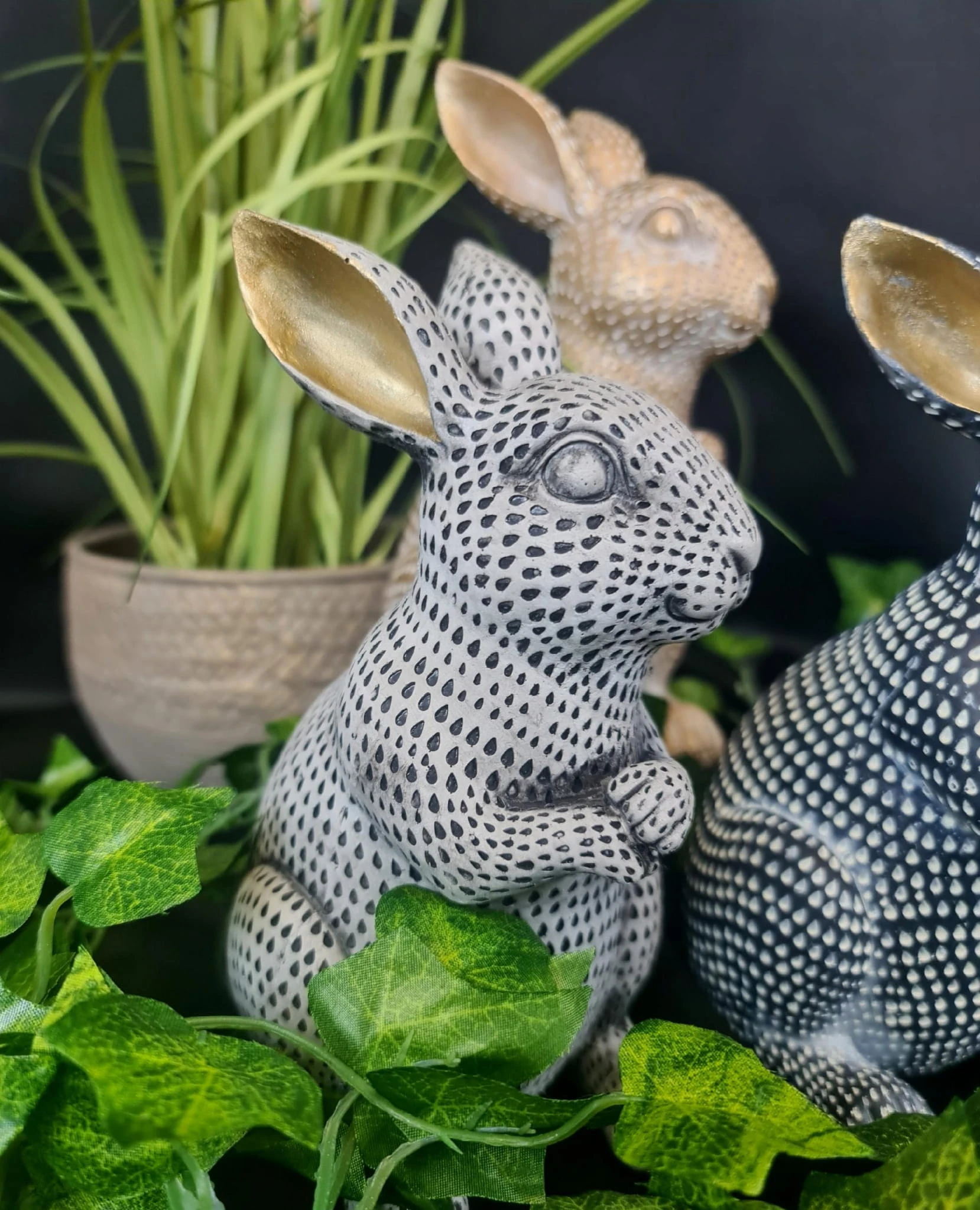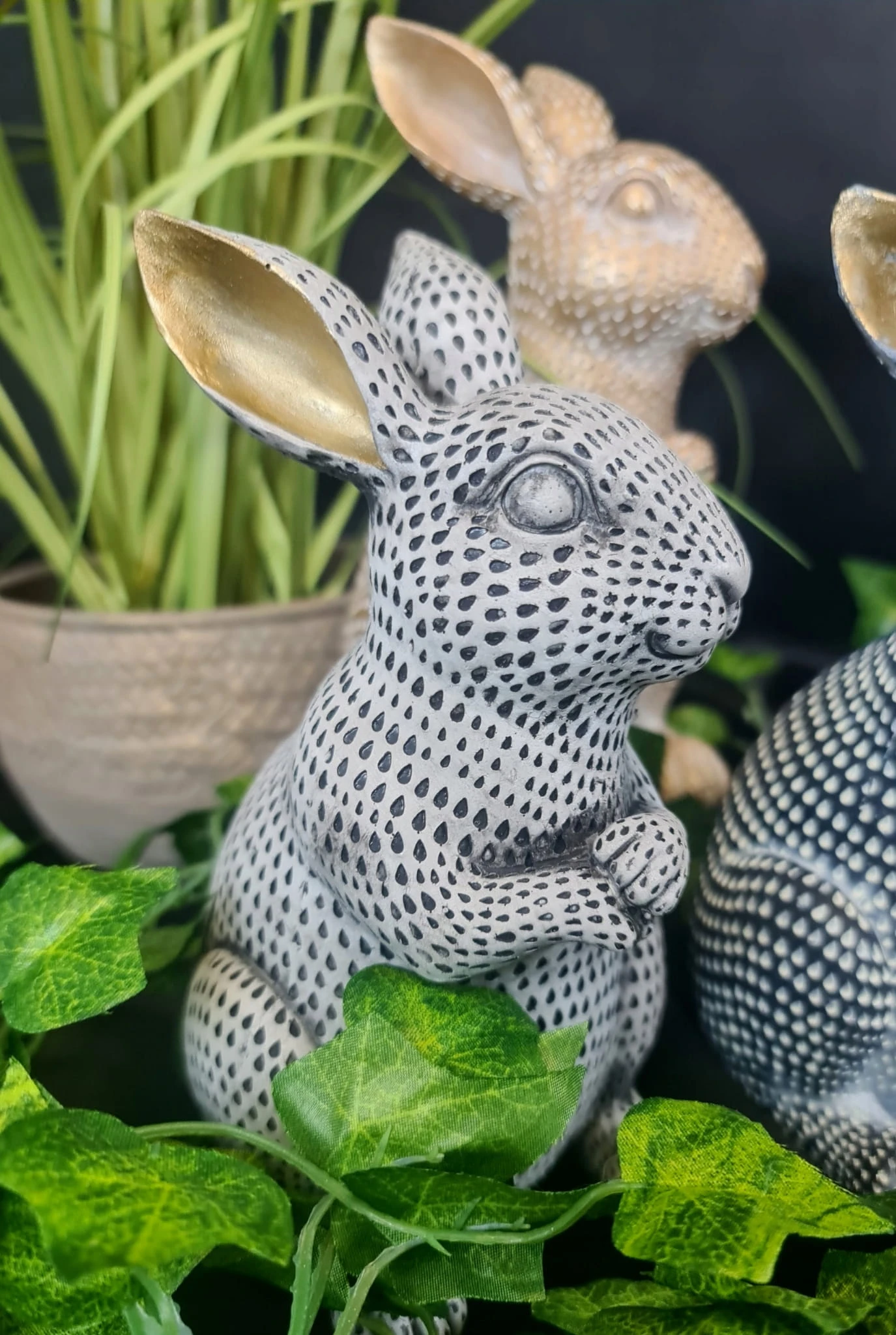 KRÓLIK ZAJĄC WIELKANOCNY CERAMICZNY BIAŁO-CZARNY