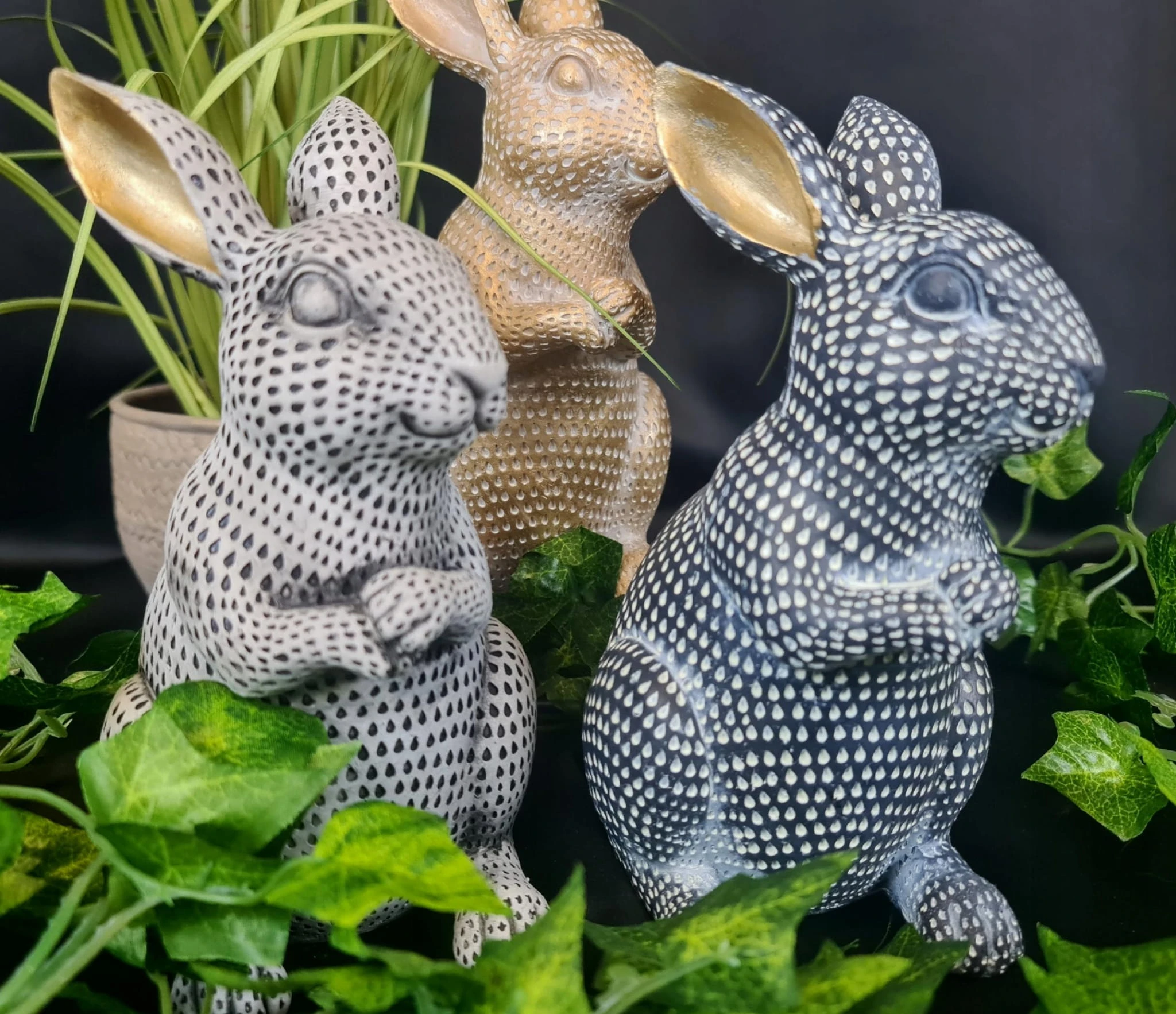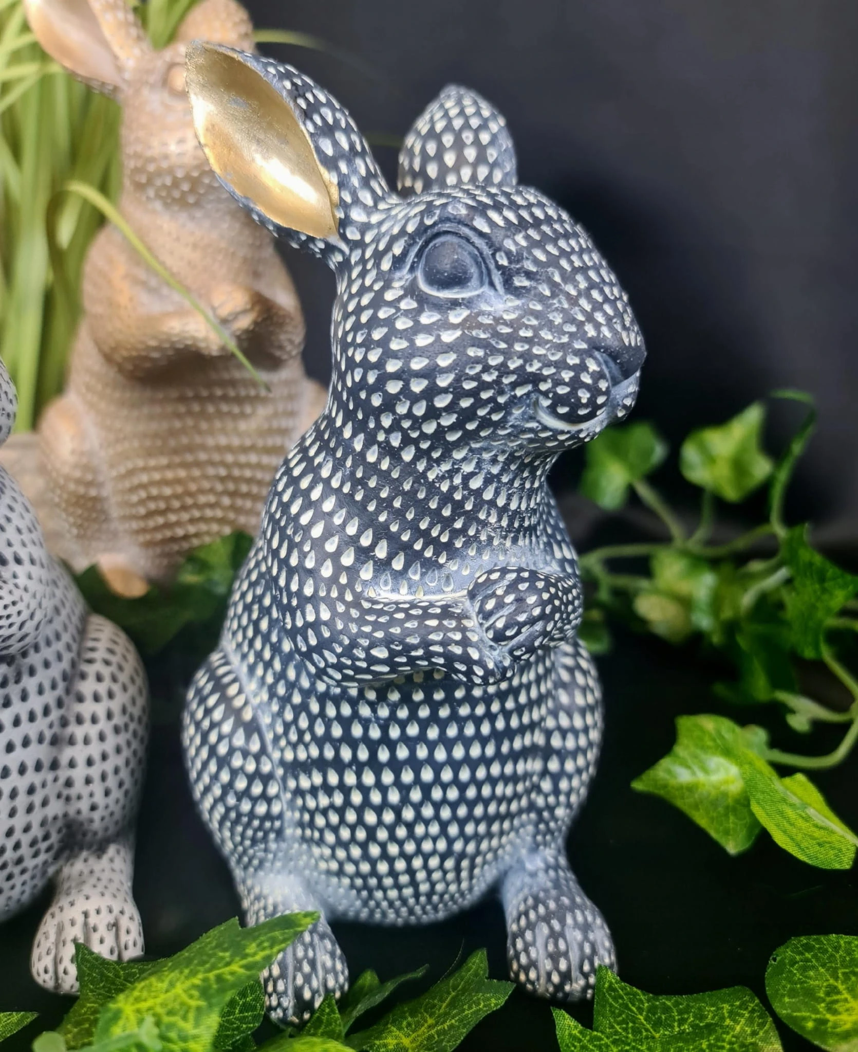KRÓLIK ZAJĄC WIELKANOCNY CERAMICZNY CZARNO-BIAŁY