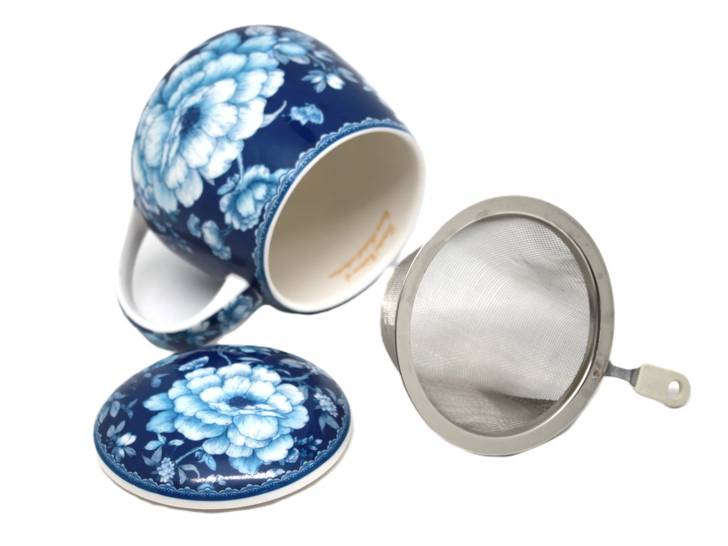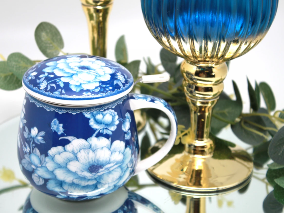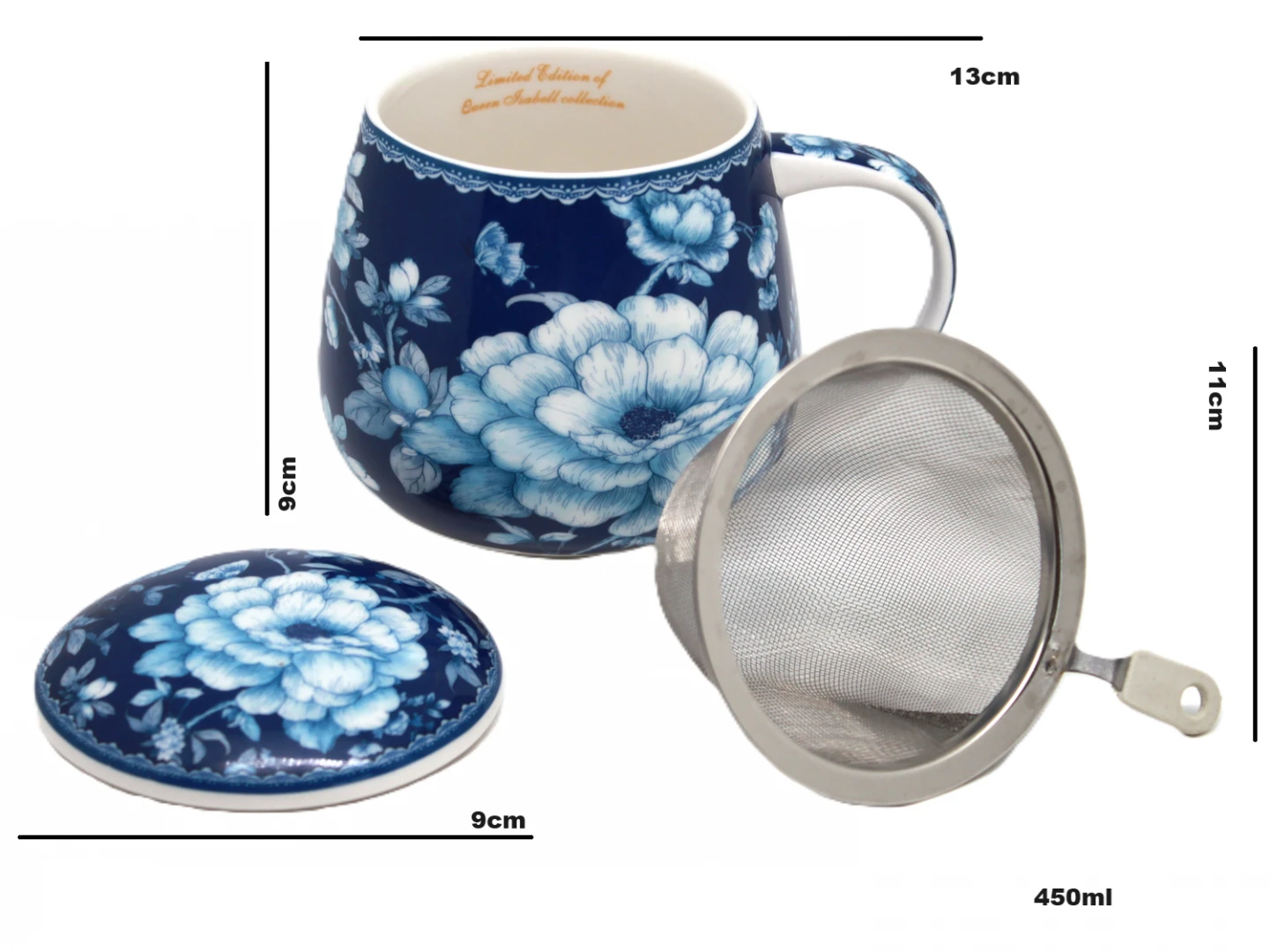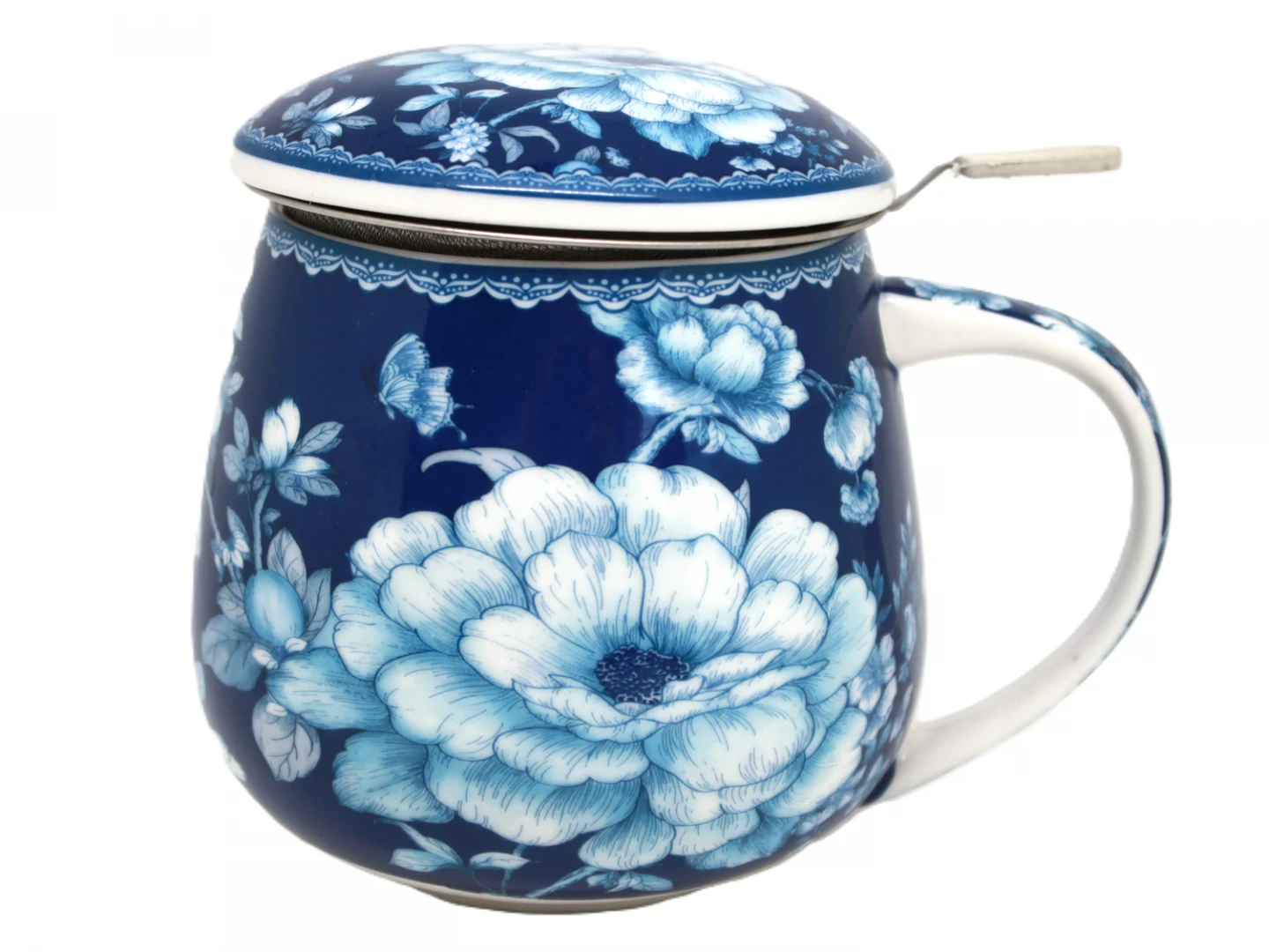 KUBEK 450 ML Z METALOWYM ZAPARZACZEM BLUE ROSE