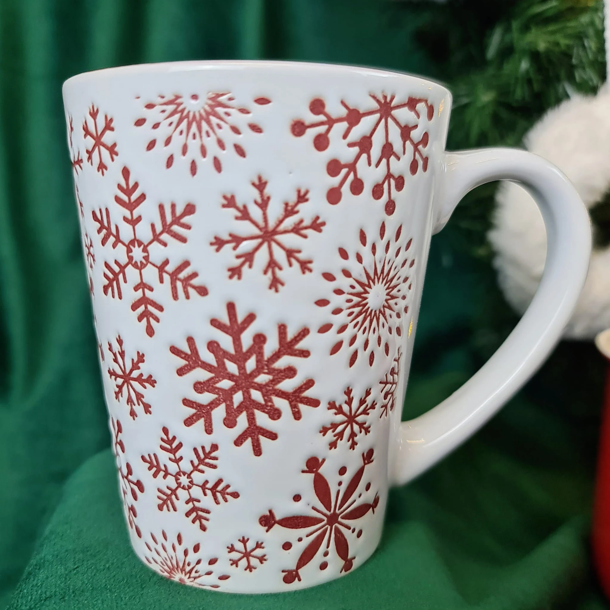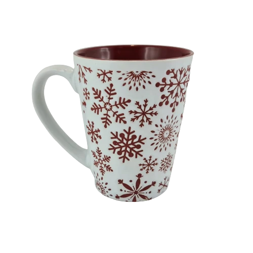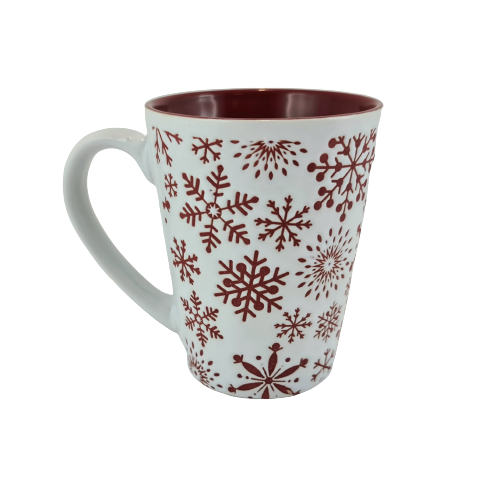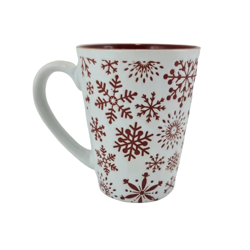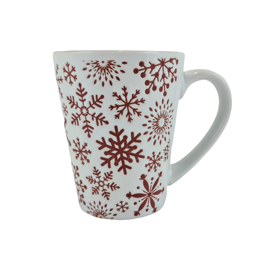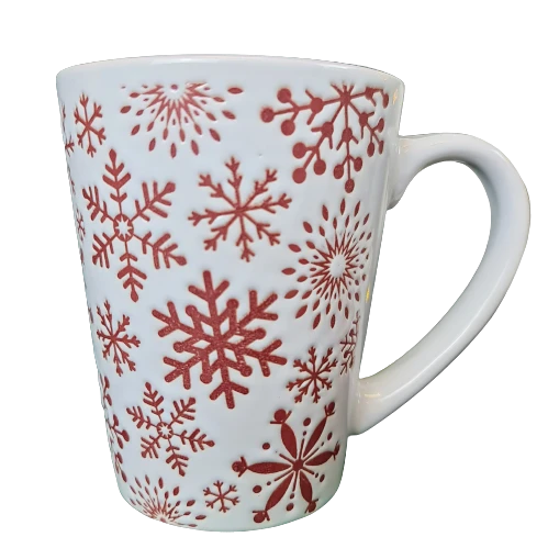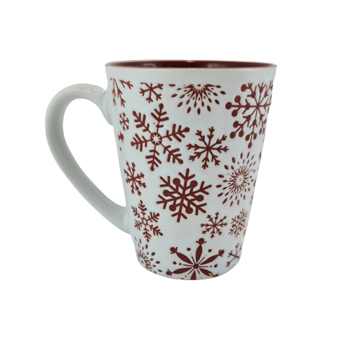 KUBEK BIAŁY Z CZERWONYMI ŚNIEŻYNKAMI 320 ML