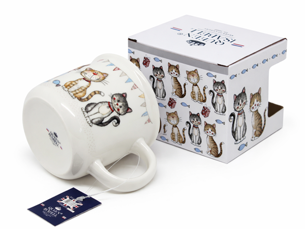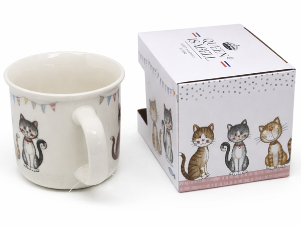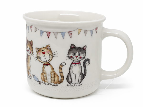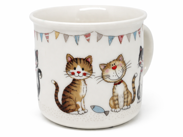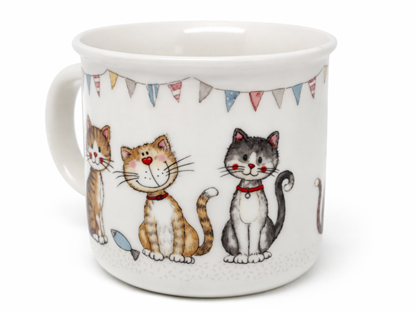 Czy jest coś przyjemniejszego niż poranna kawa lub herbata w towarzystwie uroczych mruczków? Ten wyjątkowy kubek o pojemności 400 ml został stworzony z myślą o osobach, które kochają zwierzęta i cenią sobie radosne dodatki w kuchni. Ścianki naczynia zdobią autorskie ilustracje uśmiechniętych kotów oraz kolorowa girlanda, co nadaje mu przytulnego, nieco bajkowego charakteru.