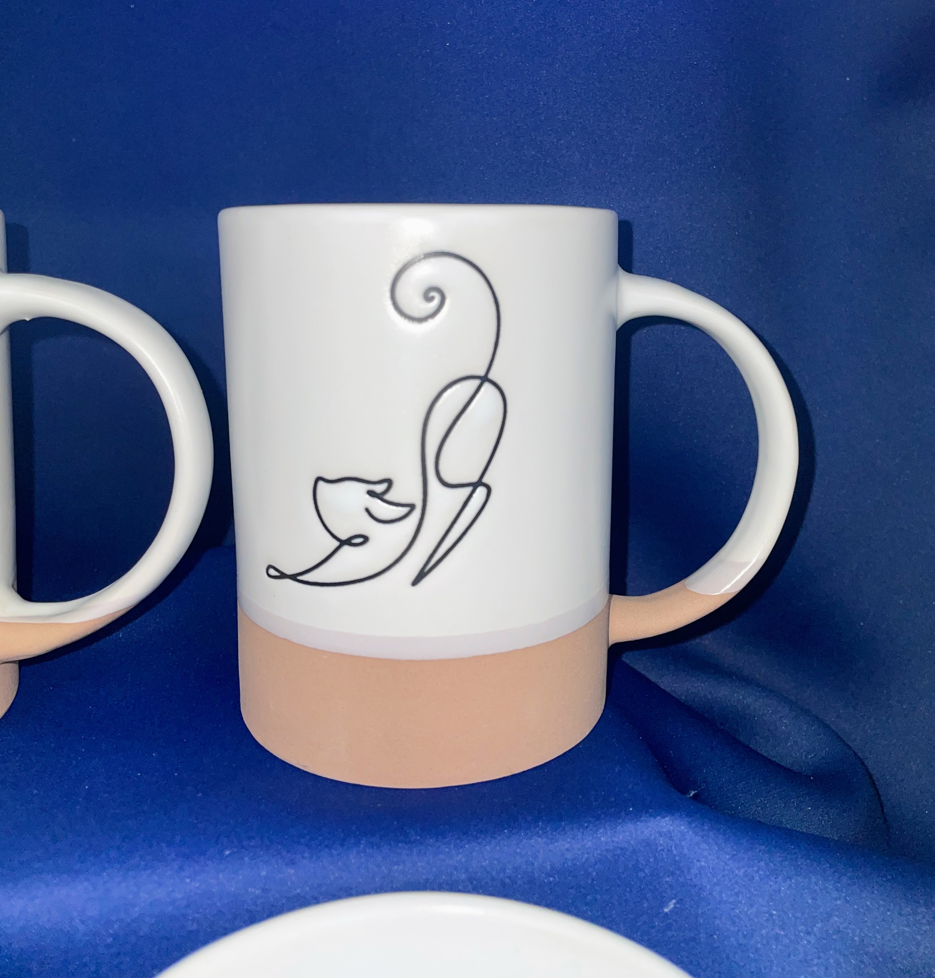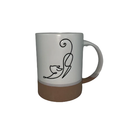 KUBEK CERAMICZNY BIAŁO - BEŻOWY Z KOTEM