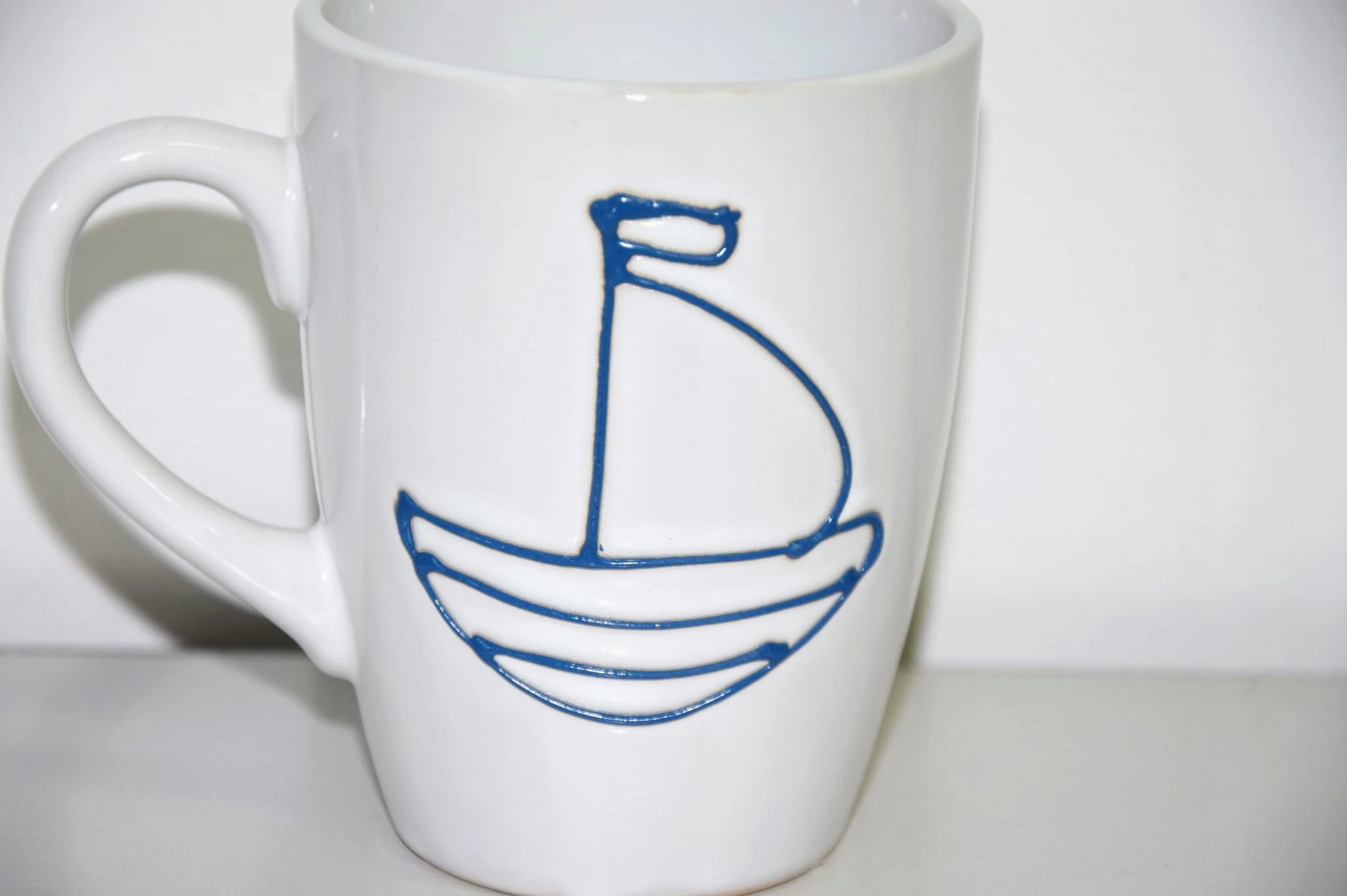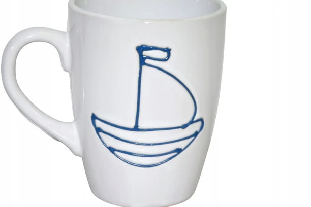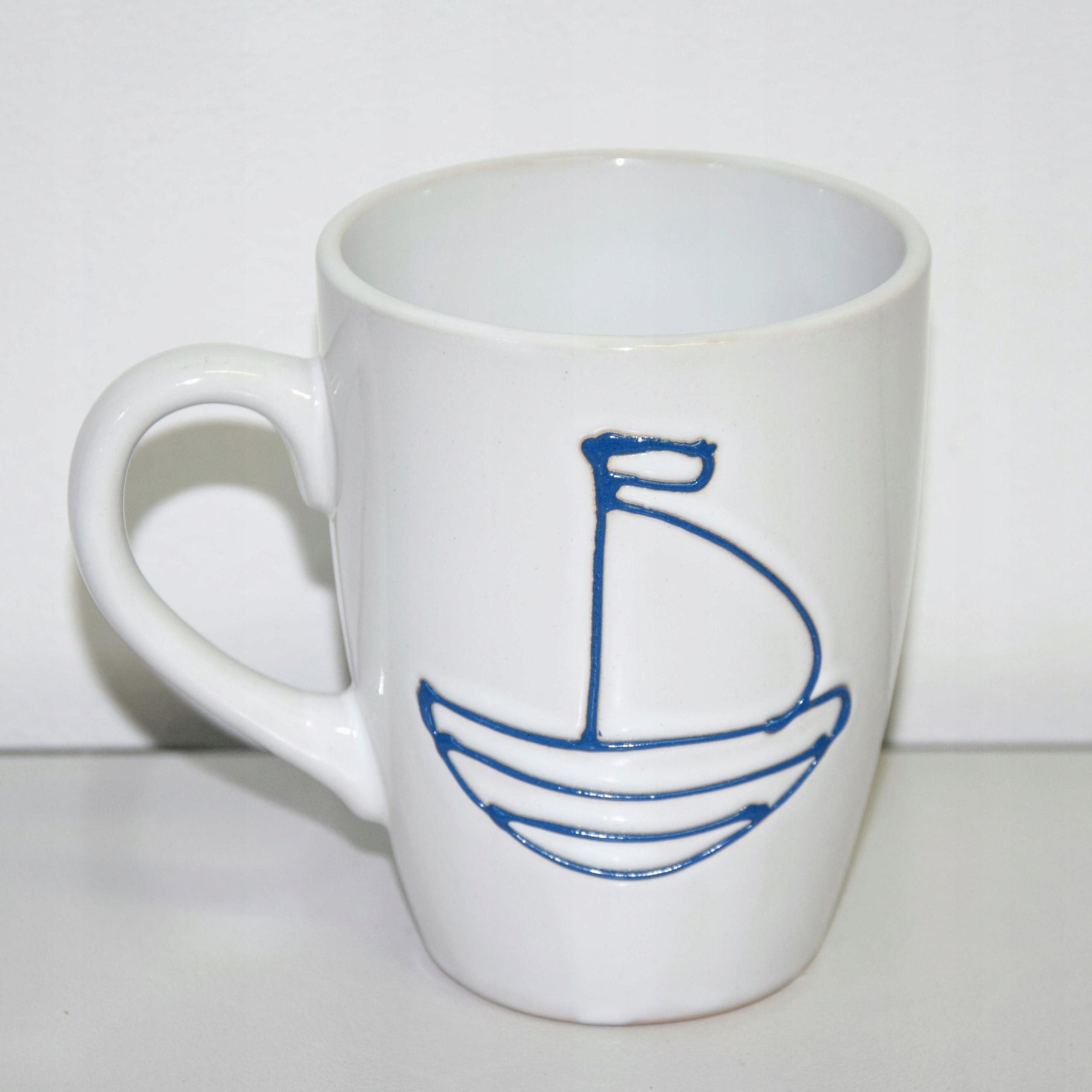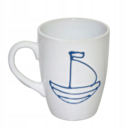KUBEK CERAMICZNY BIAŁY Z ŻAGLÓWKĄ 310ML