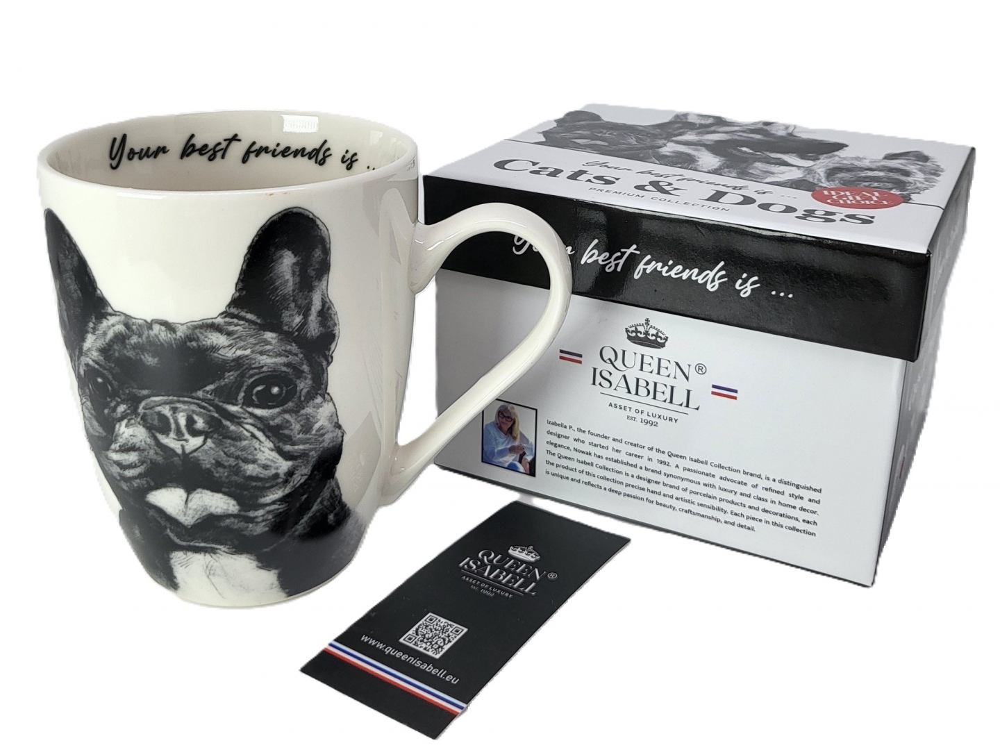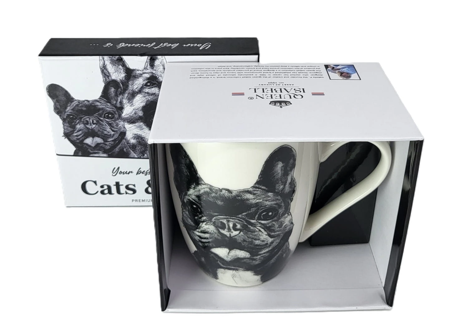 Kubek wykonany jest z wysokiej jakości ceramiki z rysunkiem buldoga francuskiego. Opakowanie prezentowe kubka z rysunkiem buldoga francuskiego jest równie urocze co jego zawartość.