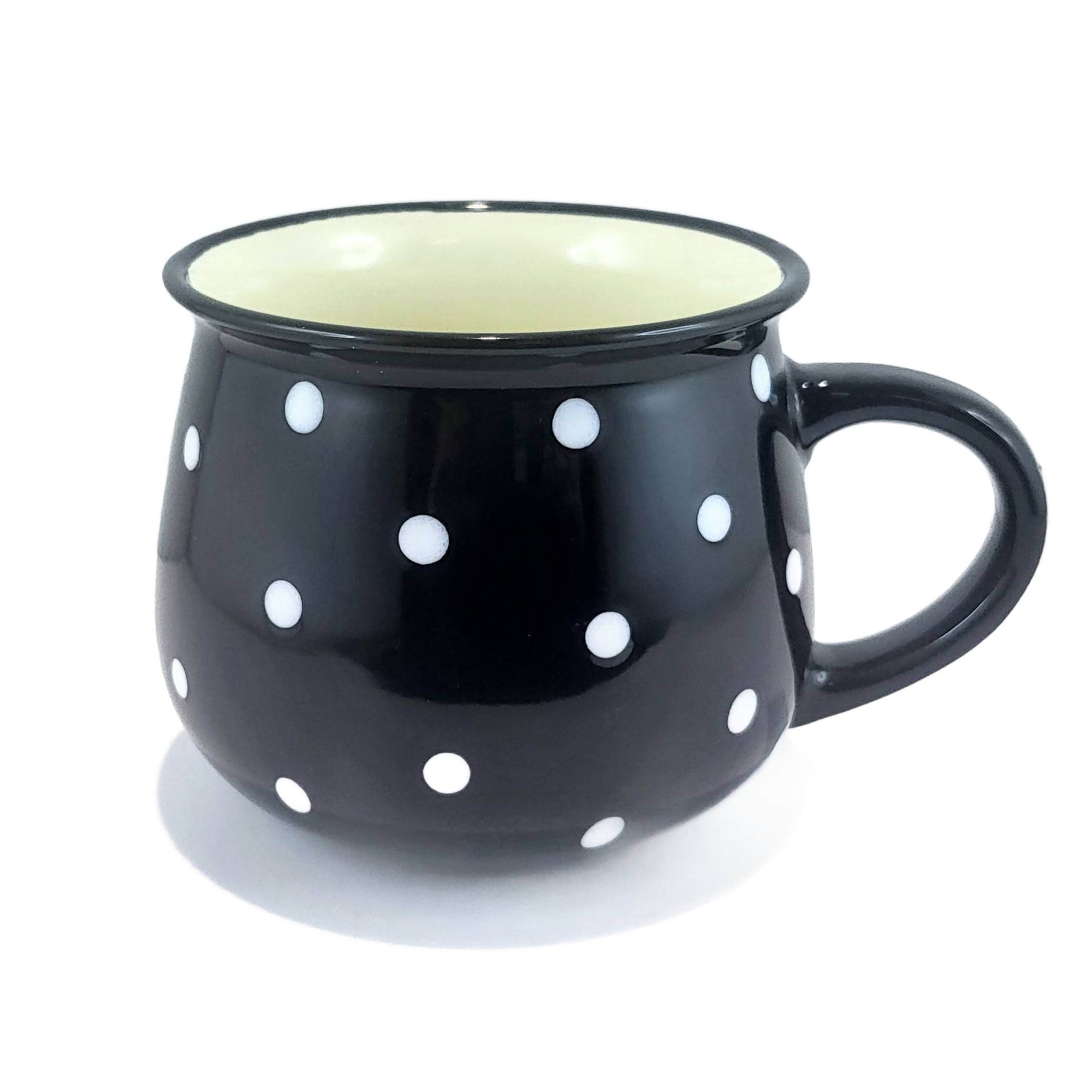 KUBEK CERAMICZNY CZARNY W KROPKI 770ML