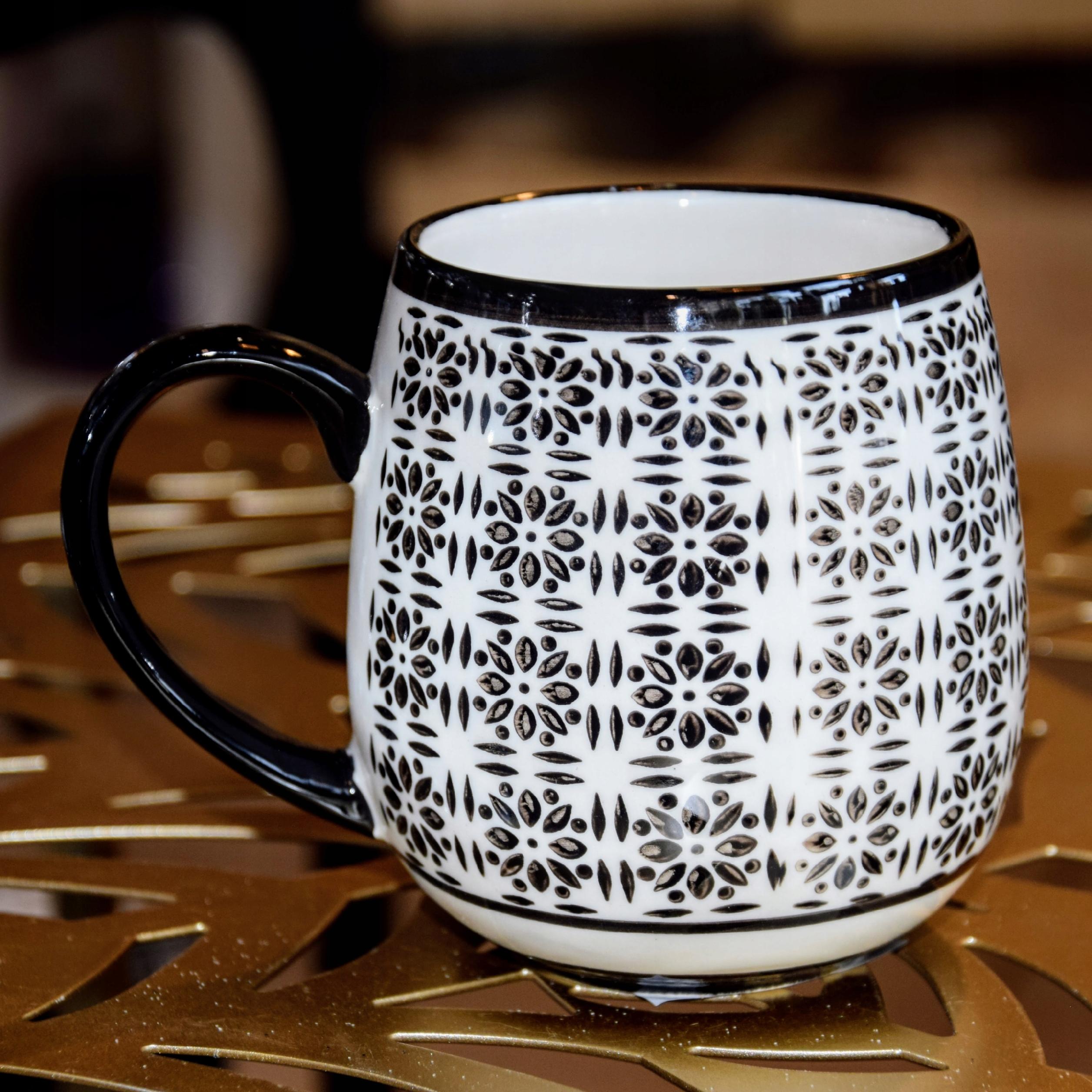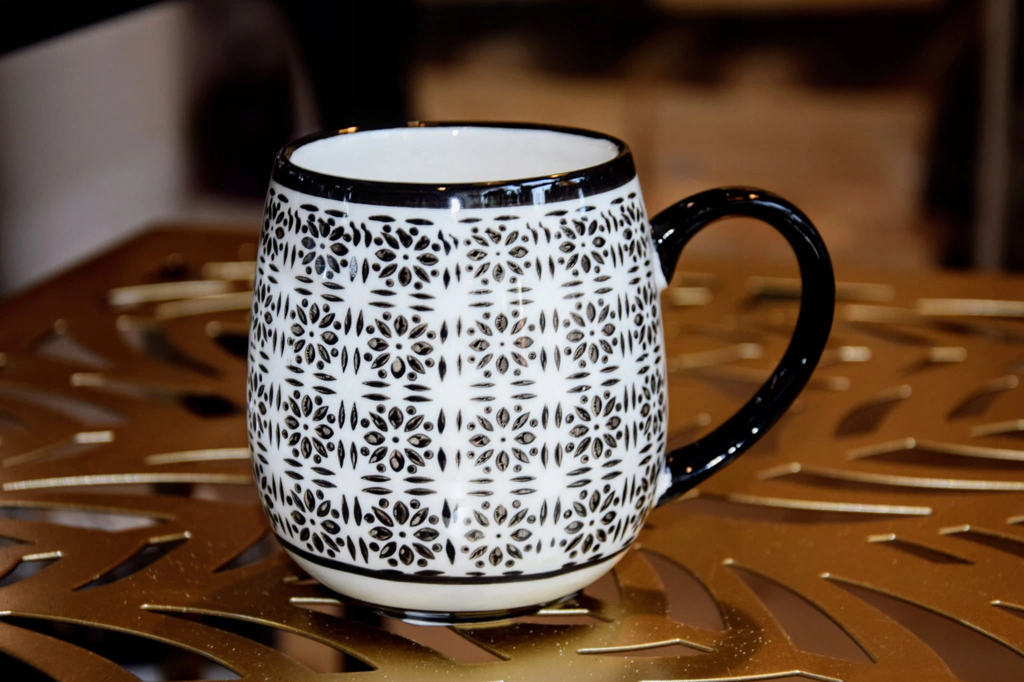 KUBEK CERAMICZNY CZARNY WZÓR 390ml