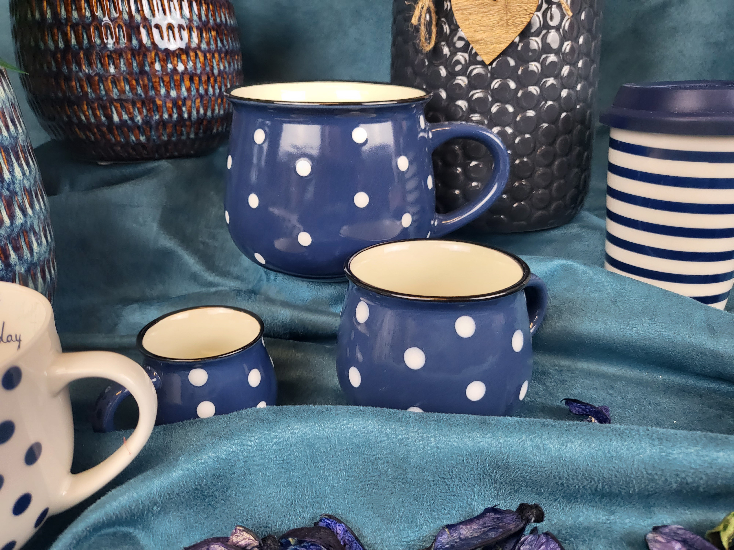 KUBEK CERAMICZNY GRANATOWY W KROPKI 770ML