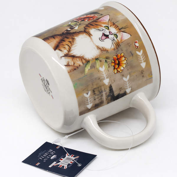 KUBEK CERAMICZNY 400ML KOT Z KWIATAMI 9x13CM PREZENT DLA KOCIARY