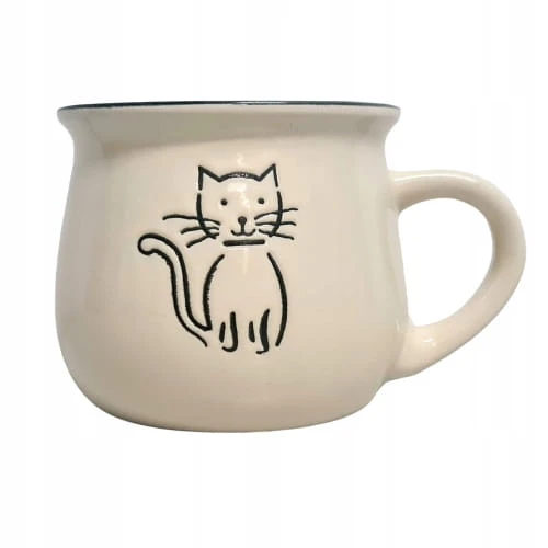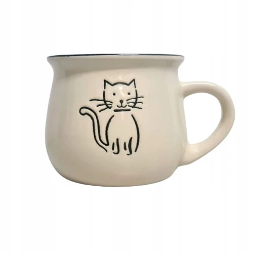 Kubek o pojemności 368ml wykonany z ceramiki zdobiony motywem kota.