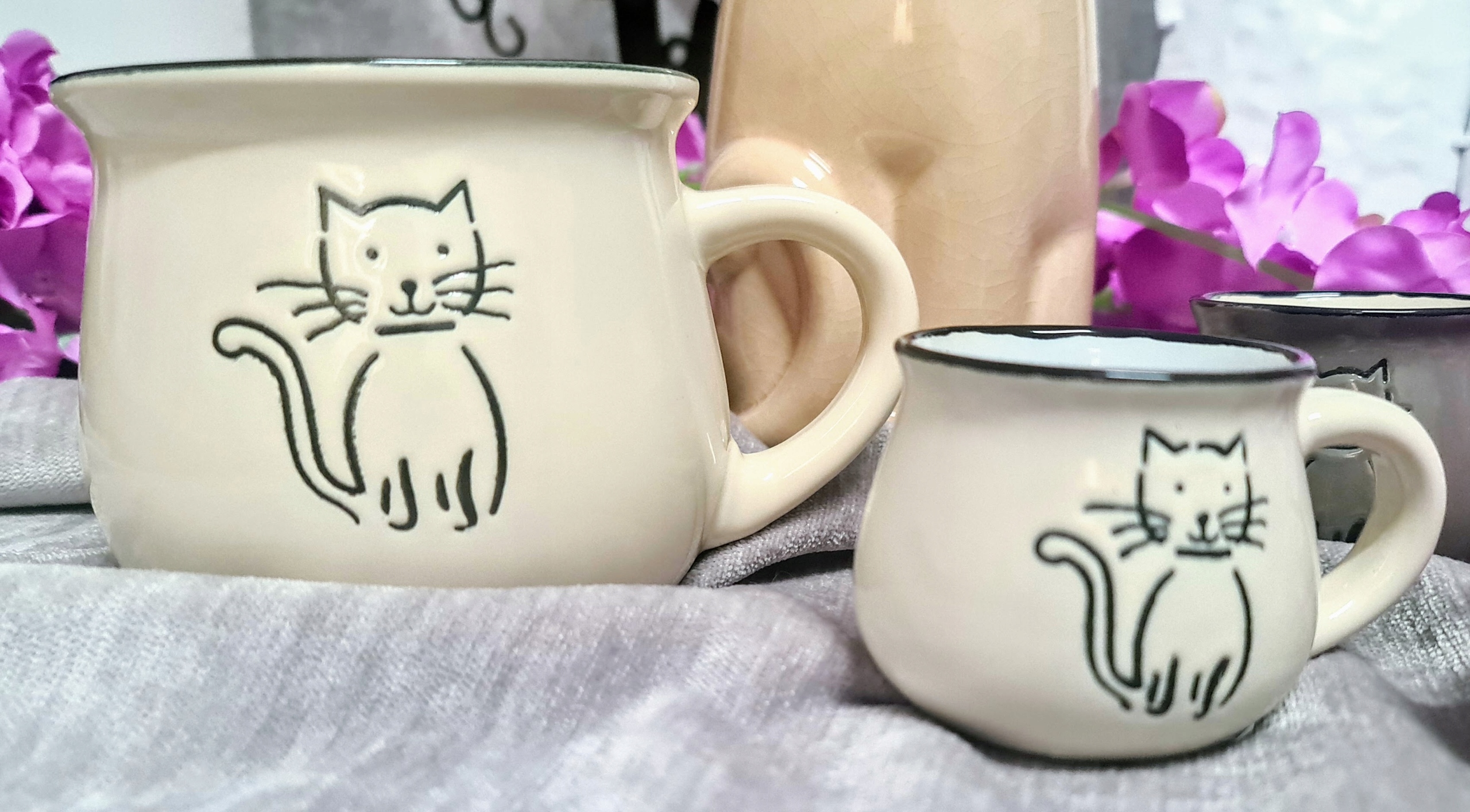 Kubek koty dostępny jest w 3 rozmiarach: 75ml, 370ml, 210ml i w kilku kolorach: krem, róż, jagodowy, czerwony, brąz - Znajdą je Państwo na innych naszych aukcjach.