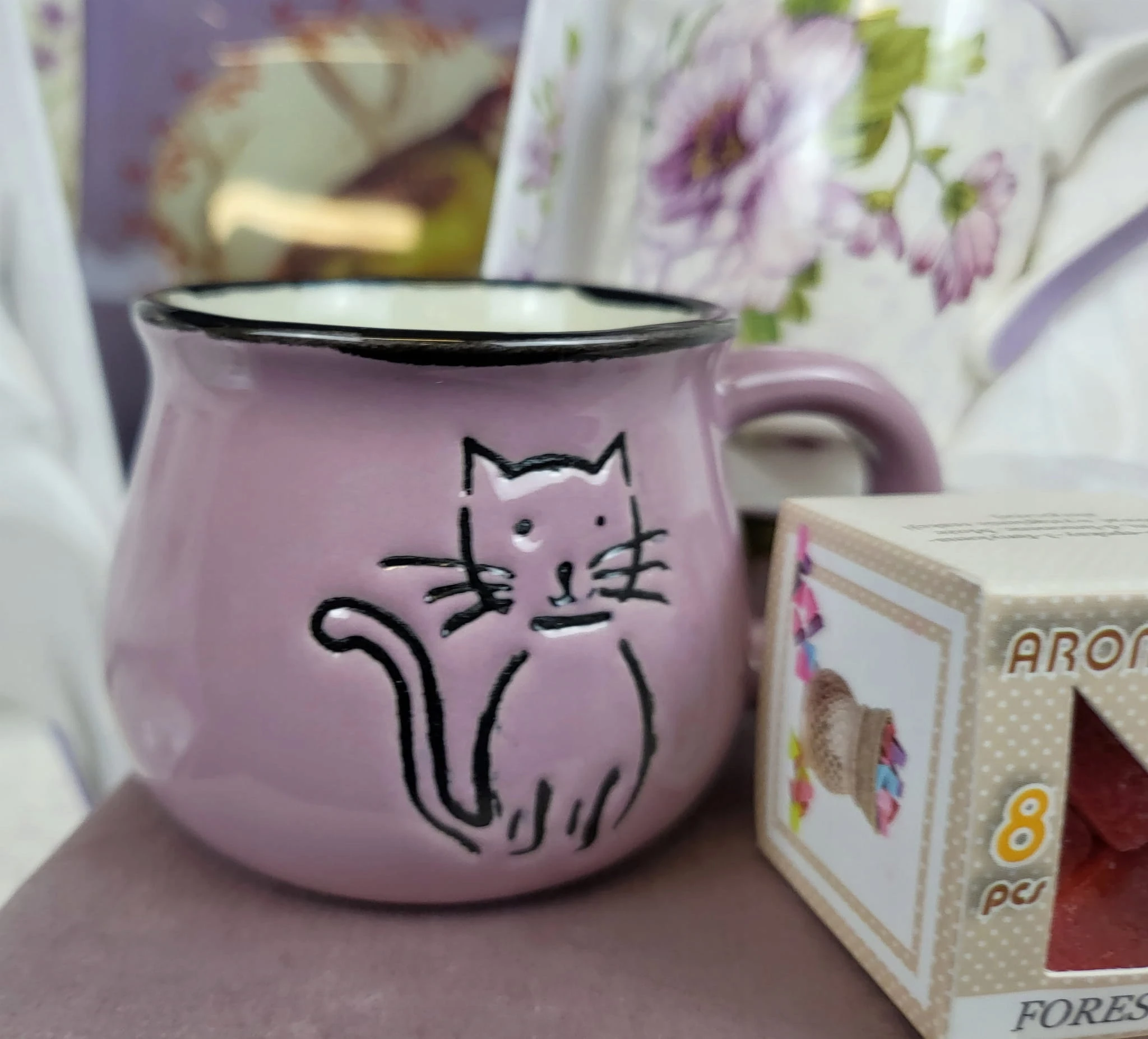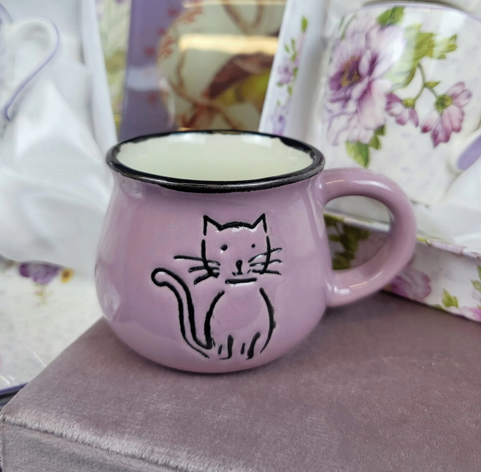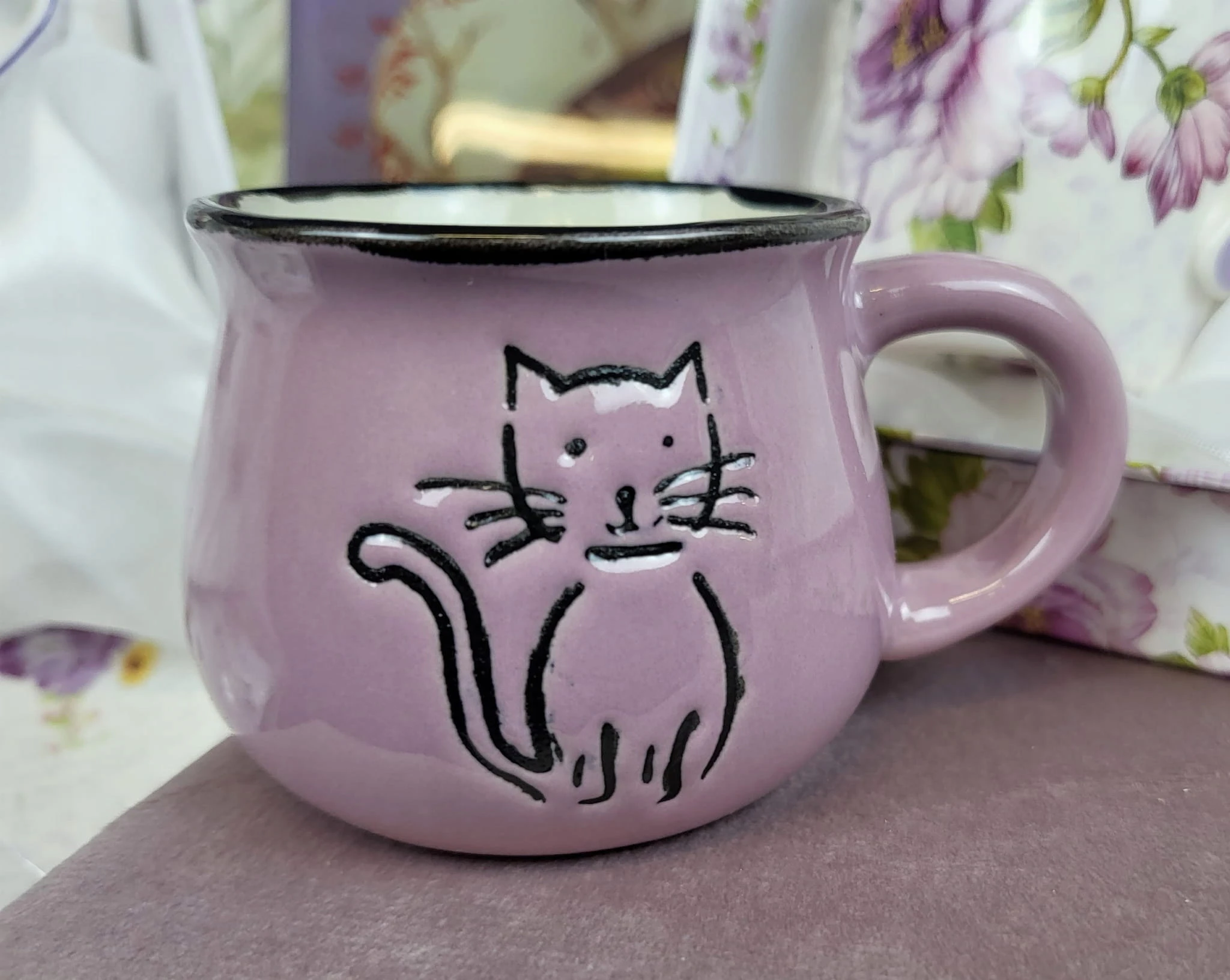 KUBEK CERAMICZNY KOTY PREZENT FIOLET 75 ML