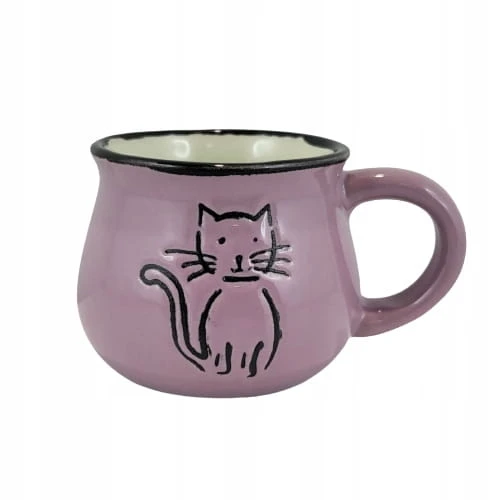 Kubek o pojemności 75 ml wykonany z ceramiki zdobiony motywem kota.