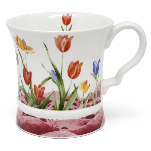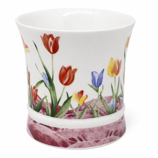 Rozpocznij dzień z uśmiechem, sięgając po kubek, który wnosi do wnętrza powiew wiosennej świeżości. Naczynie zdobi bogaty motyw kwitnących tulipanów, które dzięki żywym barwom i precyzyjnemu wykonaniu wyglądają niezwykle naturalnie. Dolna część kubka oraz jego ucho zostały wykończone subtelnym, różowym wzorem, co nadaje całości wyjątkowego, romantycznego charakteru.
