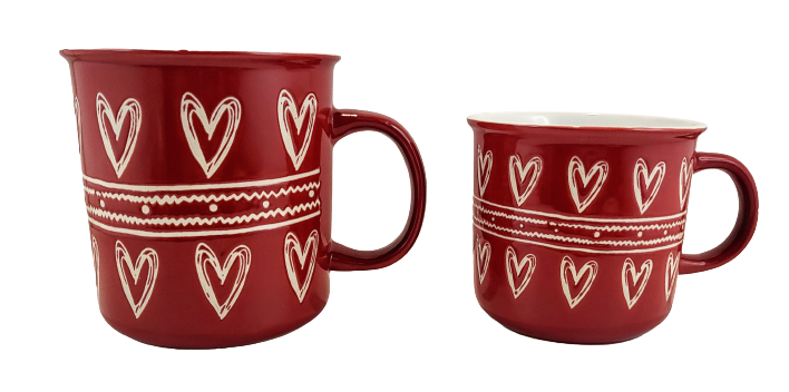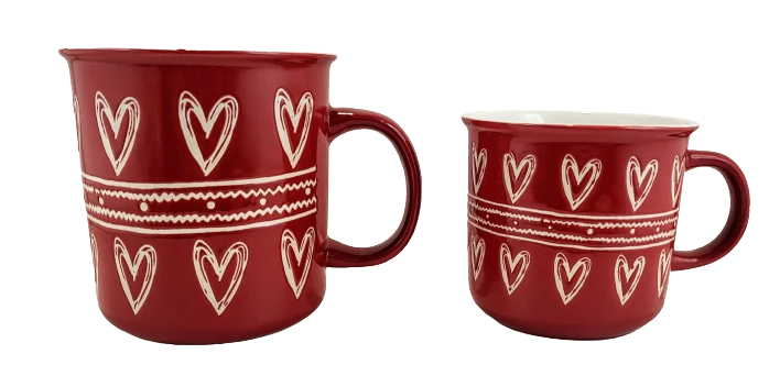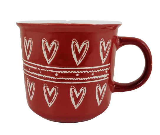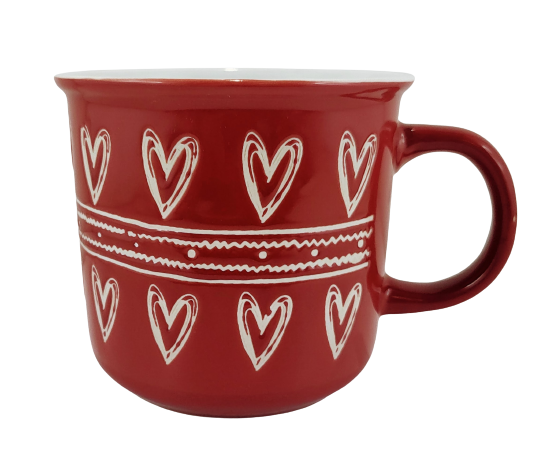 KUBEK CERAMICZNY Z SERDUSZKAMI CZERWONY 450ML
