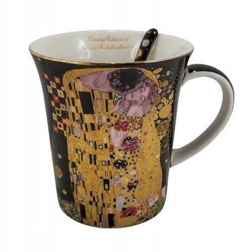KUBEK G.KLIMT CZARNY POCAŁUNEK 300ML Z ŁYŻECZKĄ