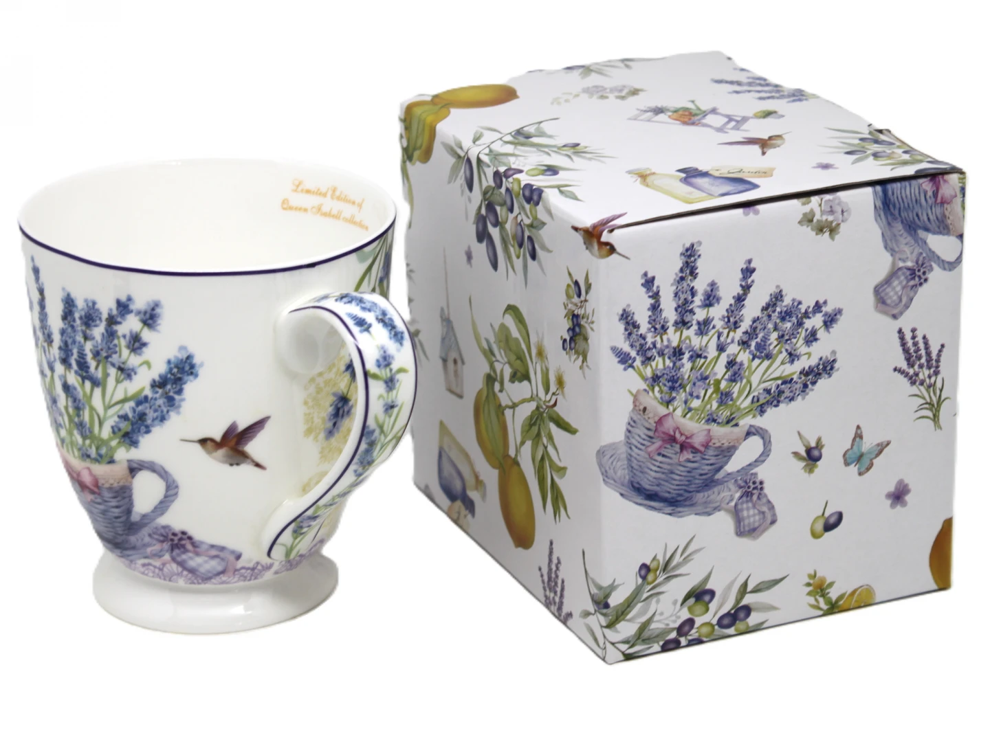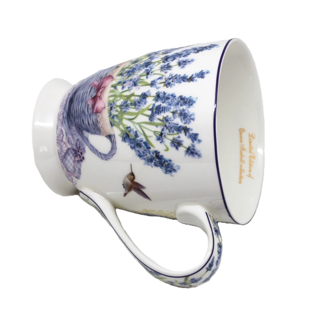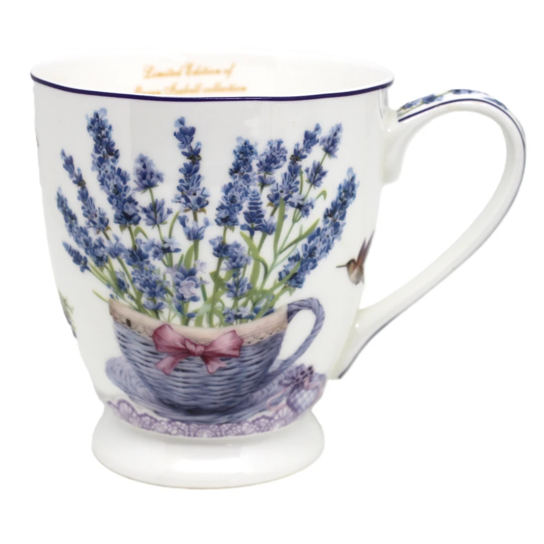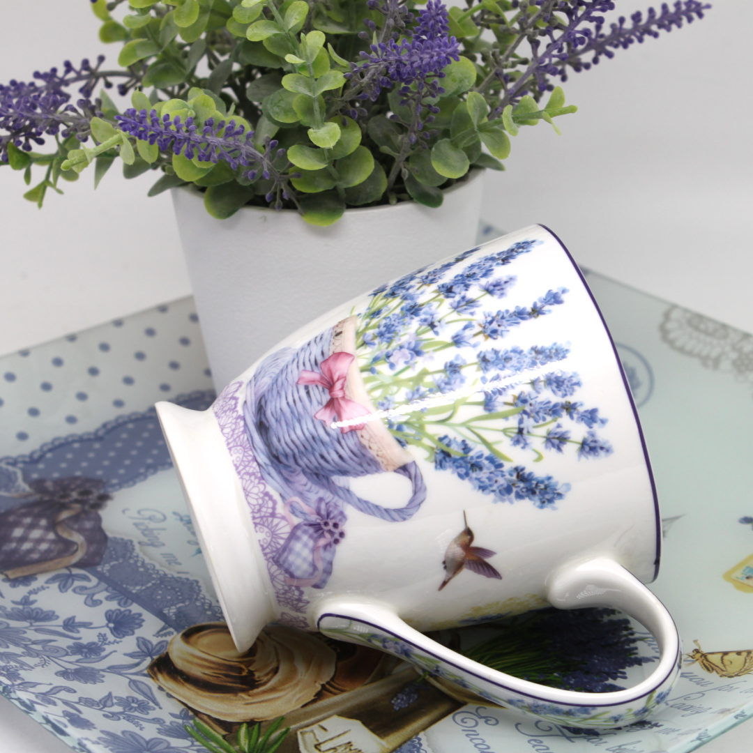 Elegancki porcelanowy kubek z kolekcji Queen Isabell to doskonały wybór dla miłośników pięknych i stylowych dodatków. Jego powierzchnia zdobiona jest delikatnym motywem lawendy oraz motyli, co nadaje mu subtelny i romantyczny charakter. Fioletowe akcenty w połączeniu z białym tłem tworzą harmonijną i elegancką kompozycję.