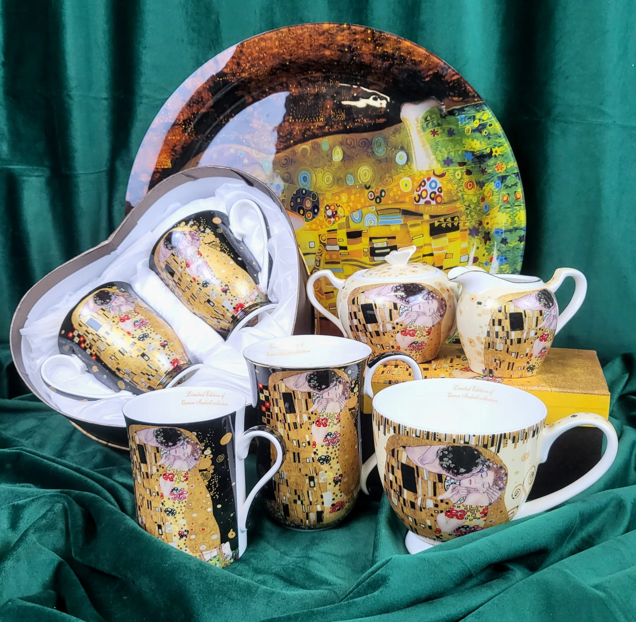 Kubki należą do kolekcji G. Klimt, w której znajdują się m.in. filiżanki, kubki, szklanki, tace co pozwala stworzyć stylowy zestaw funkcjonalnych i dekoracyjnych dodatków.
