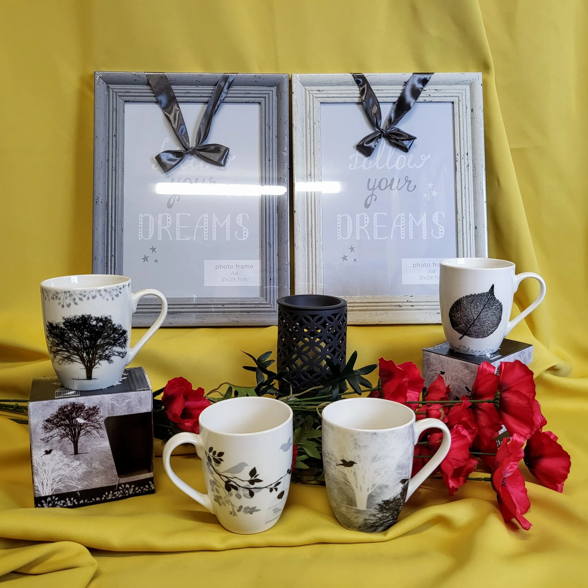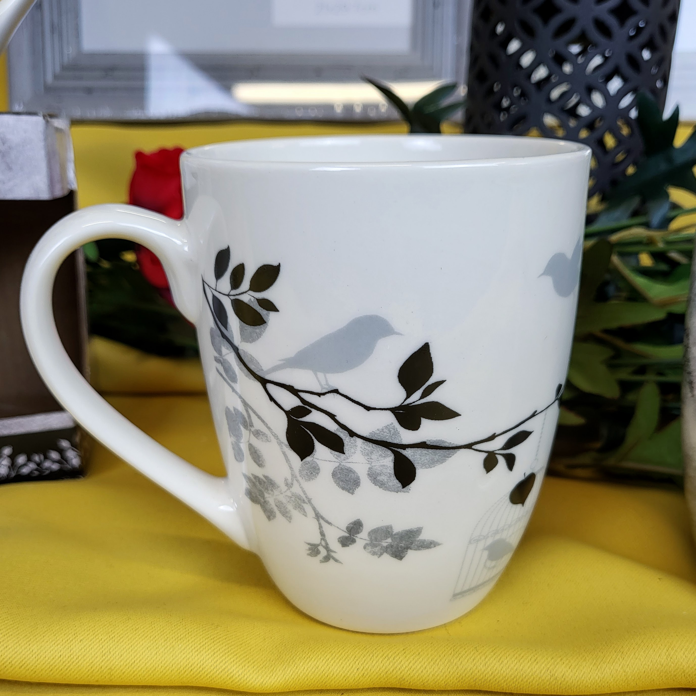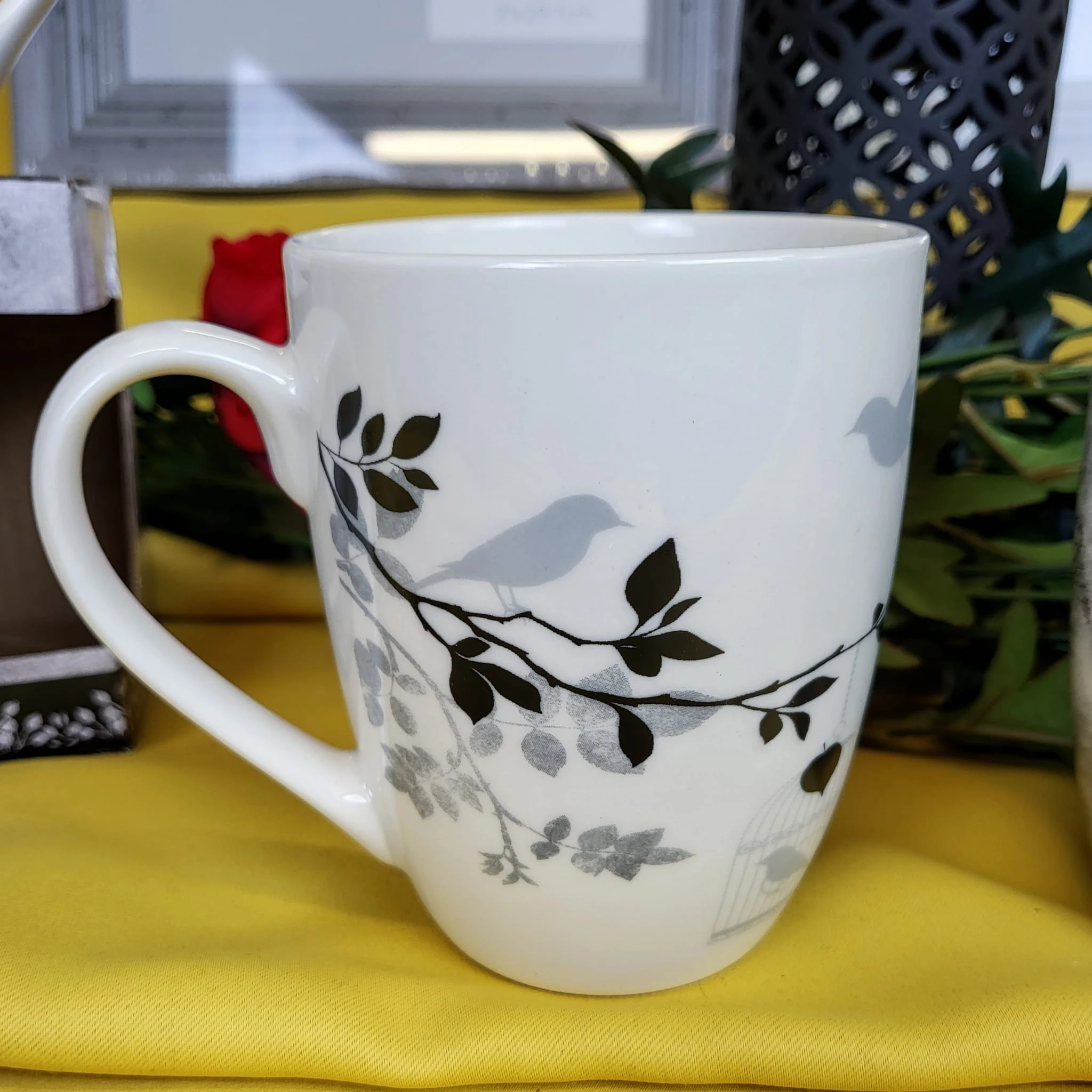 Kubek z eleganckim motywem drzew, liści. Idealny pomysł na drobny upominek dla każdego wielbiciela przyrody lub herbaty.