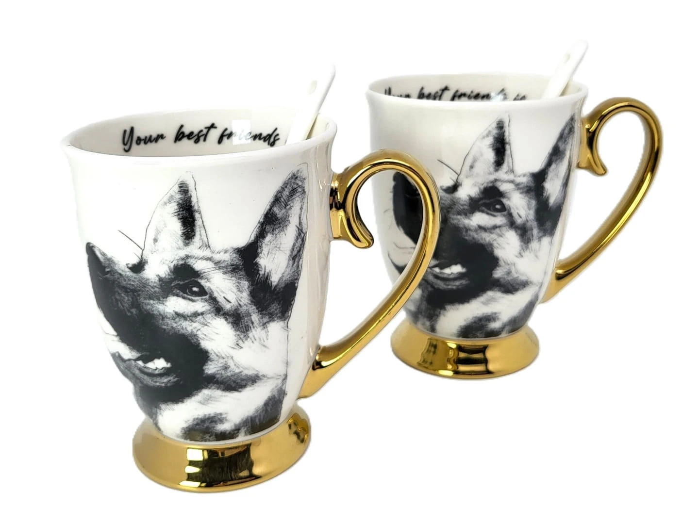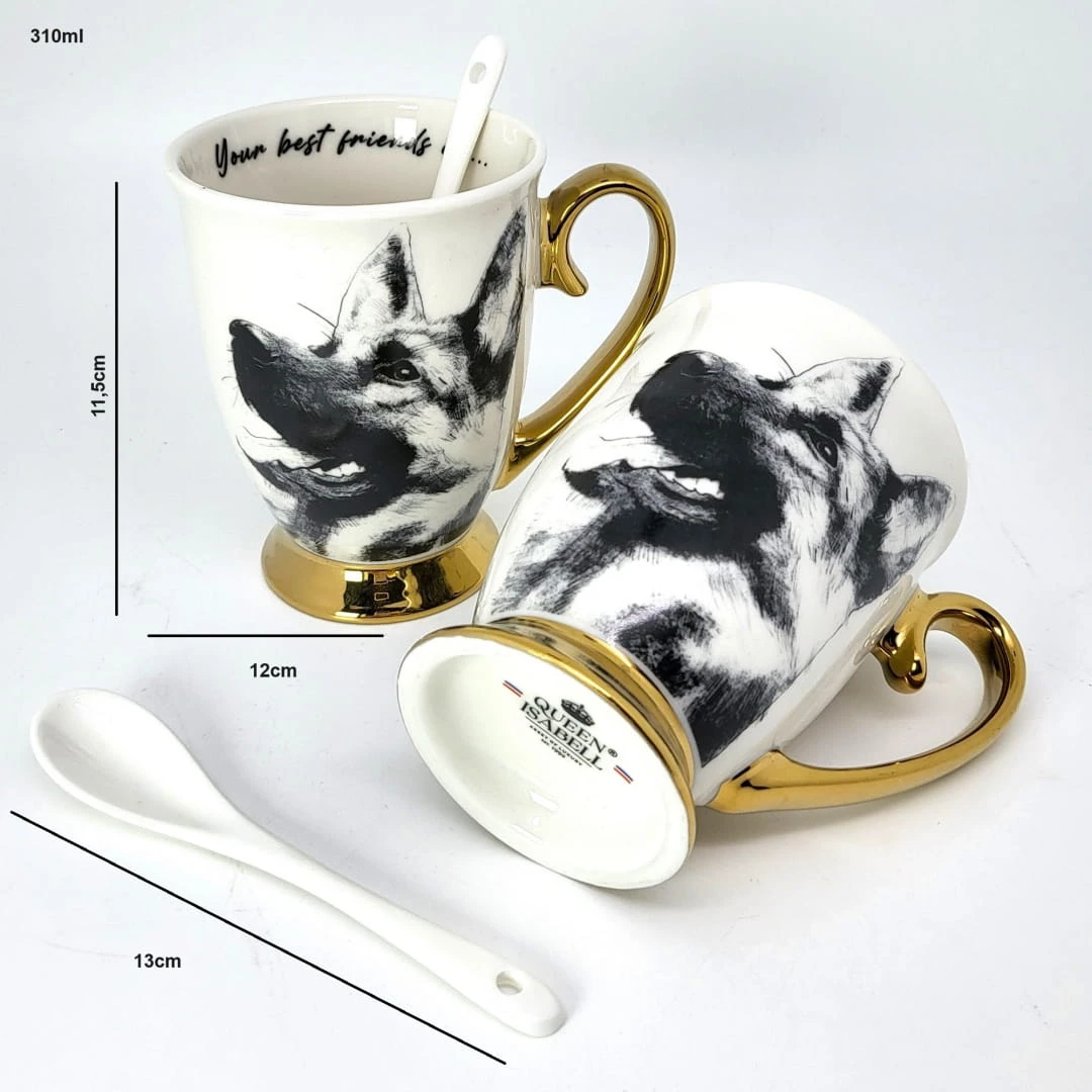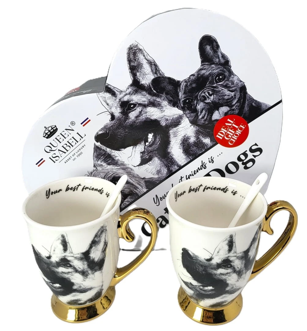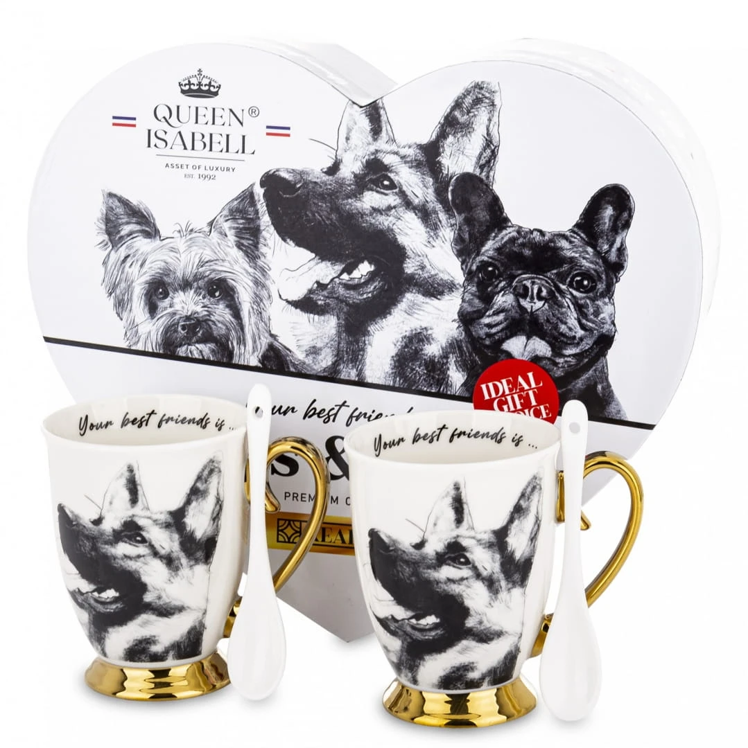 Zestaw dwóch kubków z rysunkiem owczarków niemieckich to idealny prezent dla pary lub osób blisko związanych. Każdy z kubków jest wykonany z najwyższej jakości porcelany. Dodatkowo, kubki są pakowane w eleganckie opakowanie, co czyni je gotowymi do wręc zenia jako prezent.