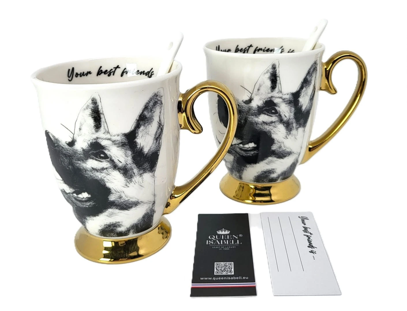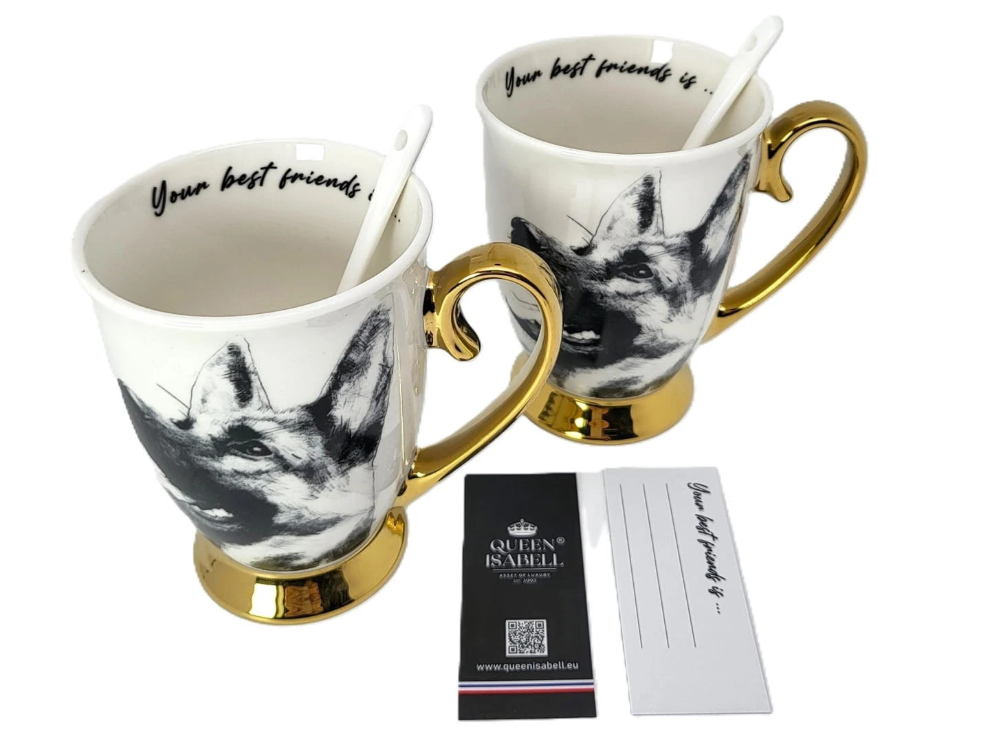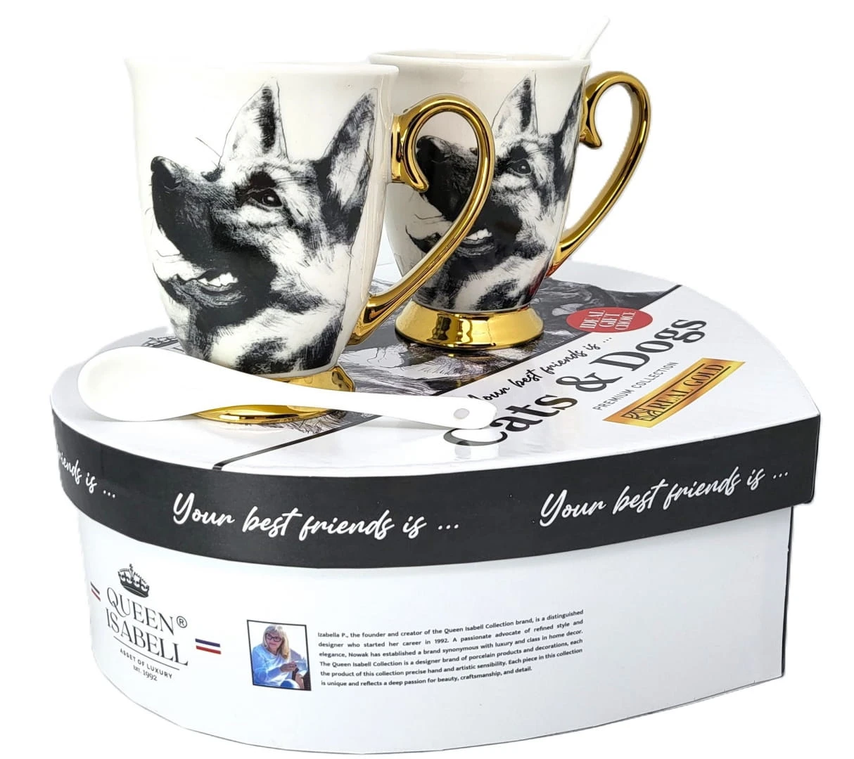 Zestaw dwóch kubków z rysunkiem owczarków niemieckich to idealny prezent dla pary lub osób blisko związanych. Każdy z kubków jest wykonany z najwyższej jakości porcelany. Dodatkowo, kubki są pakowane w eleganckie opakowanie, co czyni je gotowymi do wręc zenia jako prezent.