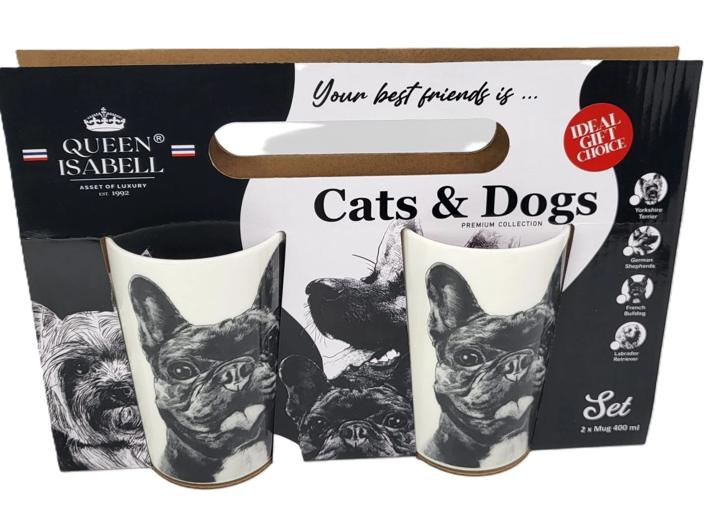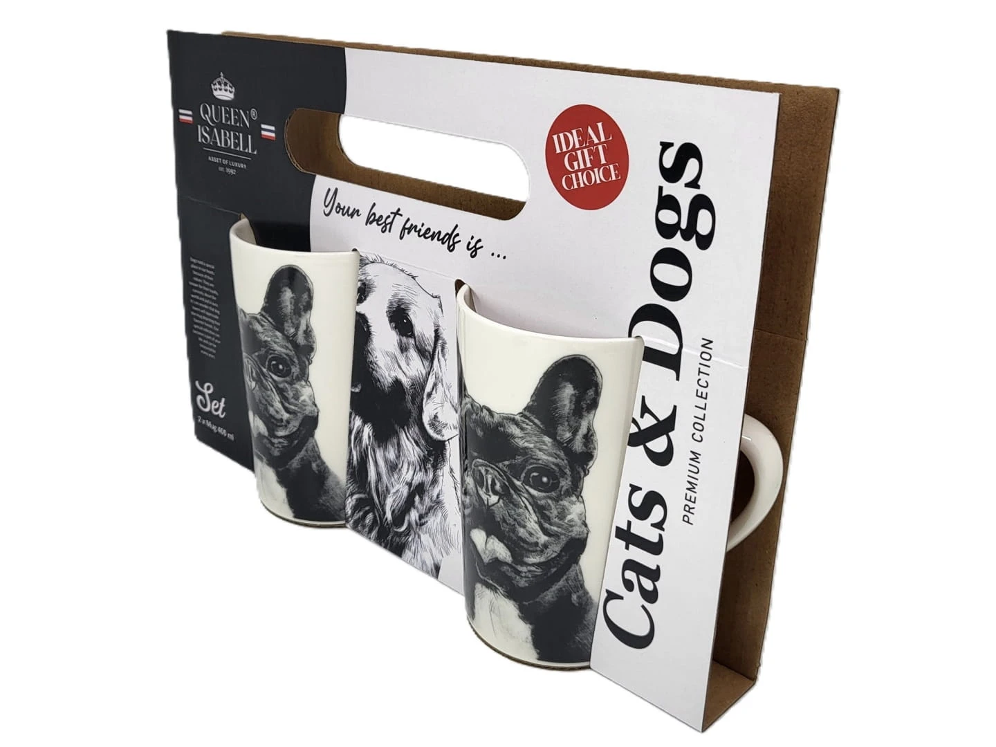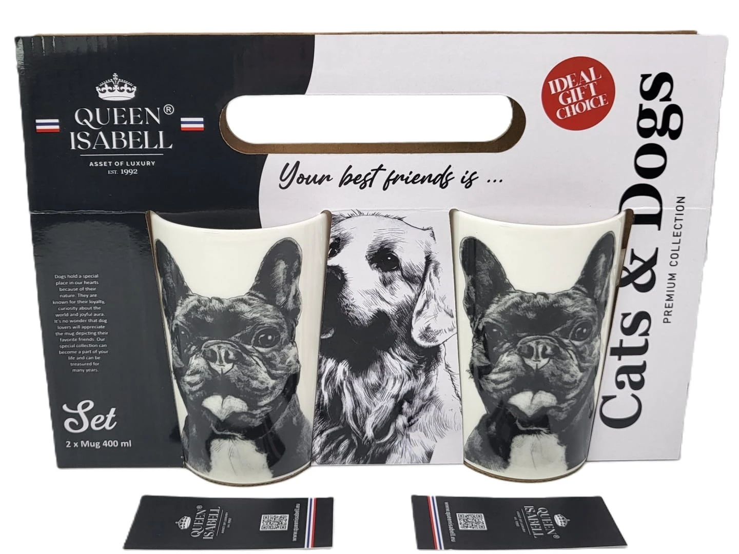Opakowanie zestawu dwóch kubków z rysunkiem buldoga francuskiego jest równie urocze co sama zawartość. Kubki wykonane z wysokiej jakości ceramiki są ozdobione realistycznymi rysunkami buldoga. Prezentacja w eleganckim opakowaniu sprawia, że są idealnym pr ezentem dla miłośników tych psów.