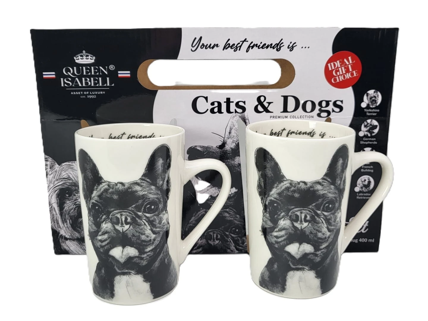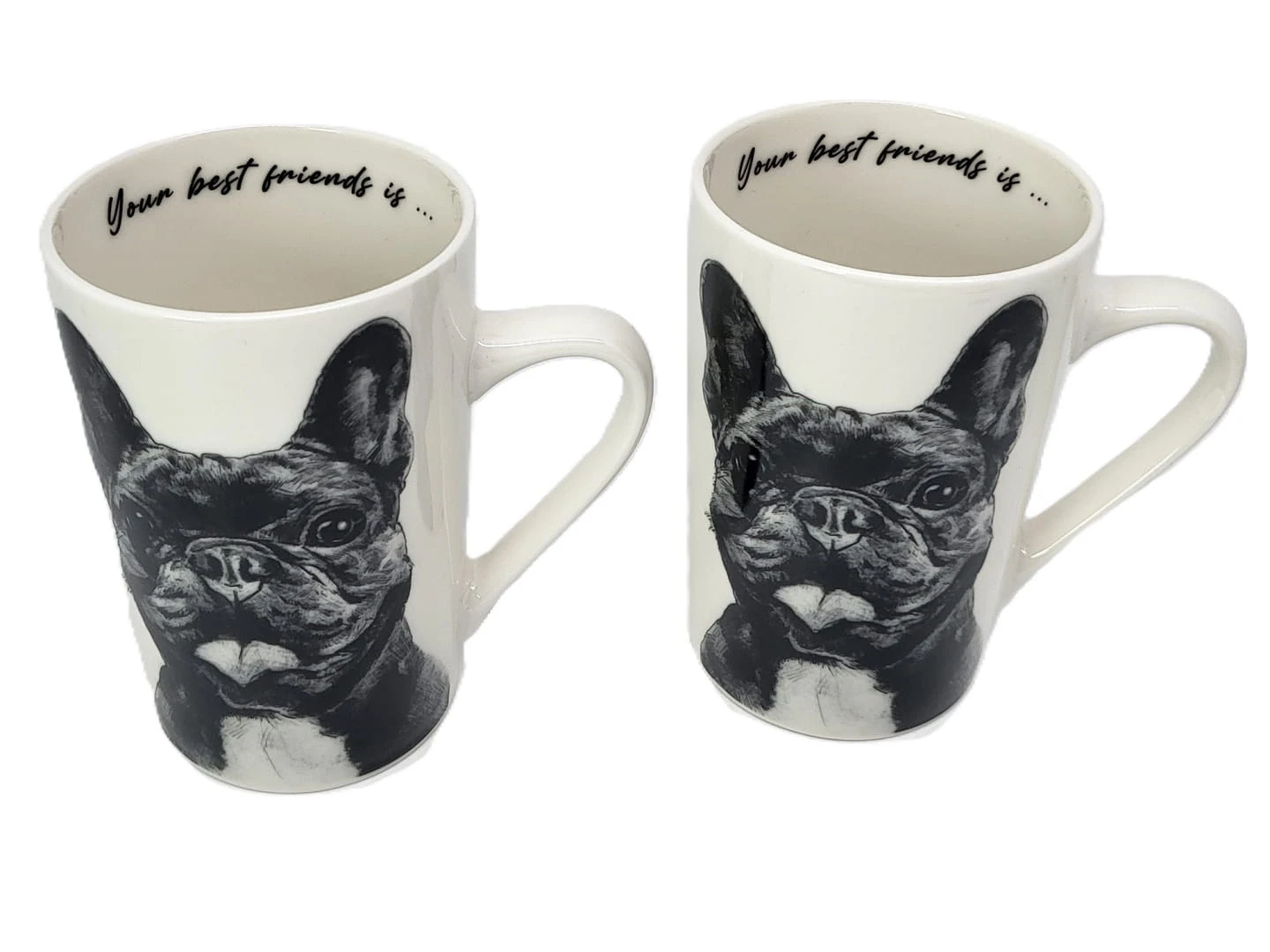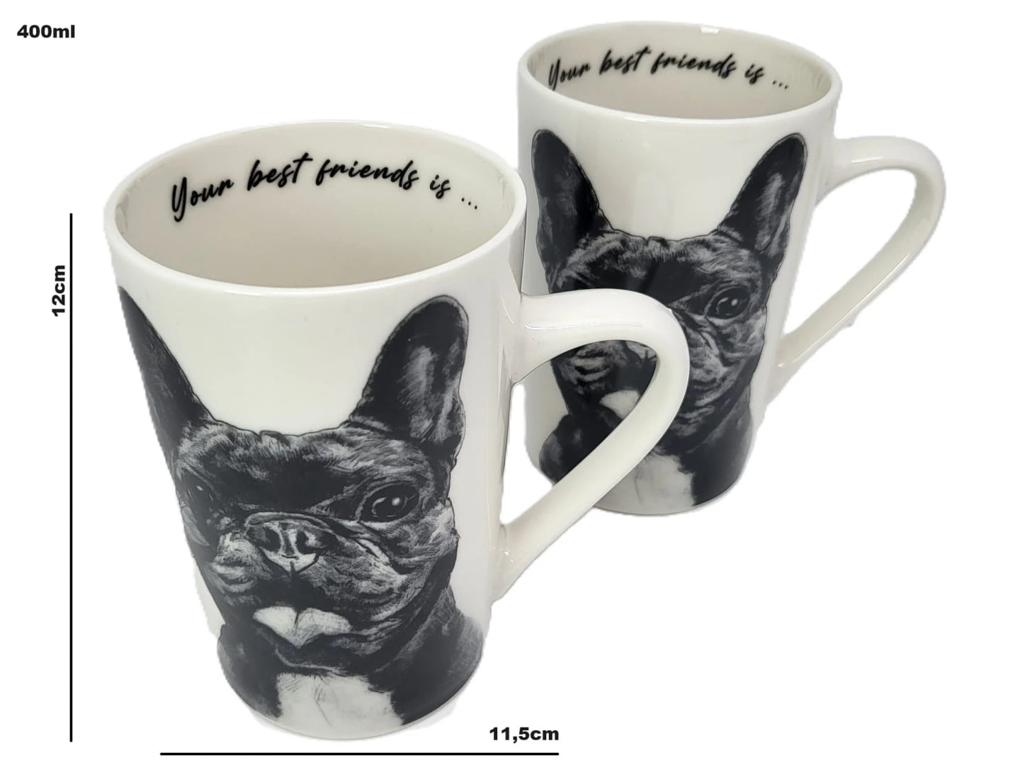 KUBEK PORCELANOWY BULDOG FRANCUSKI- KPL. 2 SZT