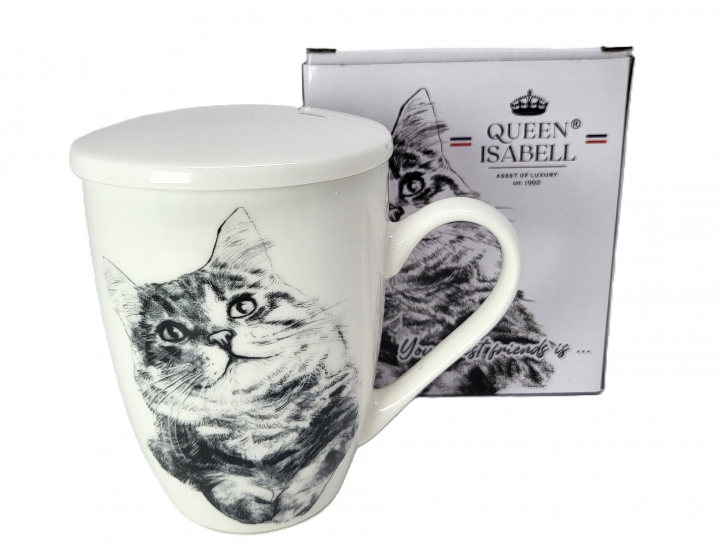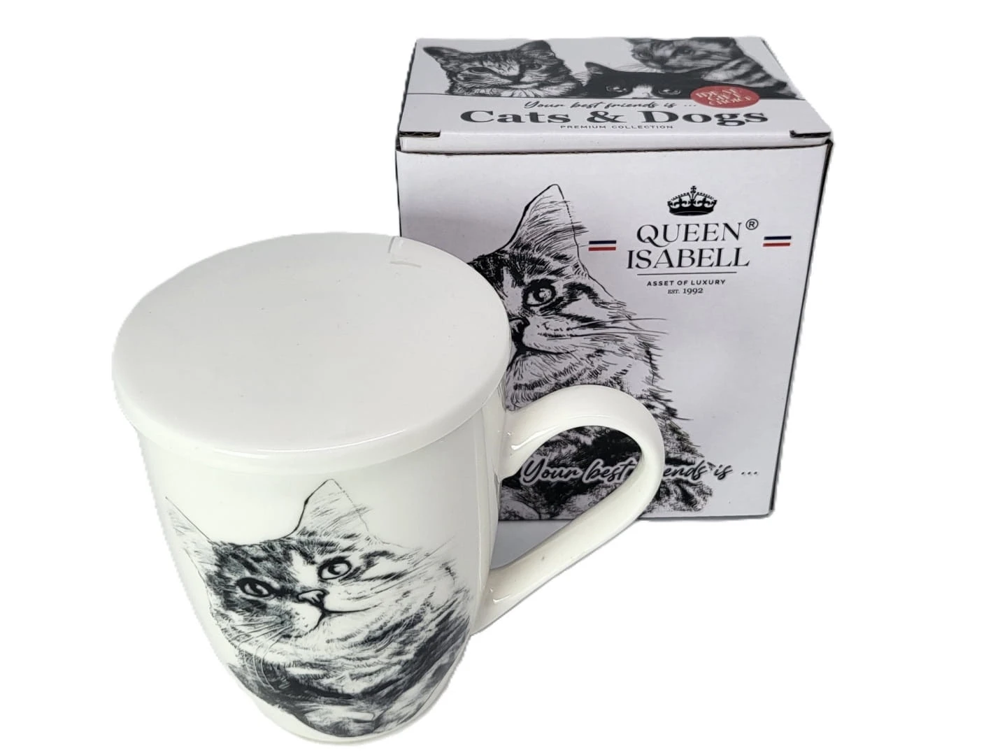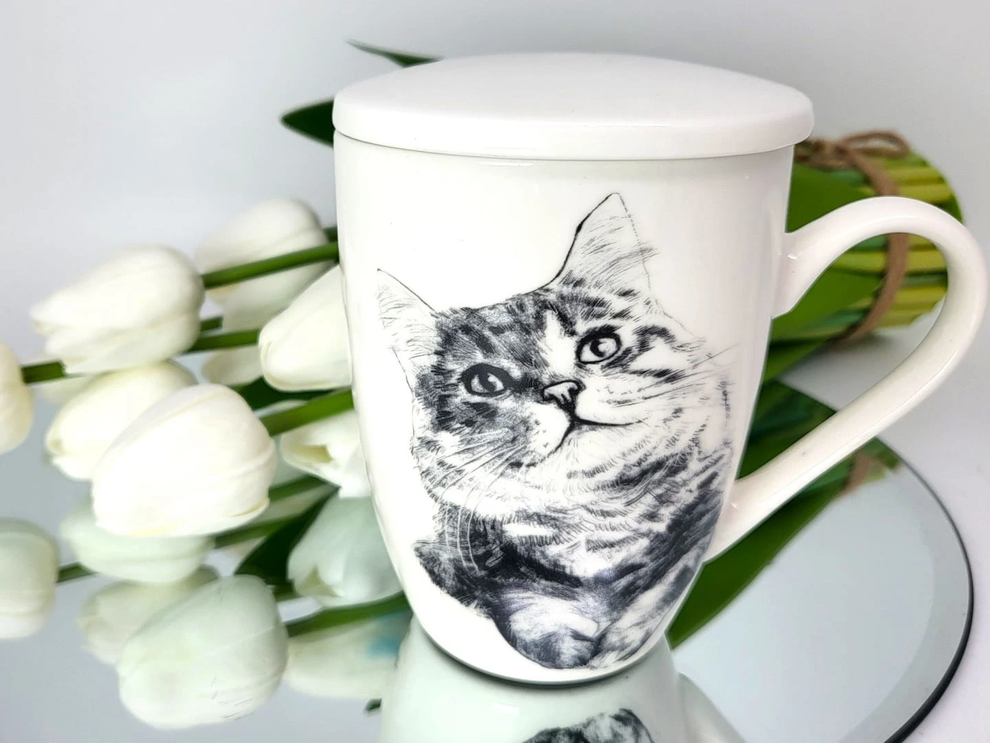 KUBEK PORCELANOWY KOT SYBERYJSKI - PRZYKRYWKA ZAPARZACZ