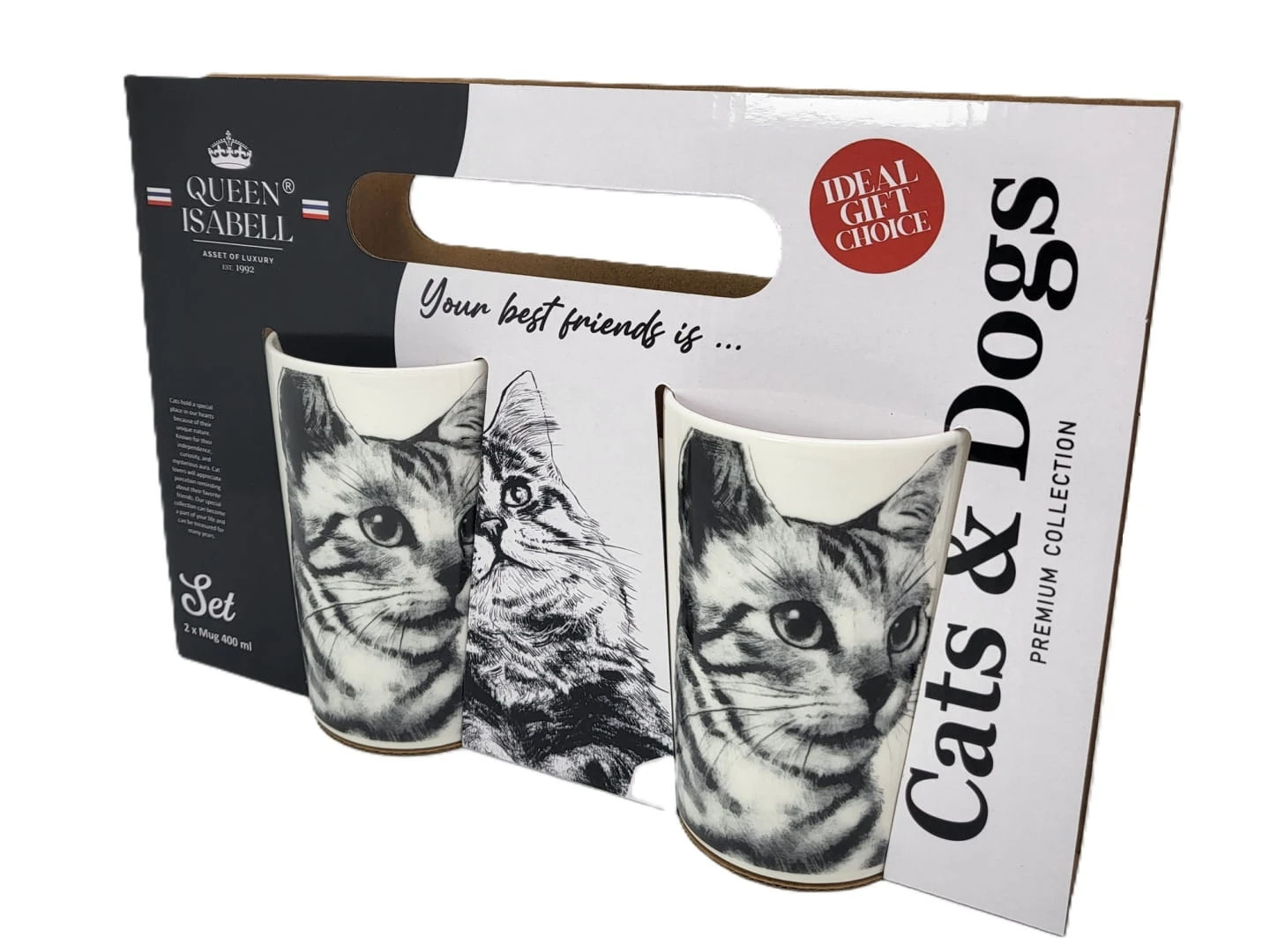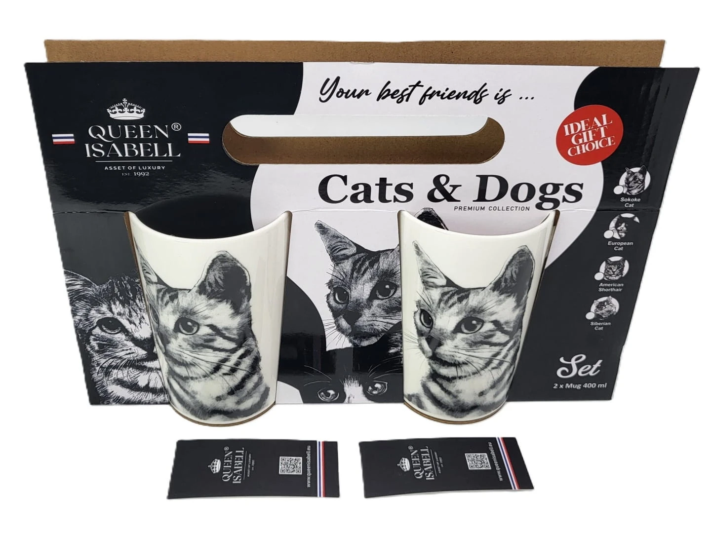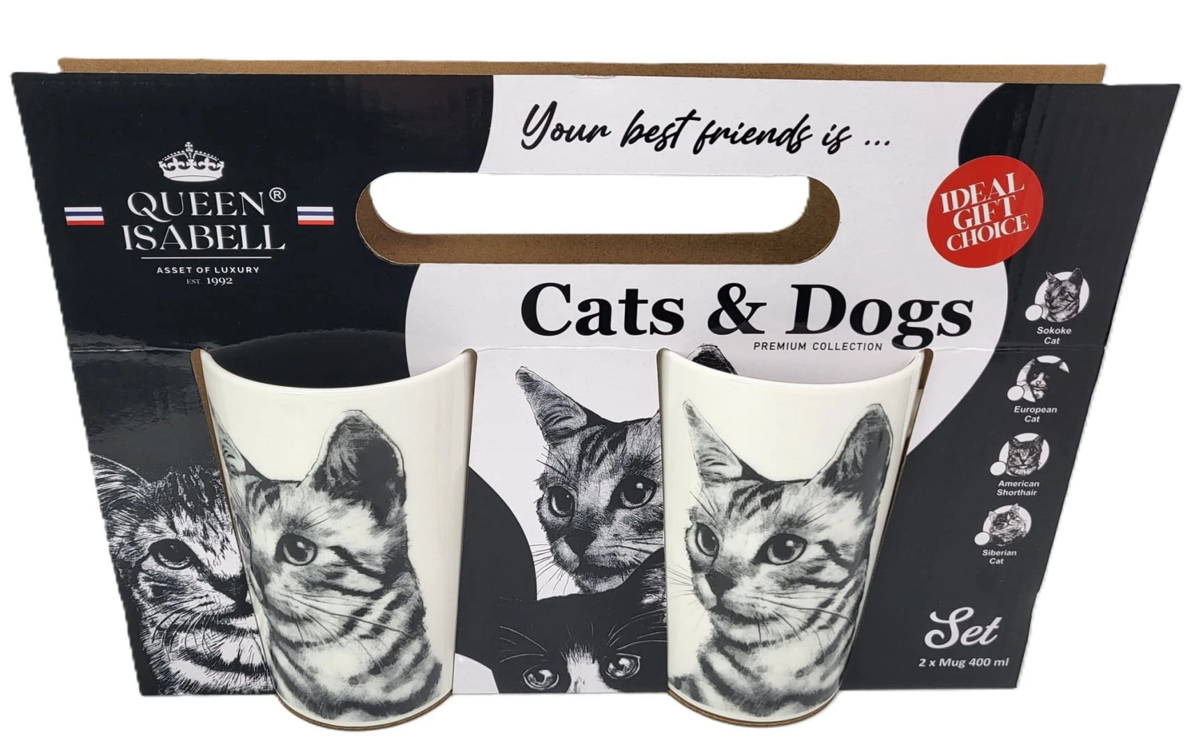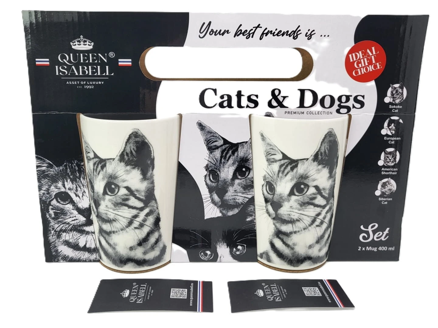 Zestaw dwóch kubków z wizerunkiem kota rasy Sokoke w prezentowym opakowaniu to doskonały pomysł na prezent dla miłośników kotów. Opakowanie prezentowe, w którym kubki są zapakowane, nadaje całości eleganckiego wyglądu i sprawia, że prezent nabiera wyjąt kowego charakteru. Zestaw dwóch kubków z wizerunkiem kota Sokoke z pewnością wywoła uśmiech na twarzy każdego miłośnika tych pięknych zwierząt.